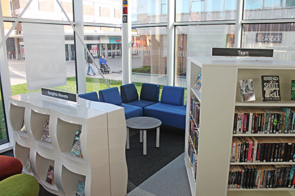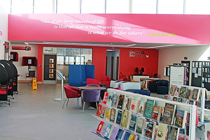Det supermoderna biblioteket för 2,7 miljoner pund är beläget där konstgalleri och kommunkontoret tidigare fanns