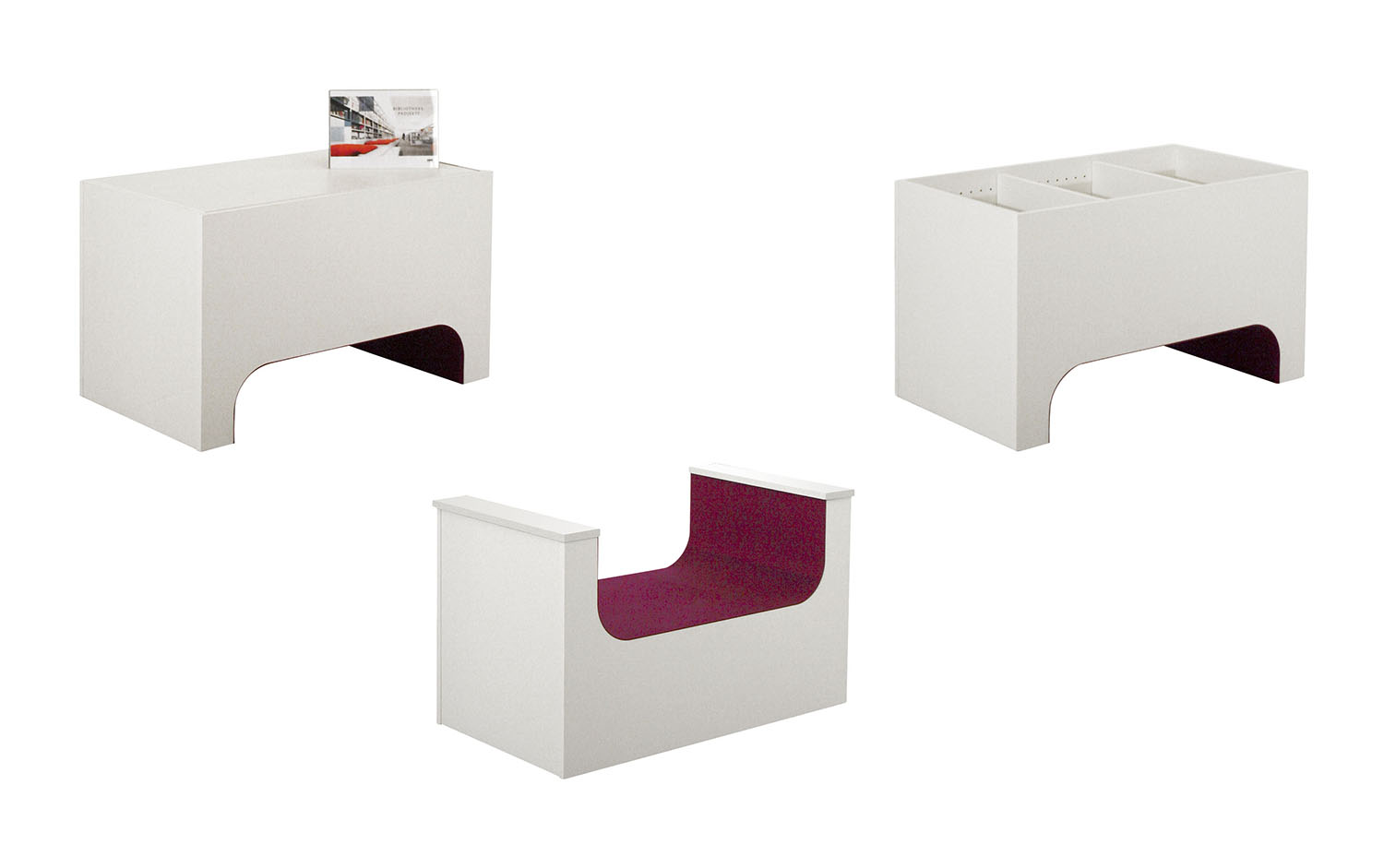Innovativt bord, sittplats och låda för exponering och förvaring