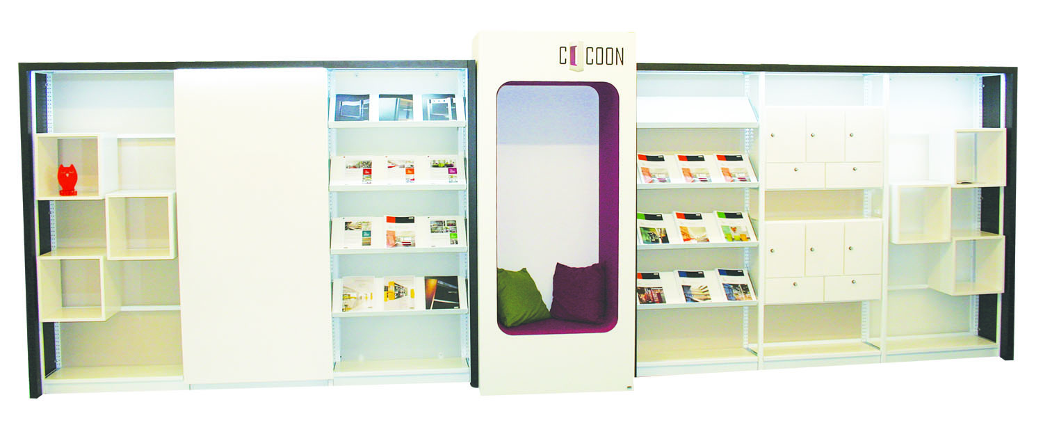 Utrusta din hyllinredning med en stående Cocoon. Lyssna och koppla av dill din favoritmusik med den integrerade Bluetooth-teknologin. Använd Cocoon sittplatser, bord och exponeringslåda för att skapa en vardagsrumskänsla i ditt bibliotek.