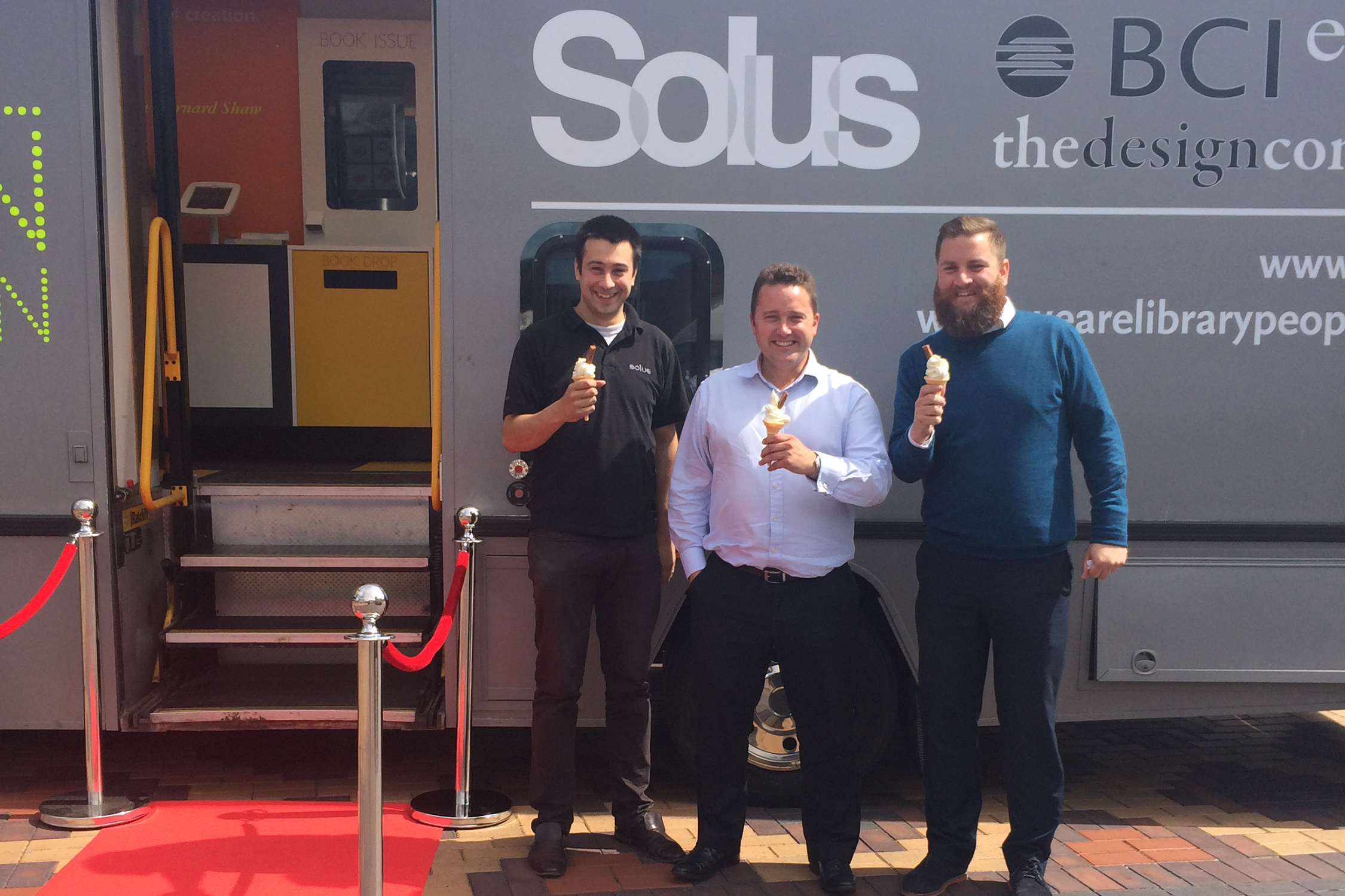 Ombord bjuder vi också på glass! Bokbussen är utrustad med en glassmaskin för att fresta kunder att stiga in.