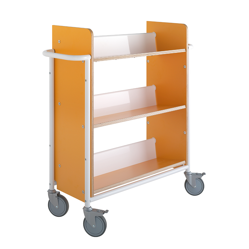 Denna bokvagn kan användas som ett mini-hyllsystem som kan flyttas runt i biblioteket efter var den behövs.