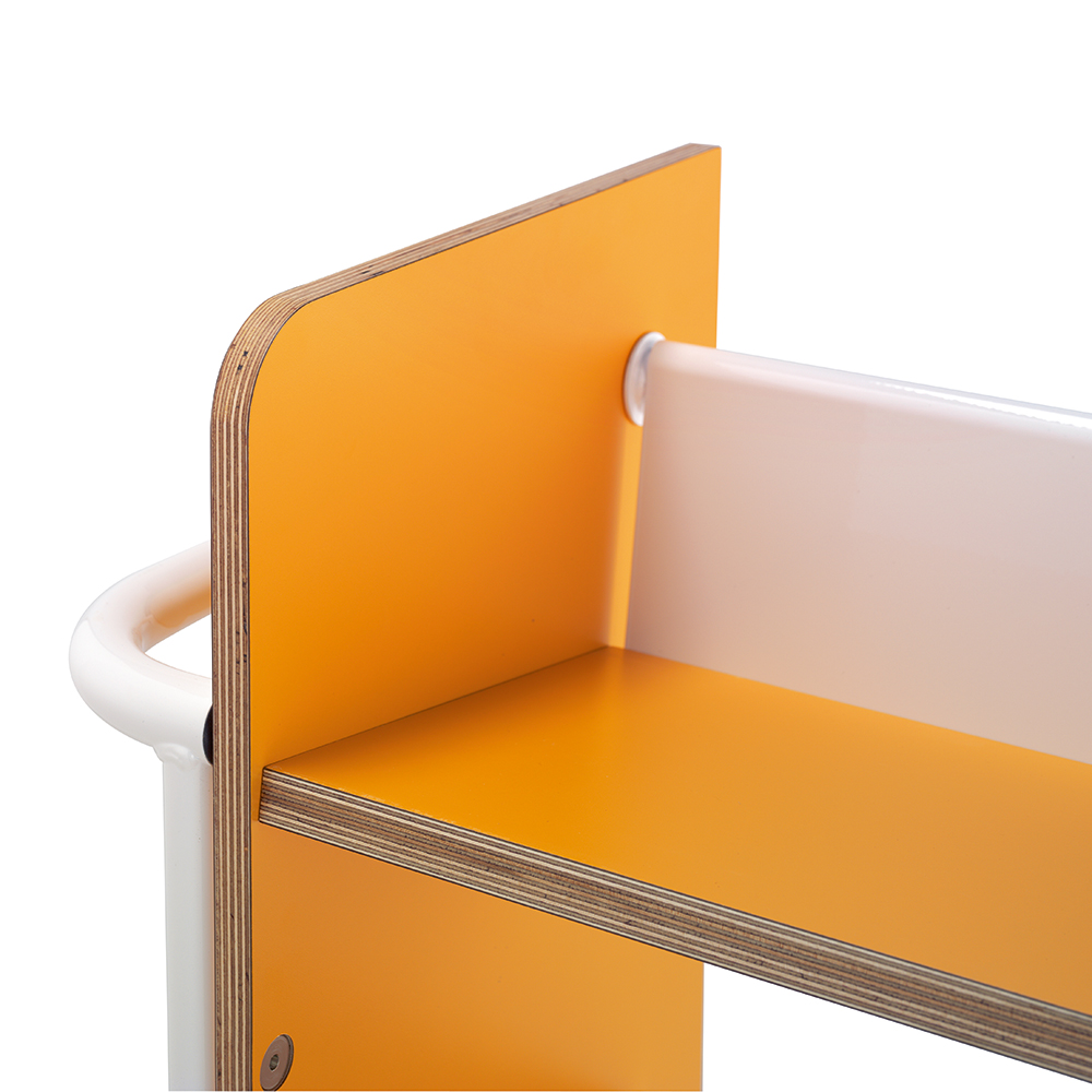 Vi talar laminerad björkplywood; här med synliga kanter. Allt för att få en såväl tålig yta som hållbar konstruktion. Perfekt för de mest krävande biblioteksmiljöerna!