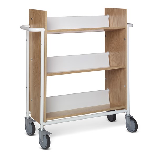 Denna bokvagn kan användas som ett mini-hyllsystem som kan flyttas runt i biblioteket efter var den behövs.