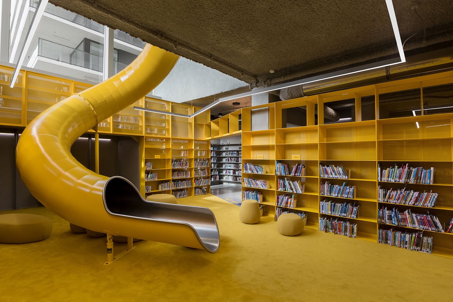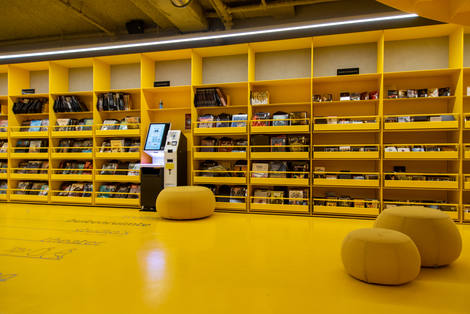 Detta avspeglar sig på många sätt: biblioteket är öppet 12 timmar om dagen, ungdomsbiblioteket är tillgängligt via en rutschkana från ingångsområdet, hyllorna hålls medvetet låga och uppblandade med trevliga sittområden och långa arbetsbord.