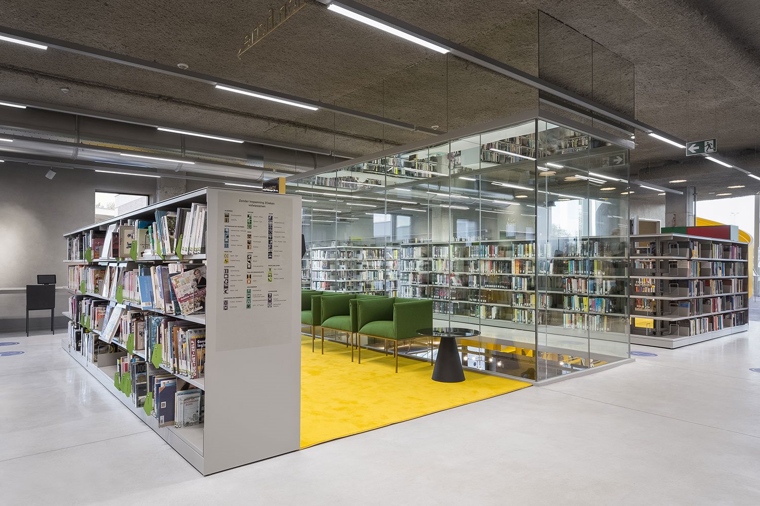 Bibliotekarien Jan Claeys tillfogar: ”Biblioteket är dynamiskt, lekfullt och stimulerar den självständiga och rådiga besökaren tack vara det optimala användandet av informationteknologi. Ett samlat koncept som fokuserar på upplevelse och öppenhet.”