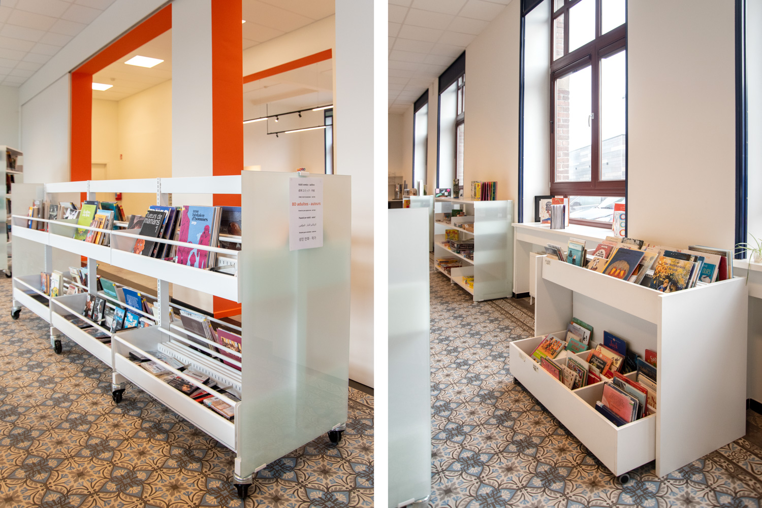 Nathalie Quiévreux, chef för kulturhuset i Celles, säger: "Layouten har utformats för användarnas specifika behov som exempelvis bekväma fåtöljer för föräldrarna på barnavdelningen samt en logisk översikt som visar var man hittar bibliotekets avdelningar och samlingar." Särskild uppmärksamhet har ägnats åt tillgänglighet och funktionalitet, och biblioteket har anpassats till olika målgrupper på ett enkelt sätt. Besökarna är glada: "Det är mycket bättre än tidigare."
