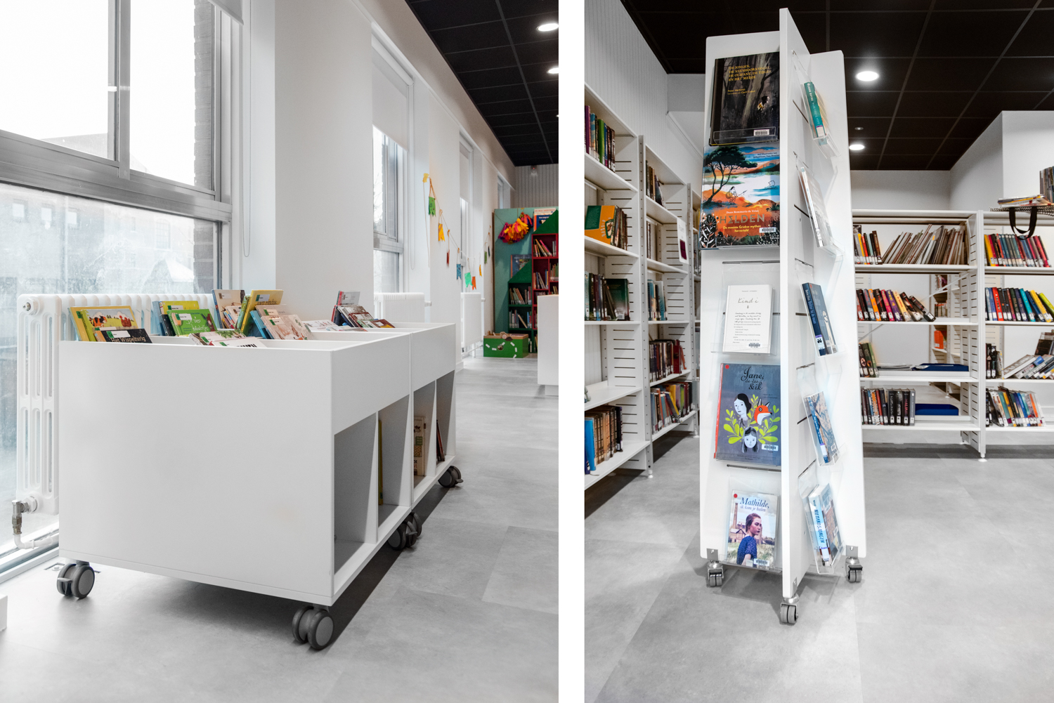 Bibliotekarien Sandra Maes säger: ”Vi valde att involvera inredningsarkitekter från Schulz Benelux – en del av Lammhults Design Group. De lyssnade på vad vi gärna ville uppnå och stod för inredningen. Boksamlingarna är nu mer logiskt och kundvänligt placerade. Läsrummet har nu blivit ett trevligt ställe att vara på. De utvalda färgerna skapar lugn medan belysningen ger mer öppenhet.”