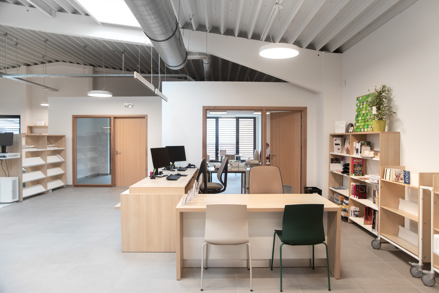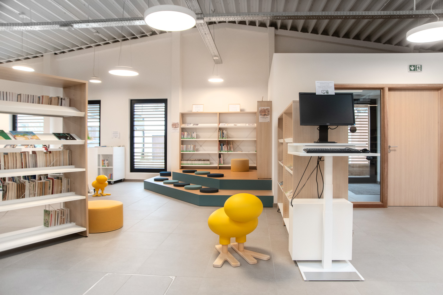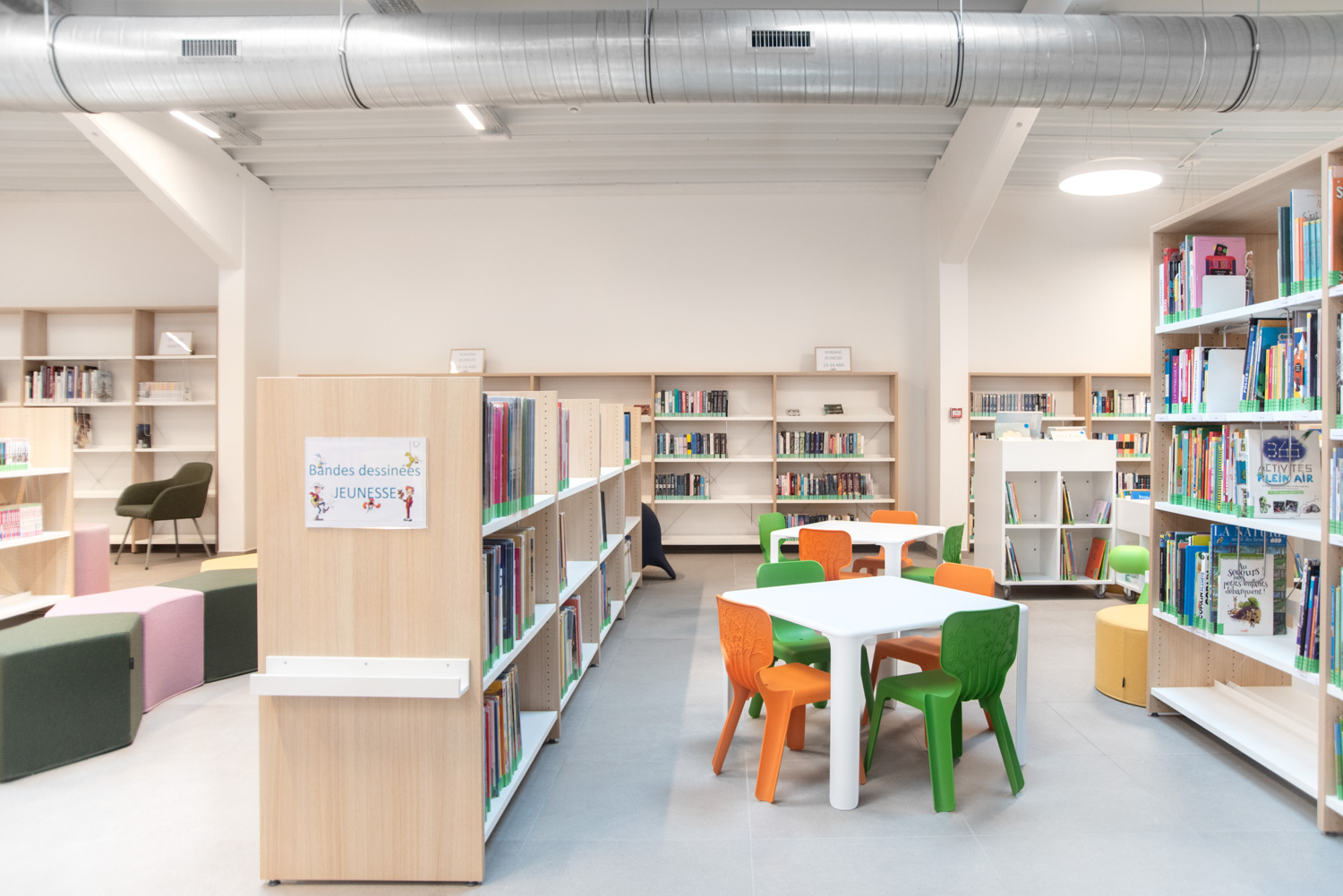 Sedan januari 2024 har biblioteket i Éghezée inlett ett nytt livfullt kapitel i sina nyinvigda lokaler. Biblioteket hade tidigare begränsat utrymme men har nu flyttat till en annan byggnad i stadens centrum. Trots att byggnaden inte var i särskilt gott skick när biblioteket flyttade in har man lyckats ta vara på det industriella uttrycket med råa ytor som kompletteras av en varm och välkomnande atmosfär i resten av inredningen.