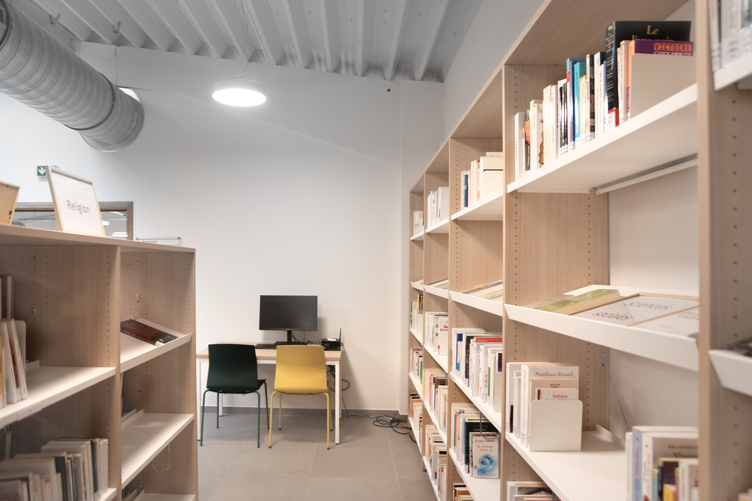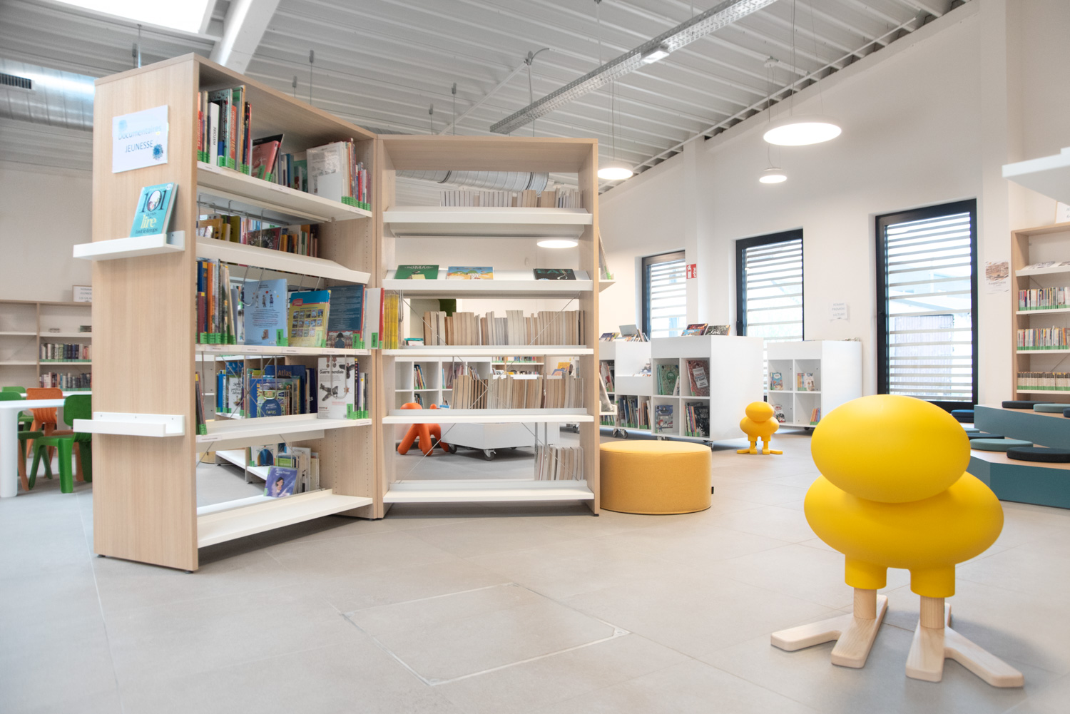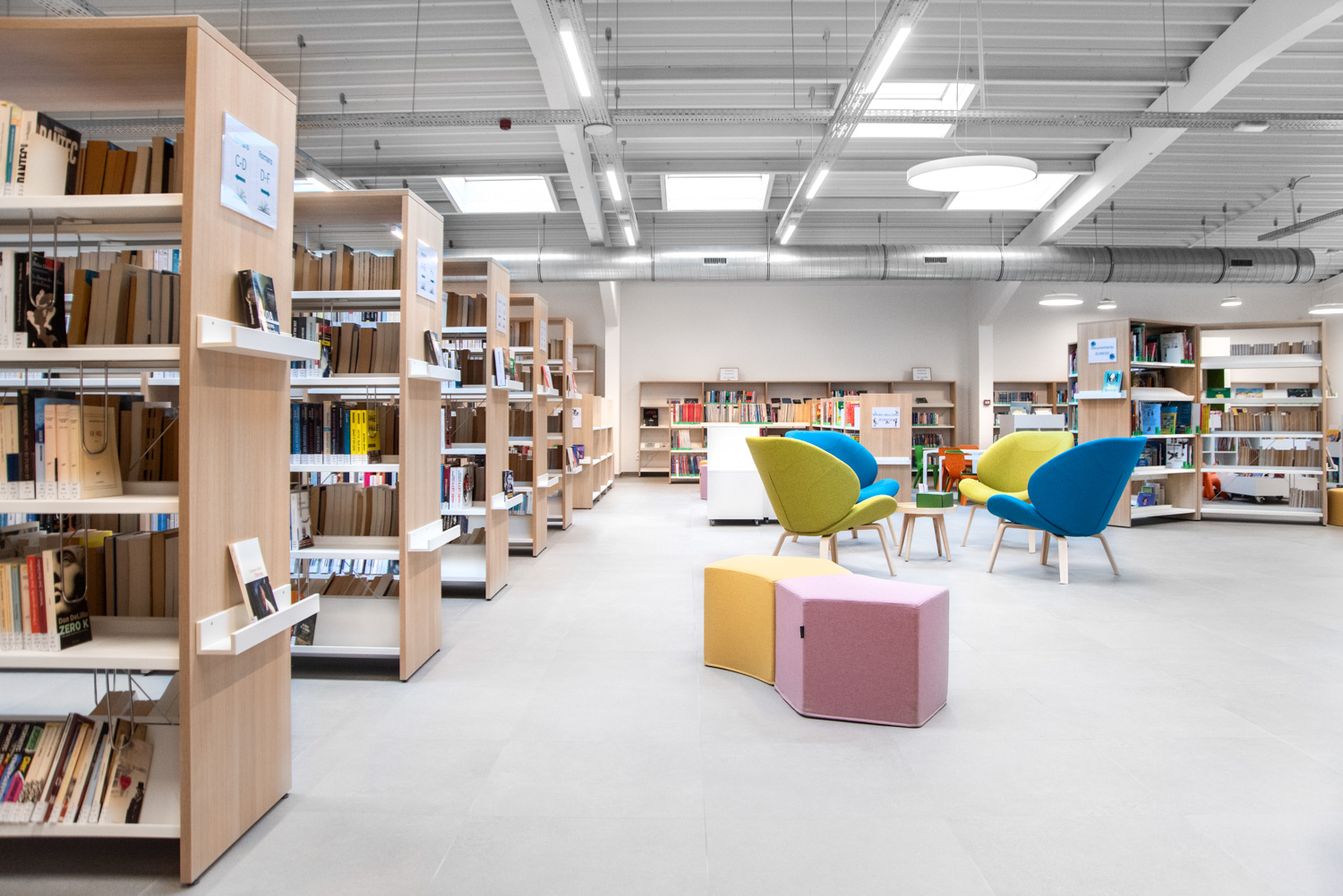 Sedan januari 2024 har biblioteket i Éghezée inlett ett nytt livfullt kapitel i sina nyinvigda lokaler. Biblioteket hade tidigare begränsat utrymme men har nu flyttat till en annan byggnad i stadens centrum. Trots att byggnaden inte var i särskilt gott skick när biblioteket flyttade in har man lyckats ta vara på det industriella uttrycket med råa ytor som kompletteras av en varm och välkomnande atmosfär i resten av inredningen.