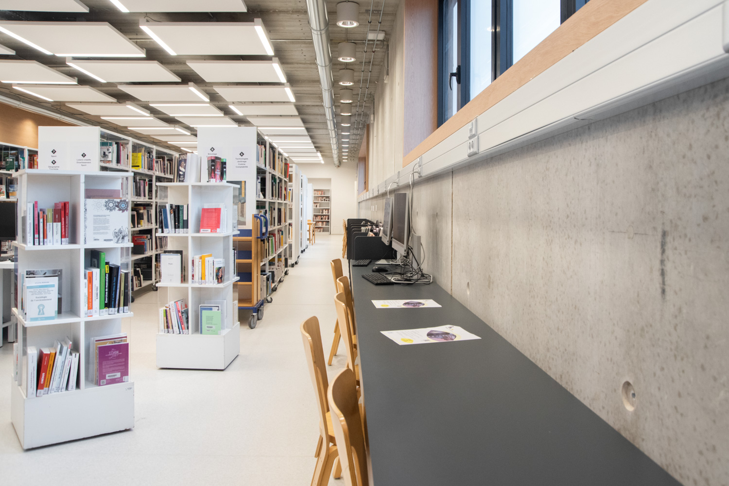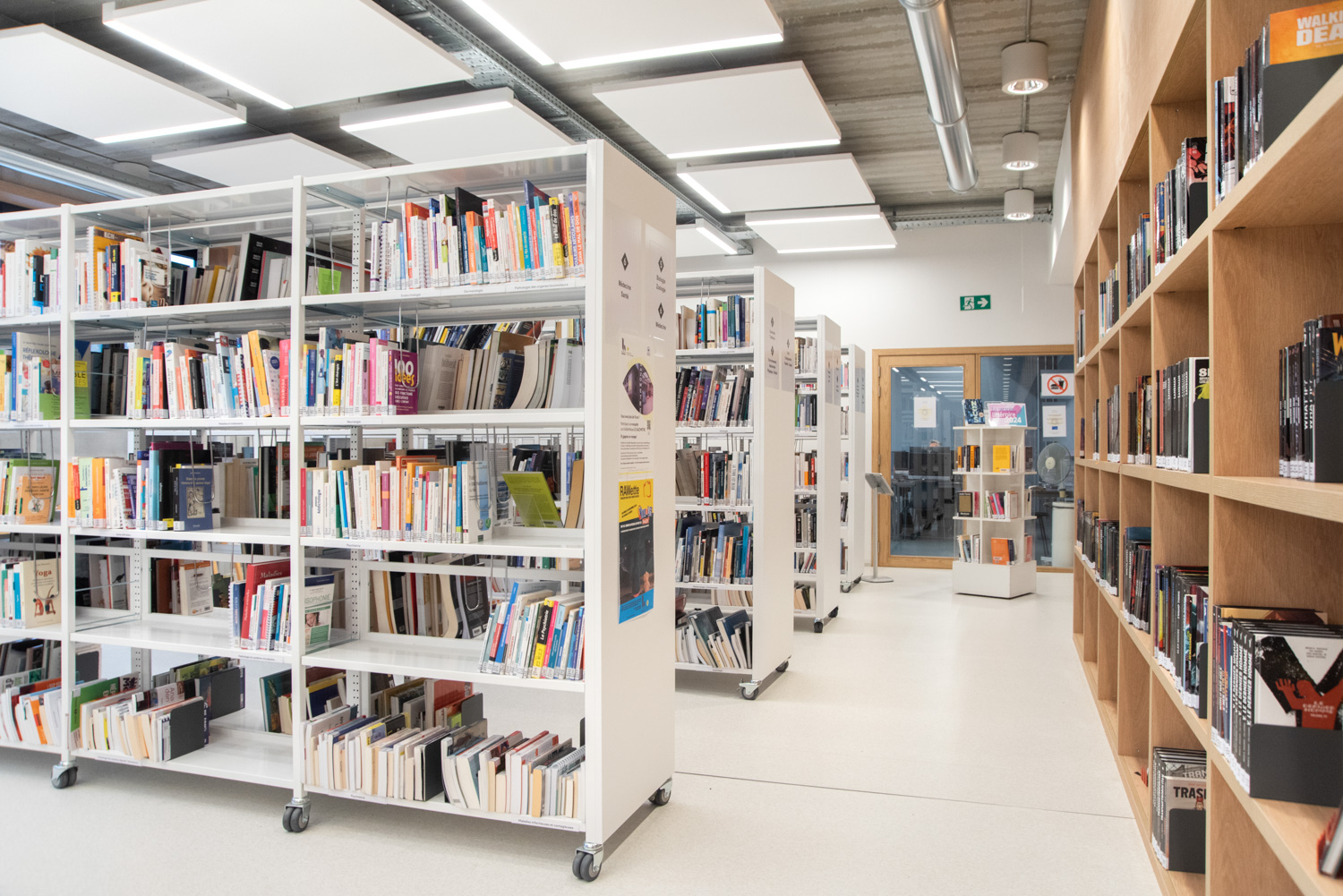 Särskild uppmärksamhet har ägnats åt valet av material och deras hållbarhet. Resultatet: en mysig och raffinerad interiör. Besökarna uppskattar den behagliga och ljusa interiören, som får dem att känna sig som hemma. Rossi citerar Gaston Bachelard för att betona vikten av ett modernt bibliotek: ”Paradiset är utan tvekan inget annat än ett enormt bibliotek.”
