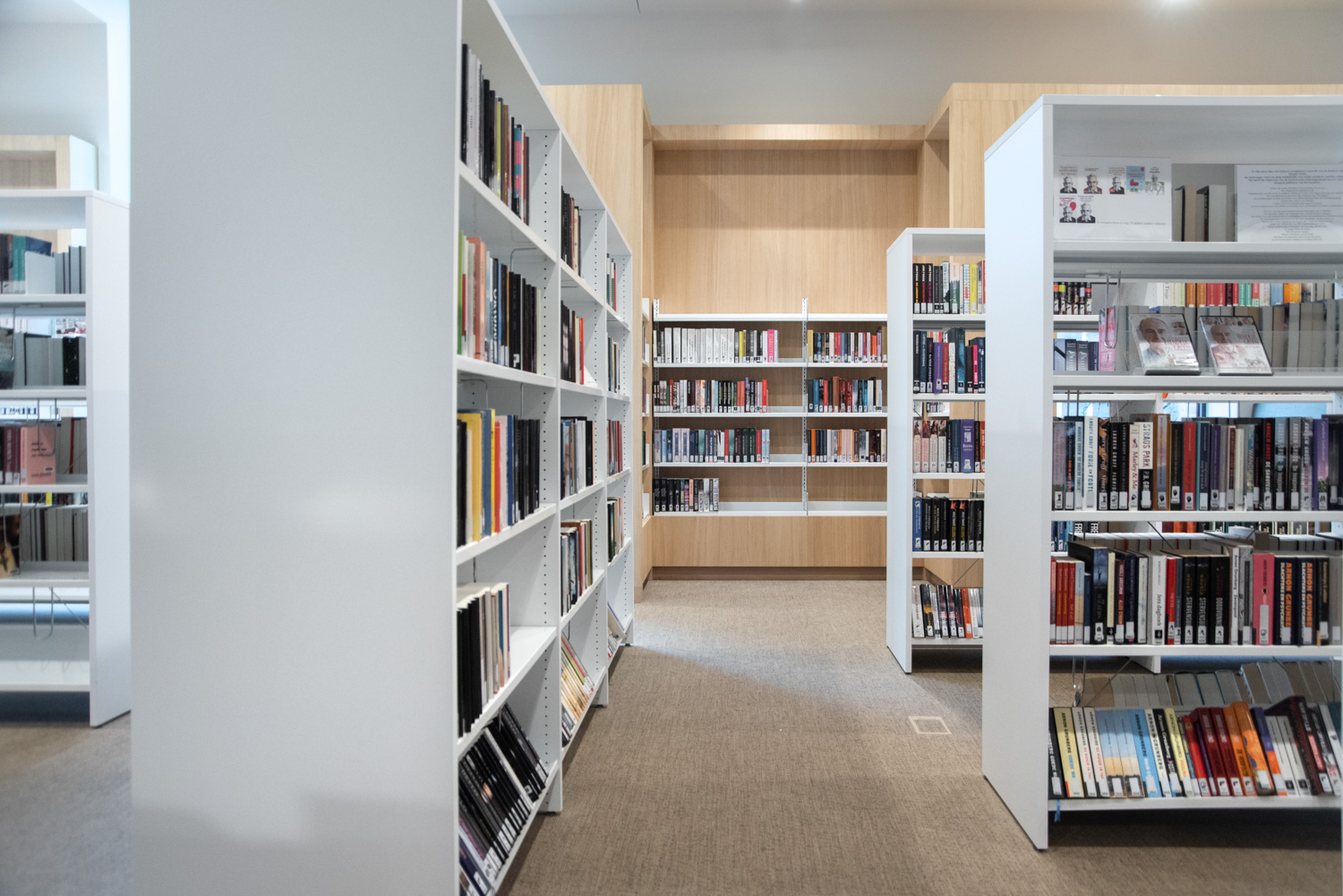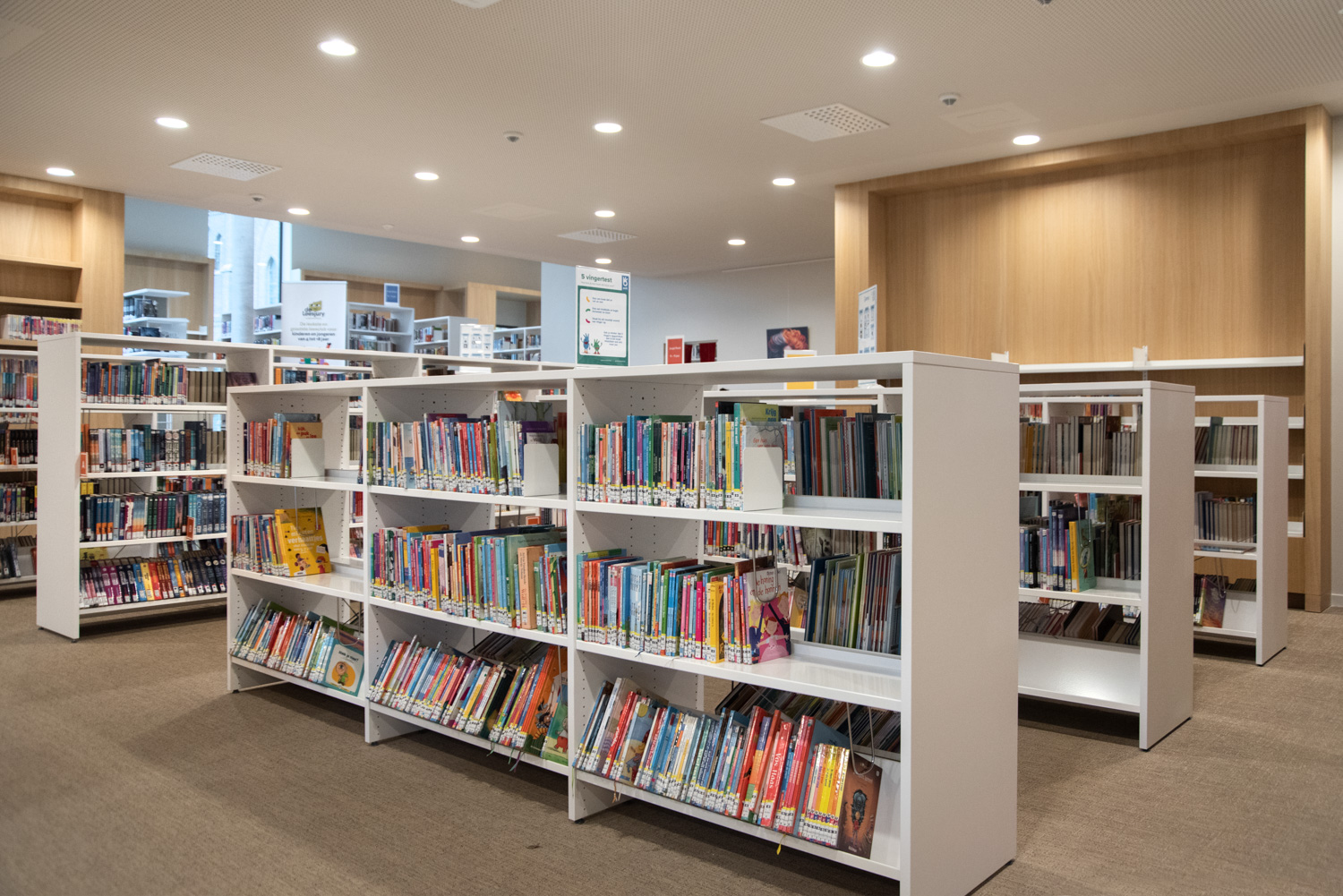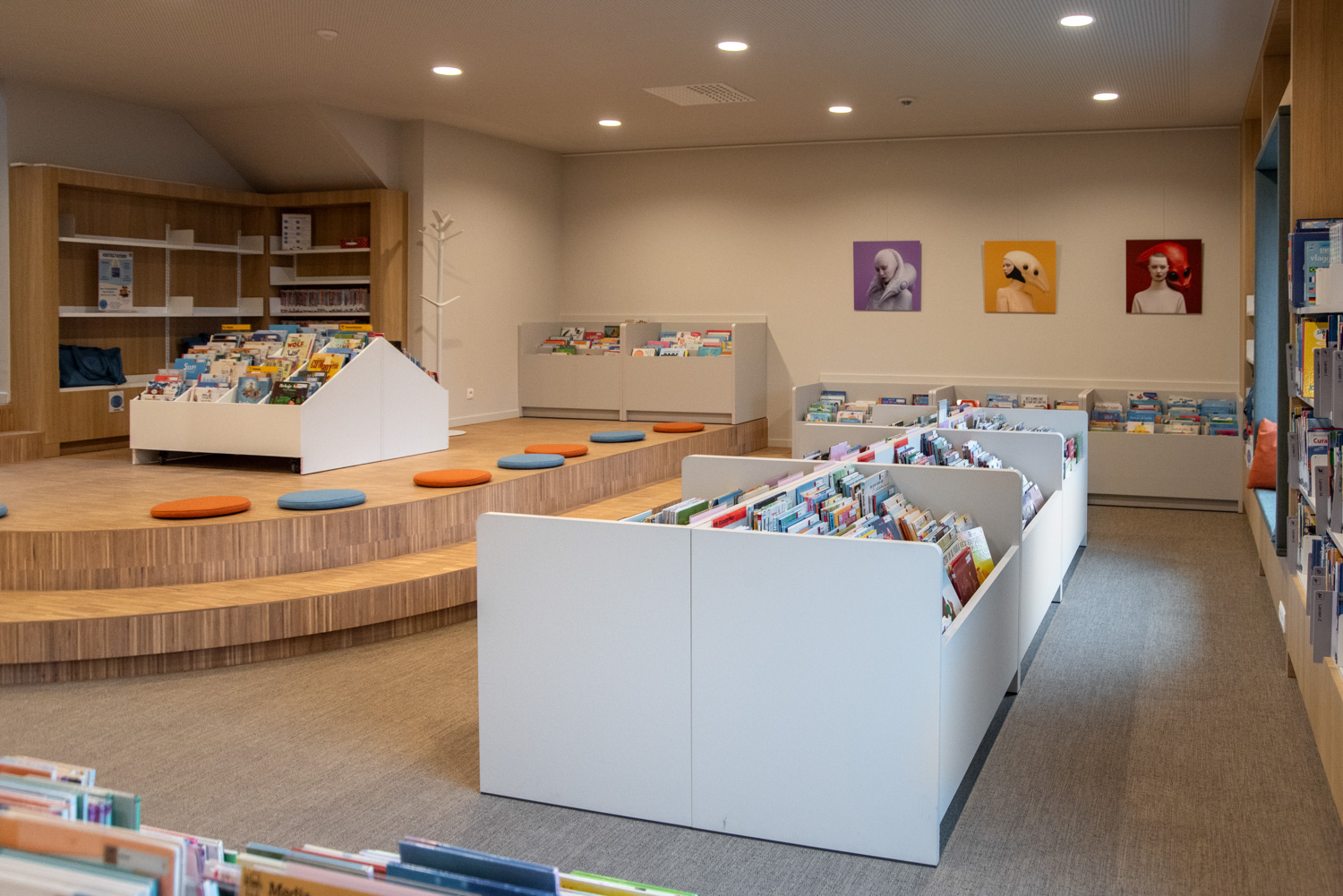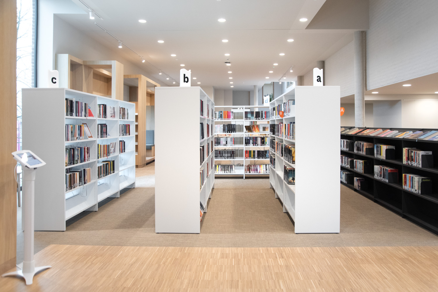 Välkommen till biblioteket i Pelt, som är en del av det mångsidiga och moderna Stroming-centret. När besökarna kommer in i biblioteket märker de genast den rymliga atmosfären med massor av dagsljus som strömmar in genom stora fönsterpartier. Användningen av träparkett och synlig betong skapar en modern och inbjudande estetik. Specialdesignade möbler och hyllsystemet Lingo i vitt bildar en neutral bakgrund som framhäver böckerna.