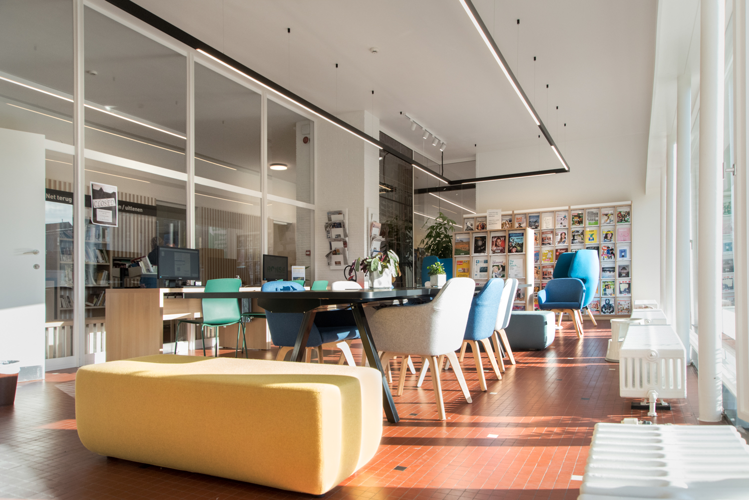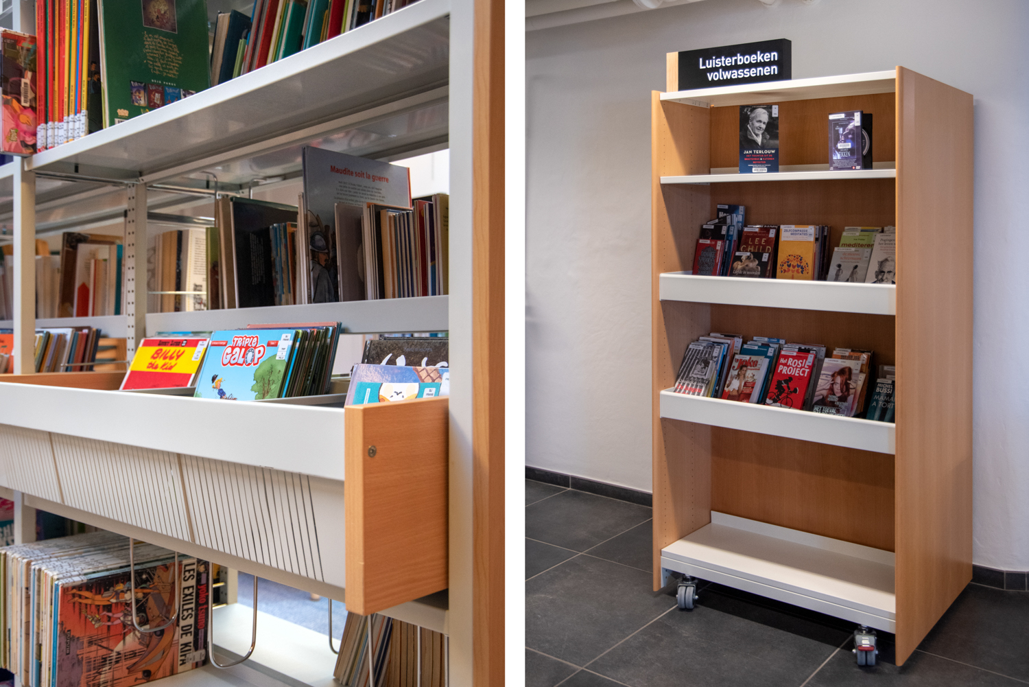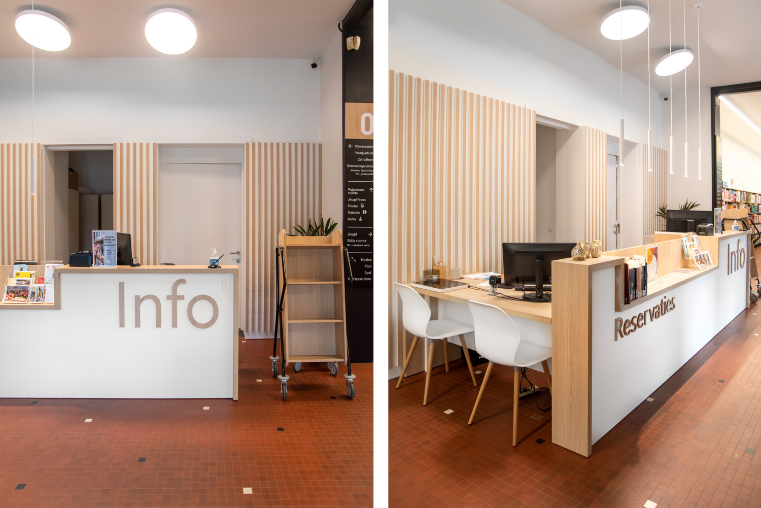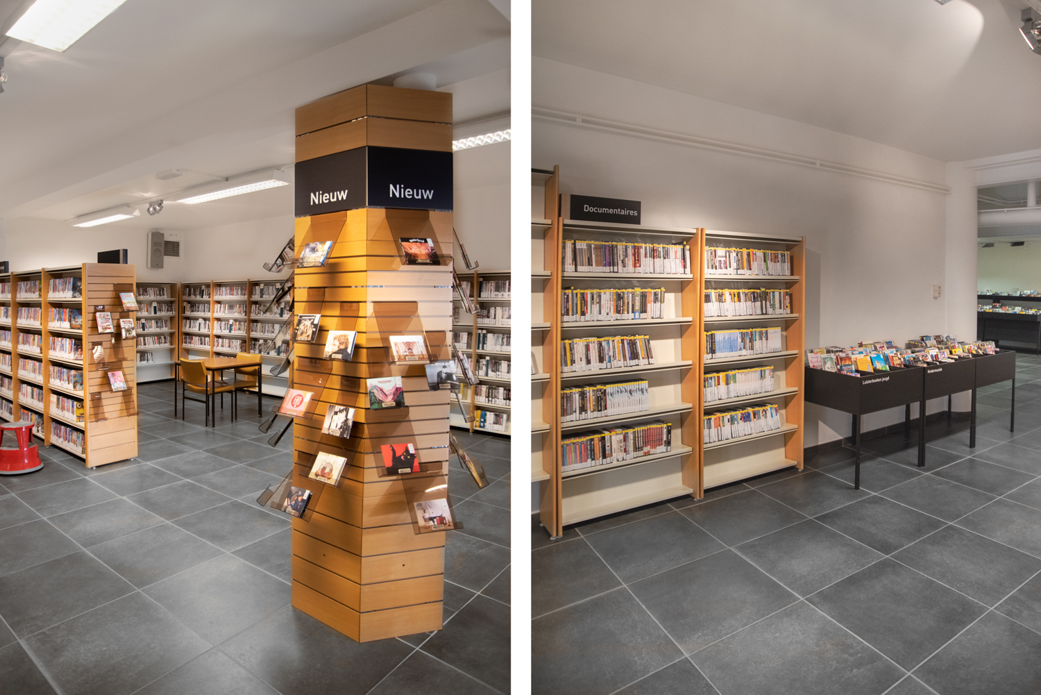 Bibliotekarien Karen Demeulemeester säger: ”Med den nya inredningen håller vi fast vid byggnadens ursprungliga atmosfär och karaktär. Vi har haft önskemål om att skapa komfort och användarvänlighet för våra besökare. Tack vare de eleganta och sobra nya möblerna tar vi steget in i modern biblioteksservice.”