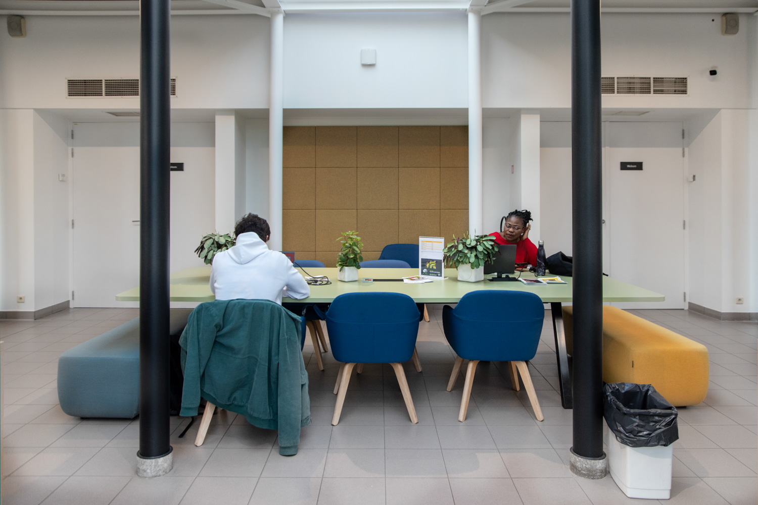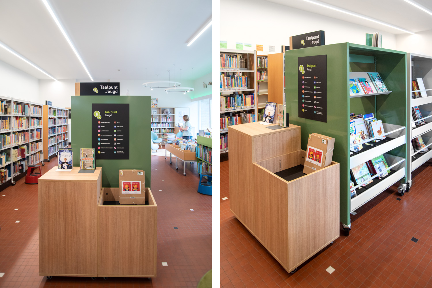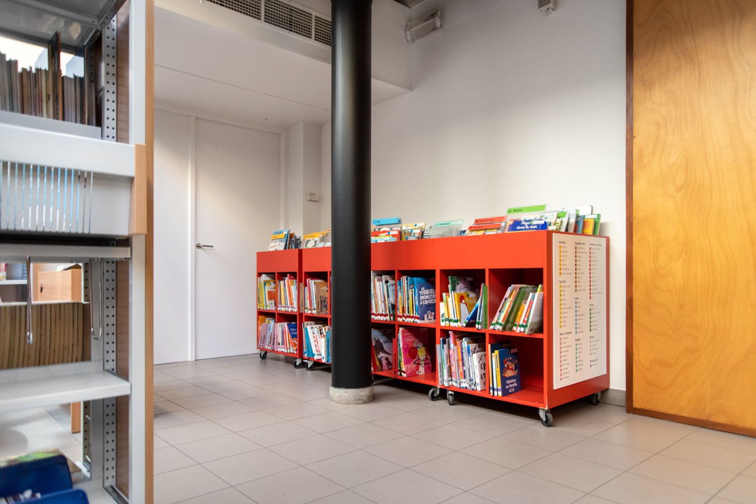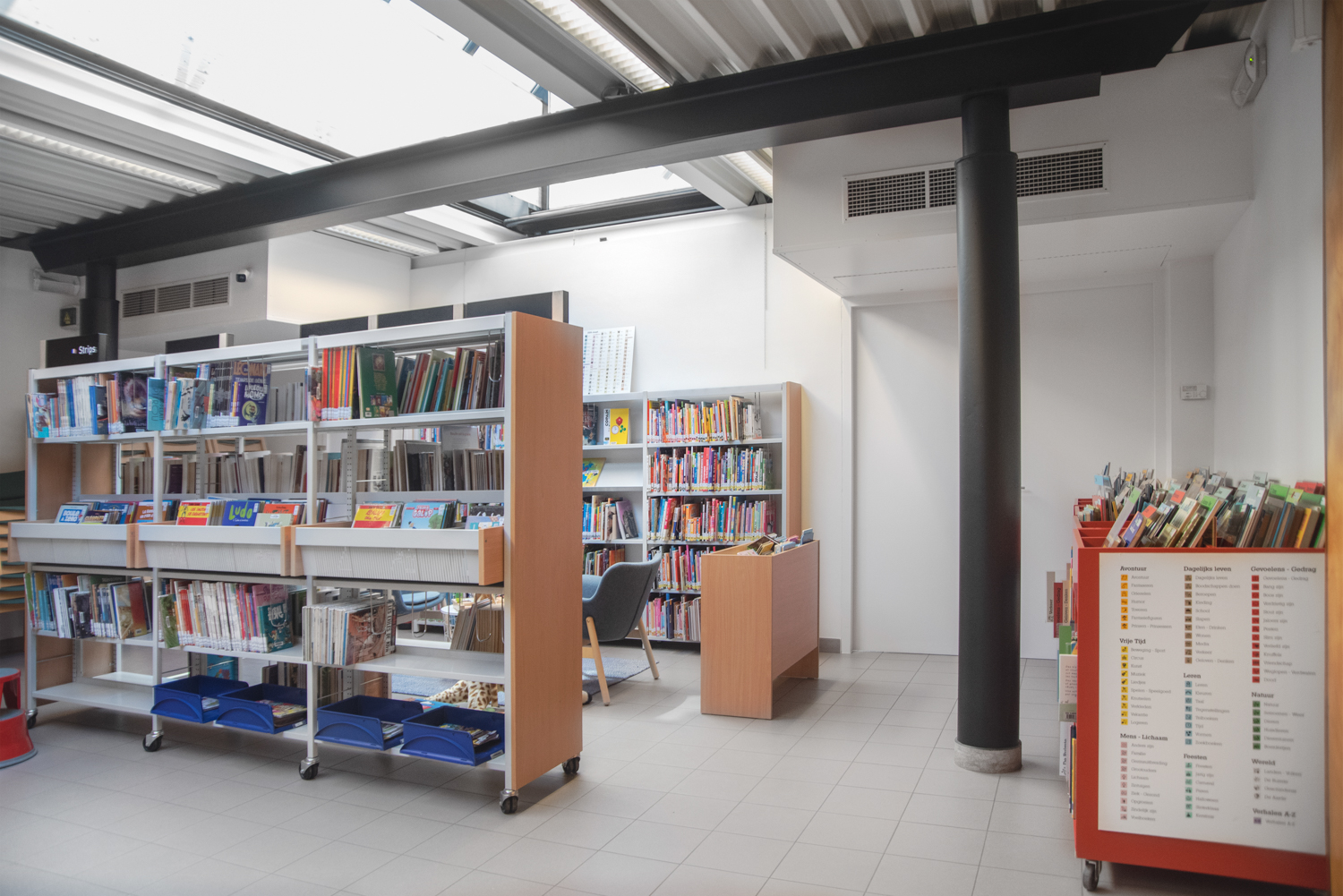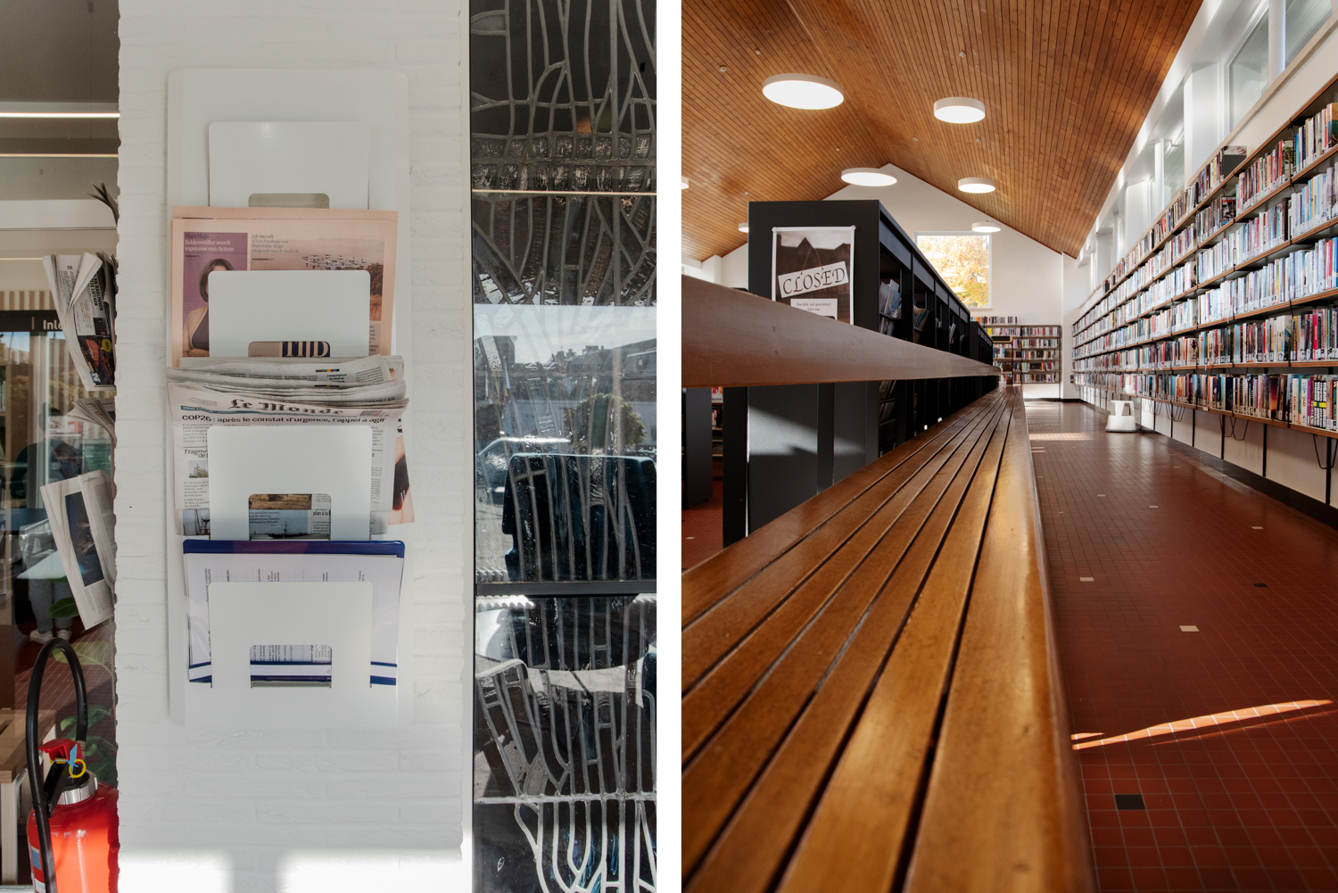 Bibliotekarien Karen Demeulemeester säger: ”Med den nya inredningen håller vi fast vid byggnadens ursprungliga atmosfär och karaktär. Vi har haft önskemål om att skapa komfort och användarvänlighet för våra besökare. Tack vare de eleganta och sobra nya möblerna tar vi steget in i modern biblioteksservice.”