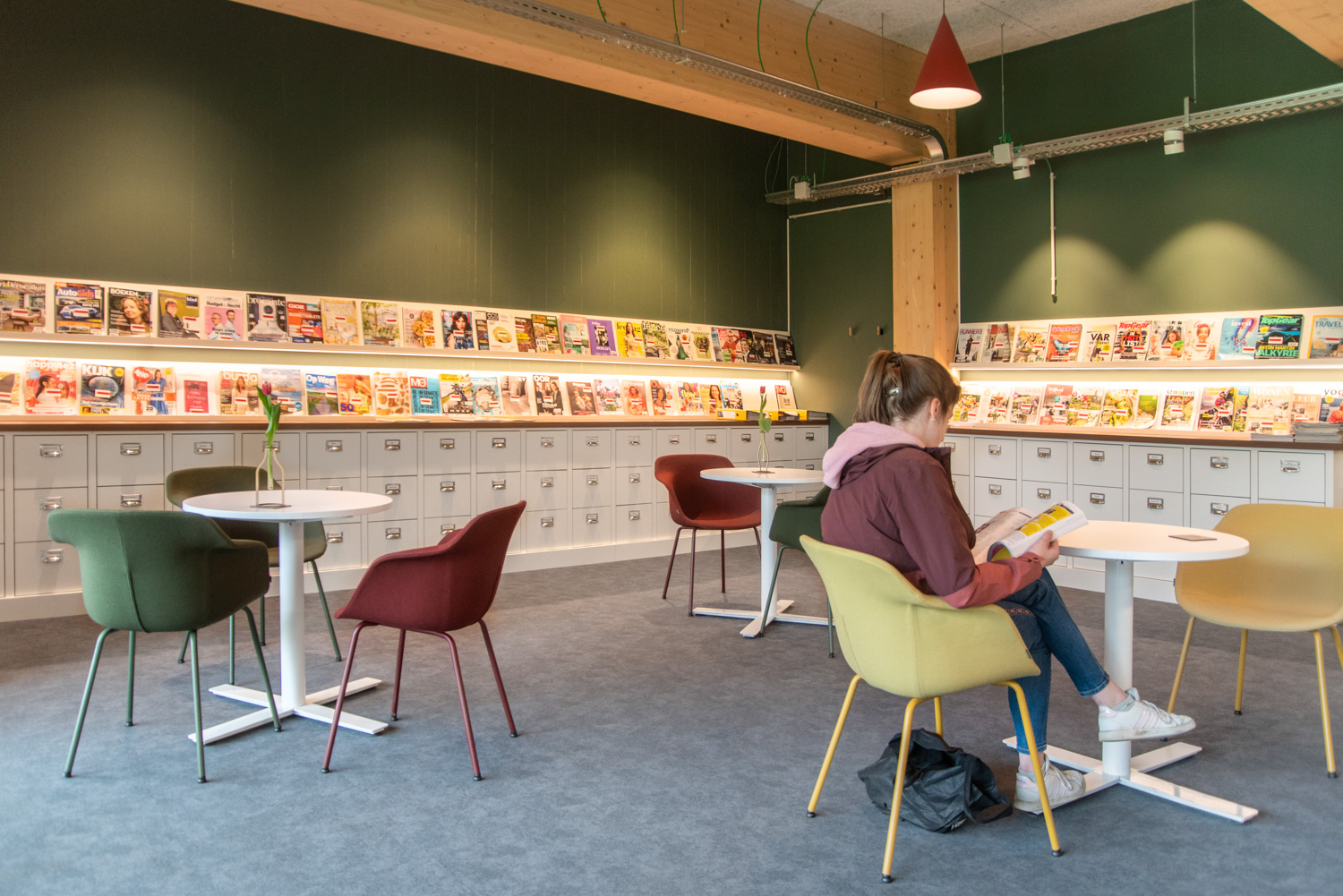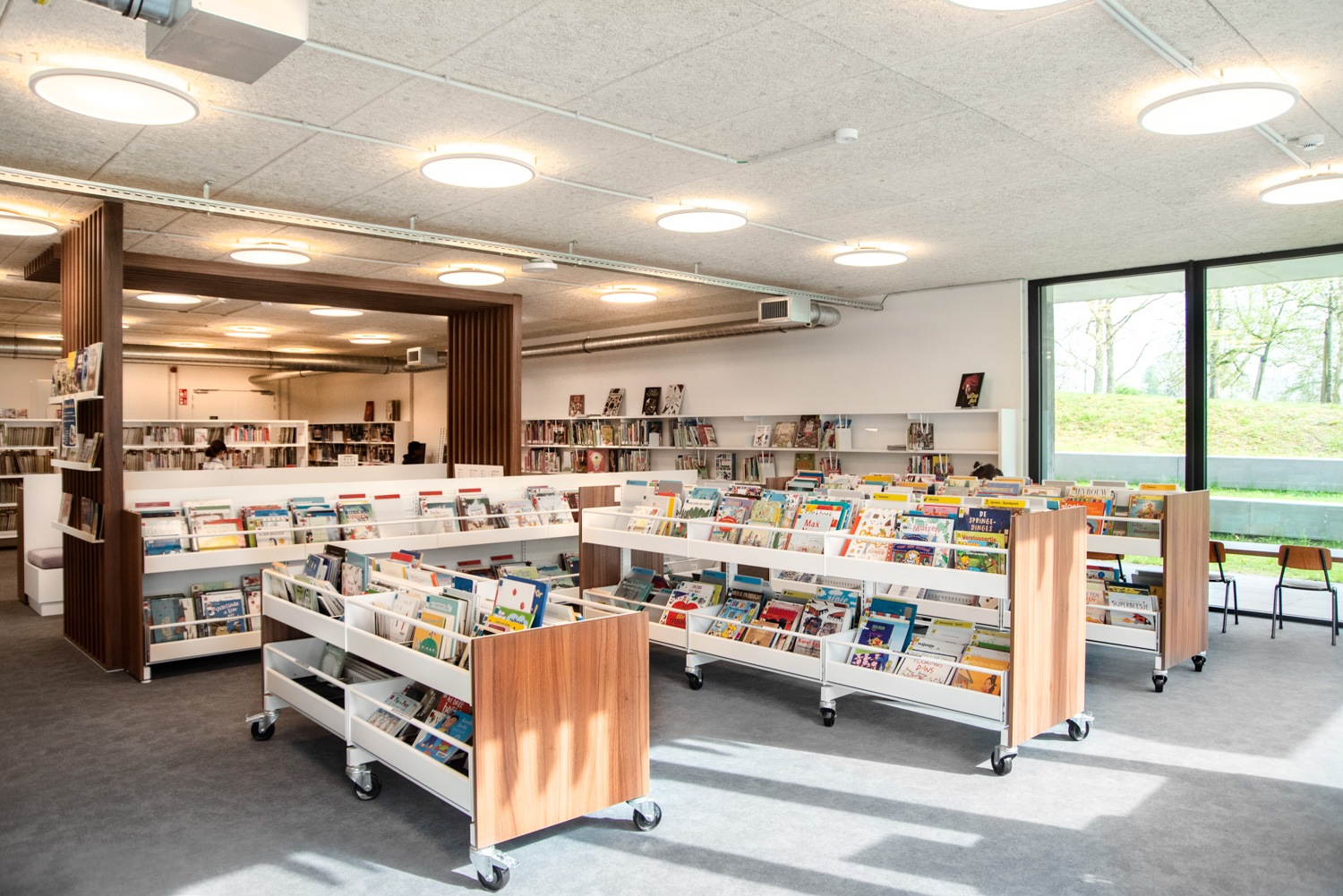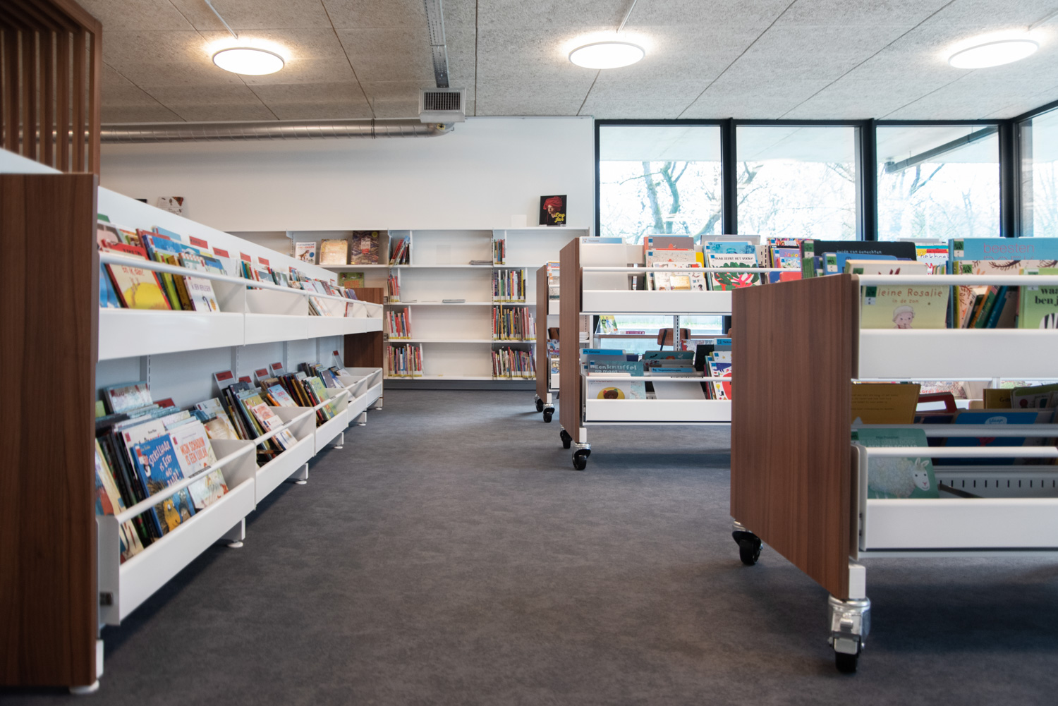 Schulz Benelux har ansvarat för inredning av biblioteket och valet av hyllsystem, bord och sittplatser samt specialdesignade möbler.