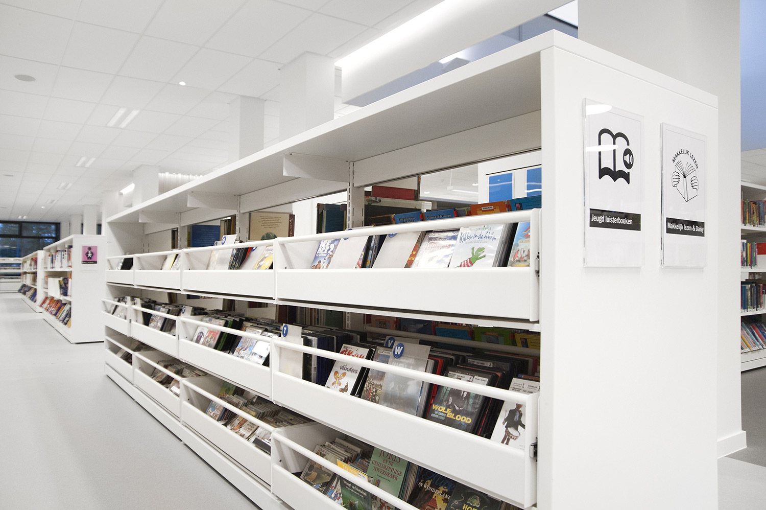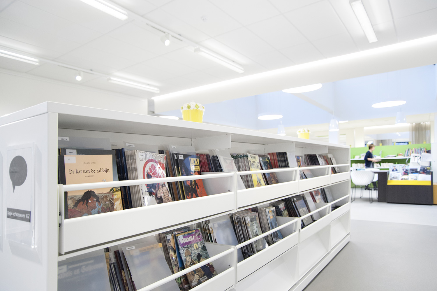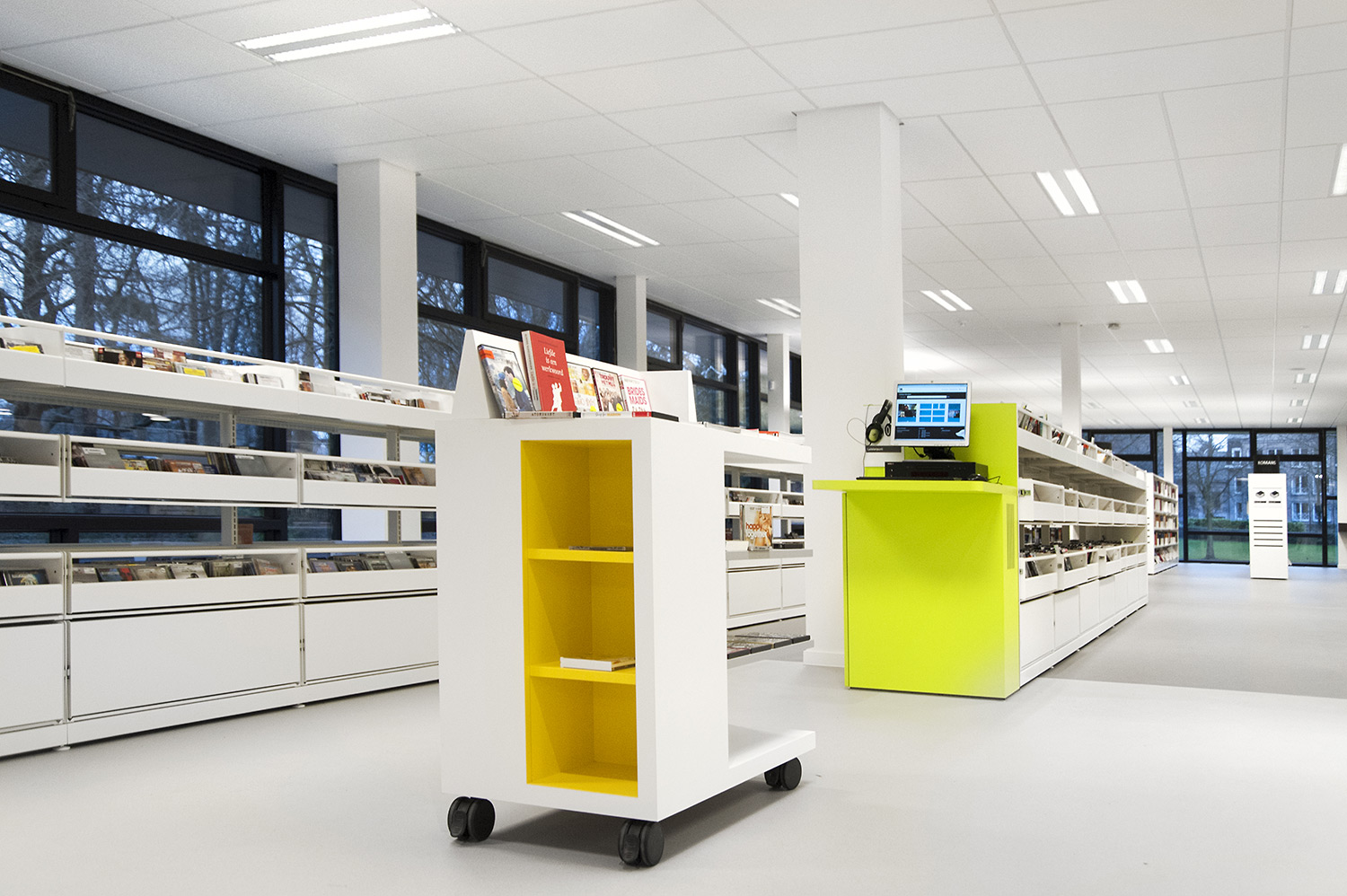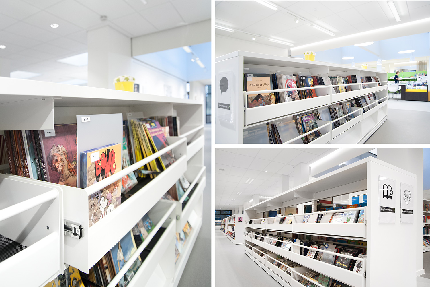Detta projekt är resultatet av ett gott samarbete mellan arkitekter, bibliotek, möbelproducent POTTEAU Labo samt Schulz Benelux.