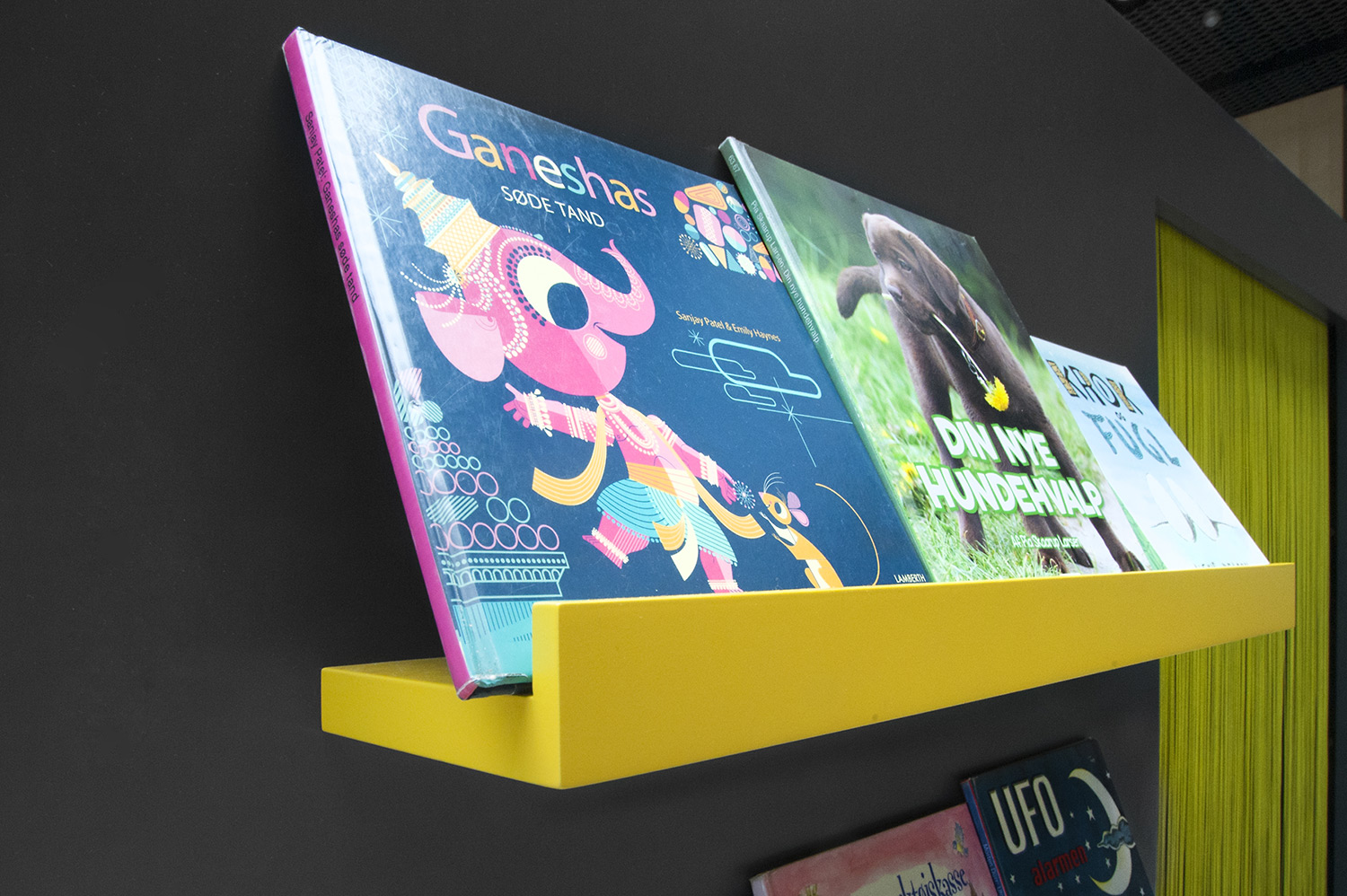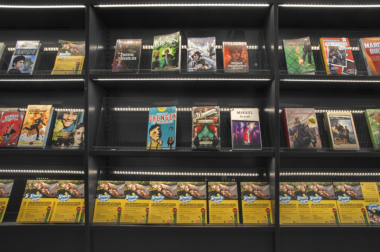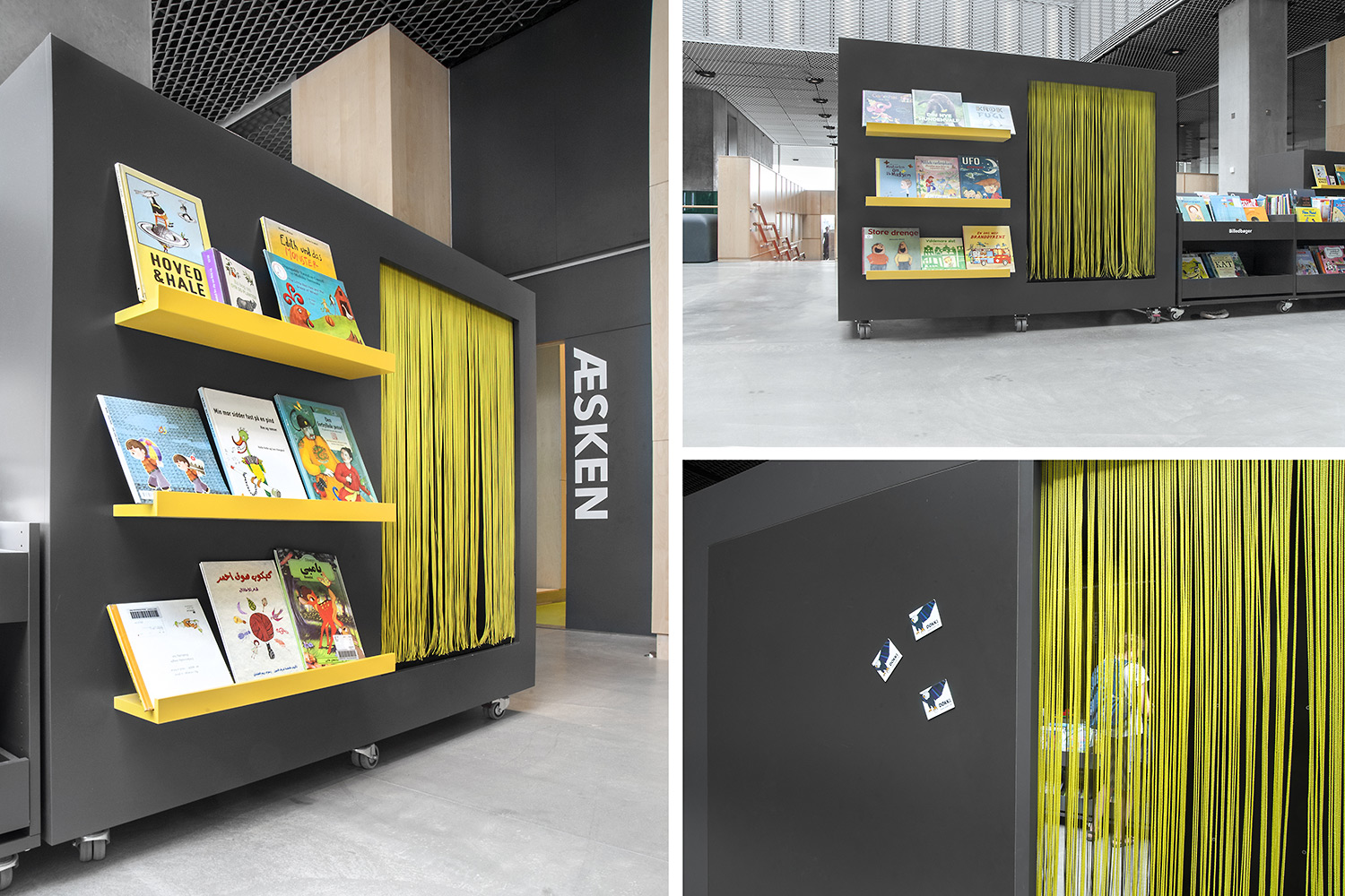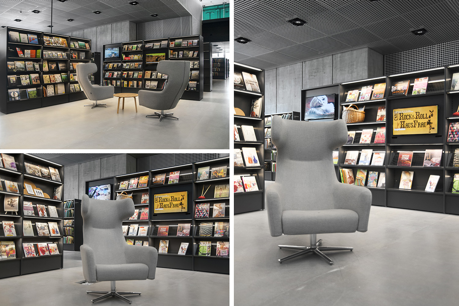 På beställarens anmodan att använda så få olika möbelmodeller som möjligt i det nya biblioteket, gjordes bland annat en fusion av våra välkända hyllsystem Ordrup och Frontline Square – resultatet är Ordrup Square!