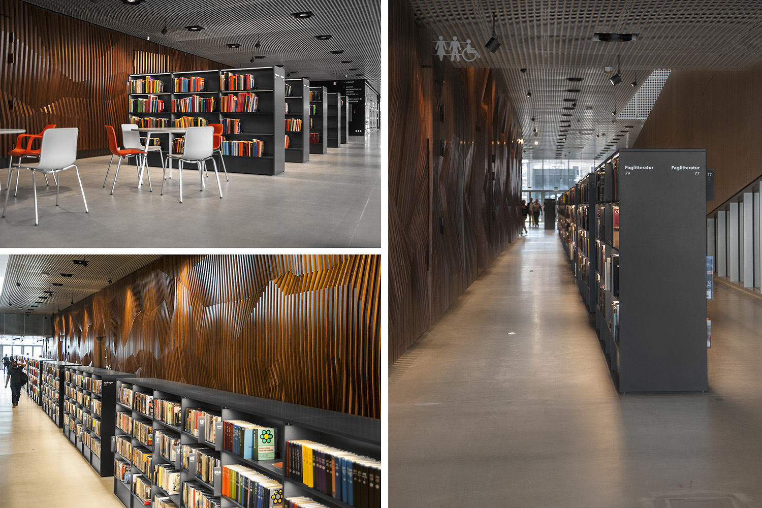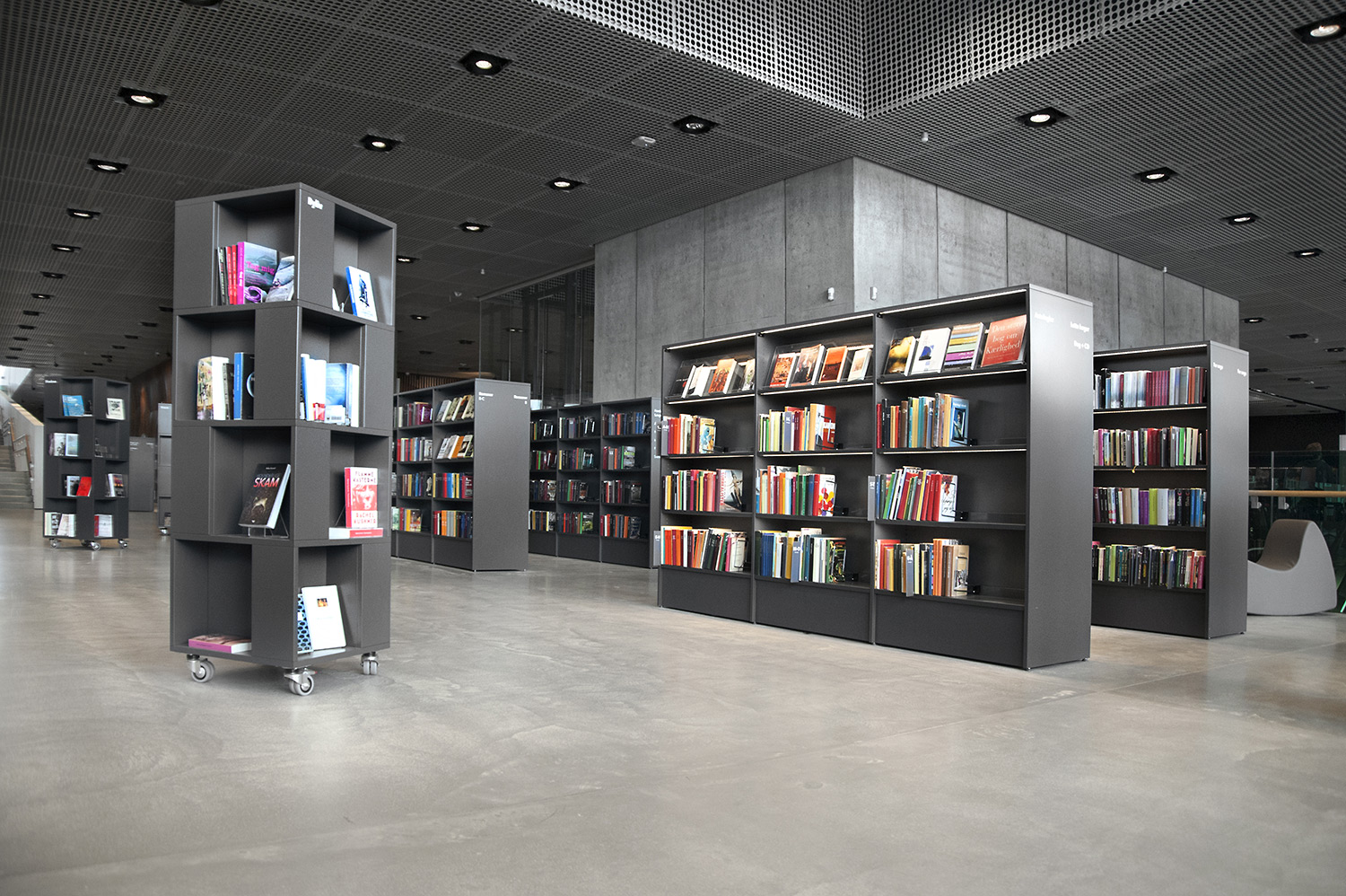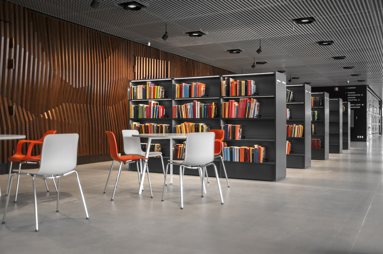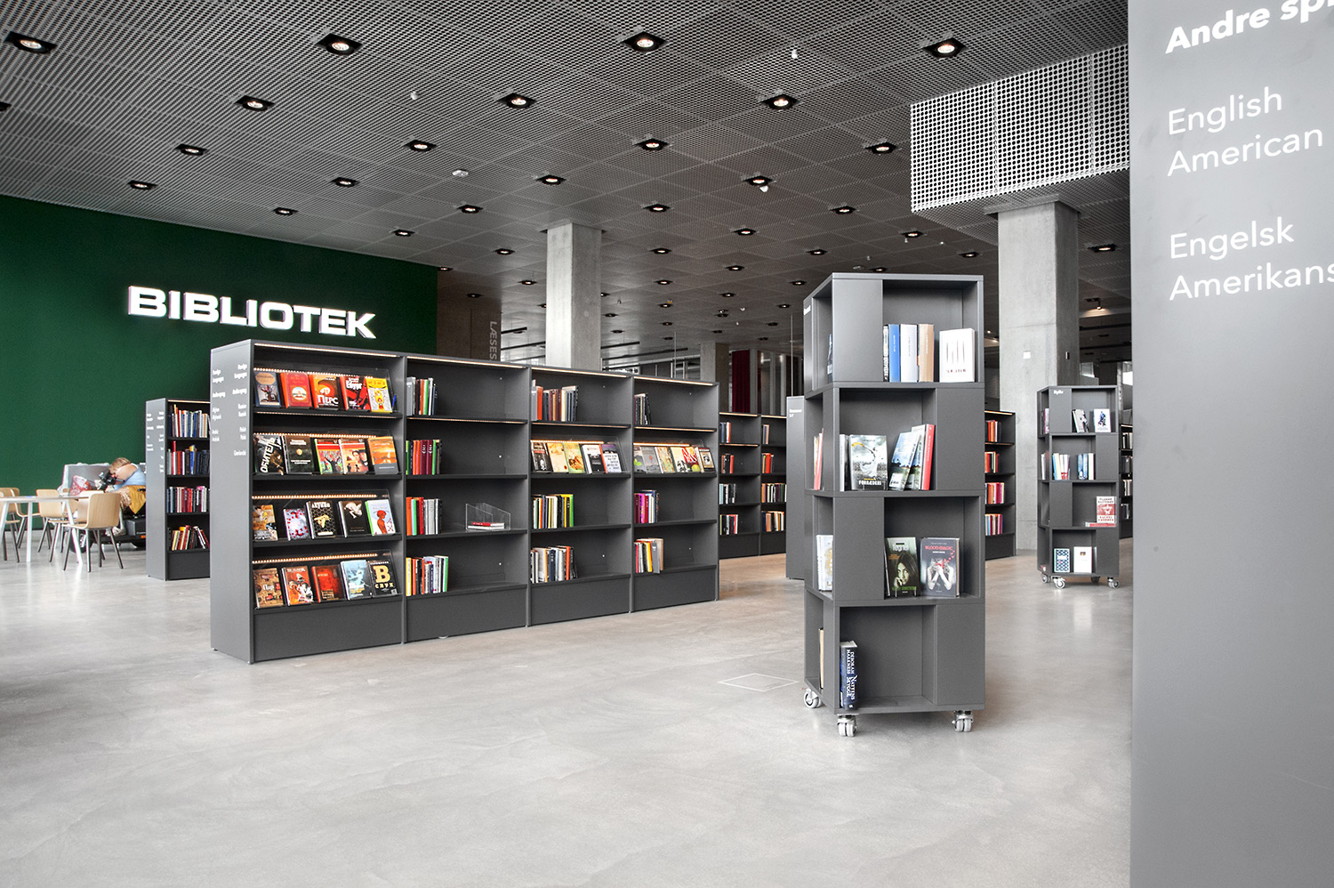 Vårt systerbolag i Danmark, Lammhults Biblioteksdesign A/S, svarar för merparten av såväl standard- som kundanpassad biblioteksinredning till biblioteket. Byggnadens arkitektur är utformad som en öppen, demokratisk stadsmiljö under tak – ett landskap som när man färdas igenom det erbjuder både hänförande utsikt och utrymme.