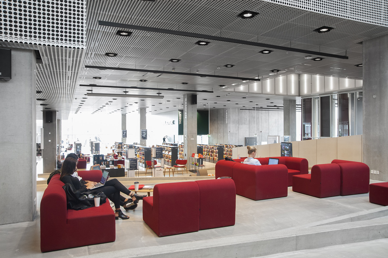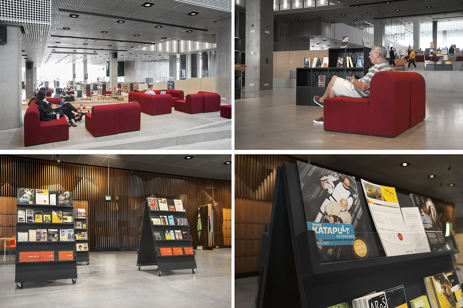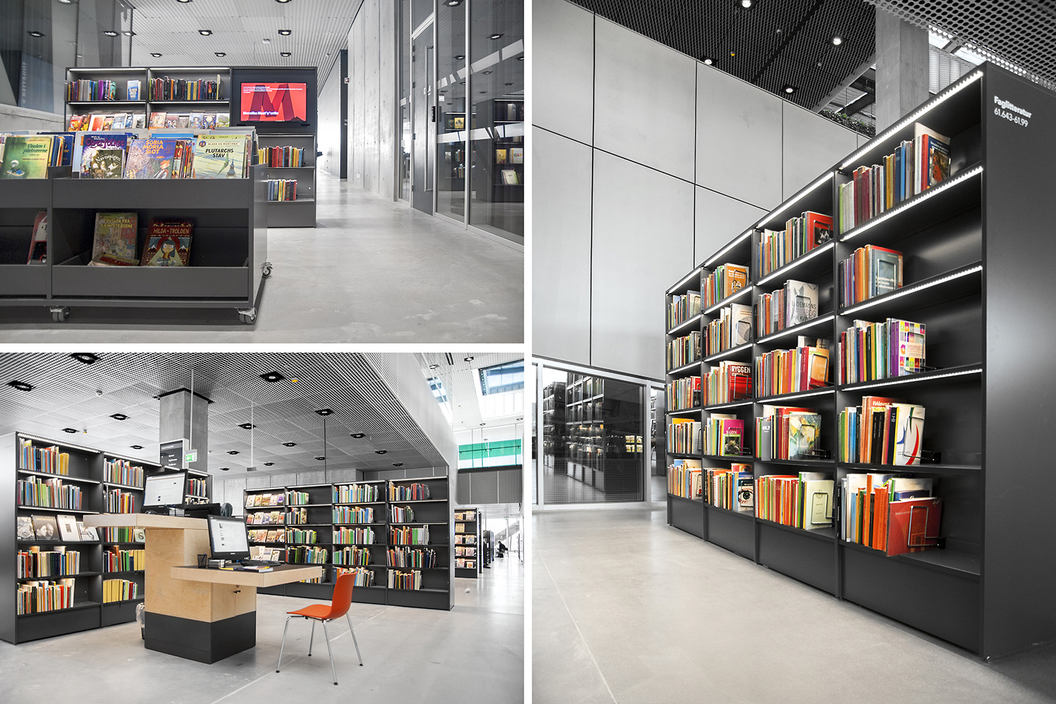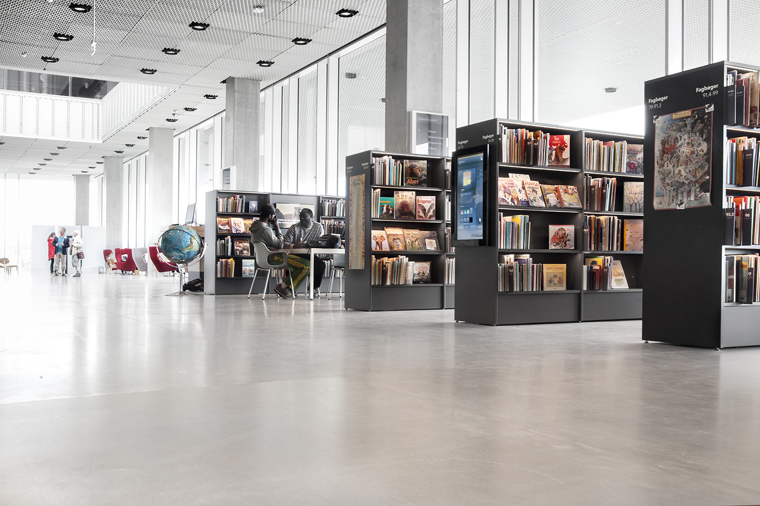 Vårt systerbolag i Danmark, Lammhults Biblioteksdesign A/S, svarar för merparten av såväl standard- som kundanpassad biblioteksinredning till biblioteket. Byggnadens arkitektur är utformad som en öppen, demokratisk stadsmiljö under tak – ett landskap som när man färdas igenom det erbjuder både hänförande utsikt och utrymme.