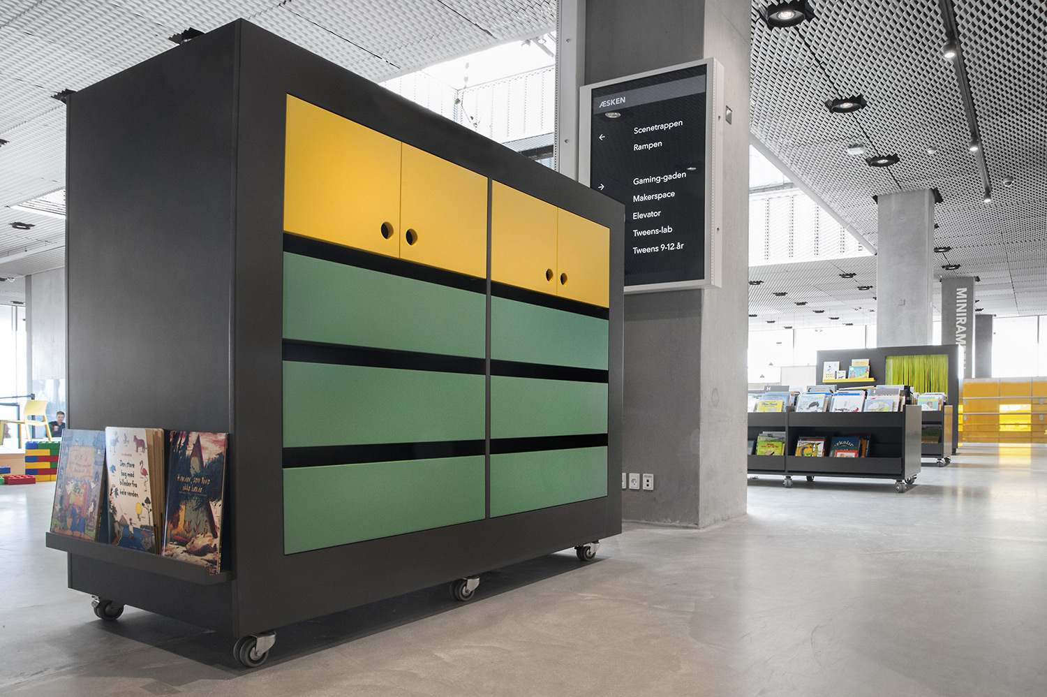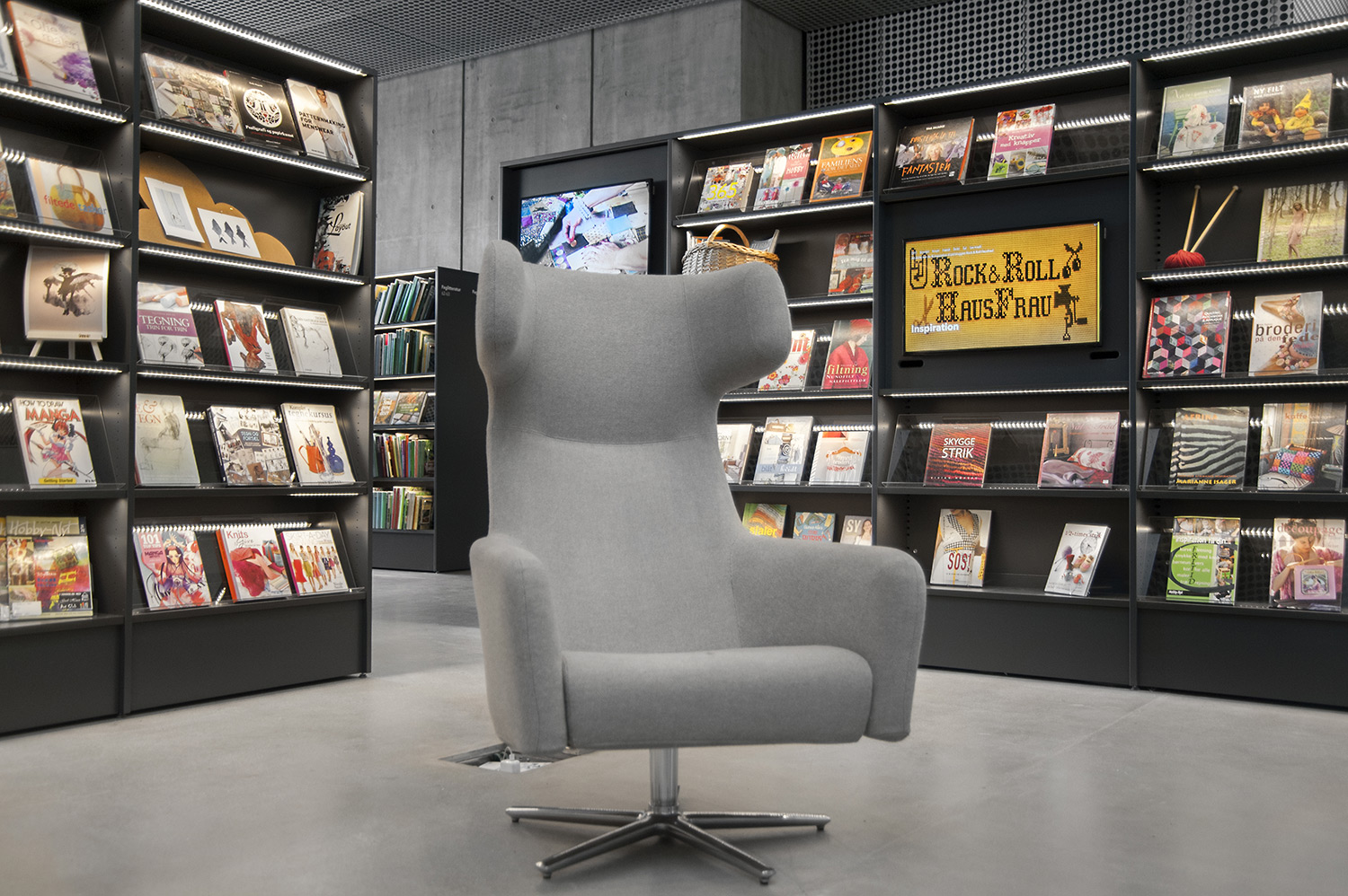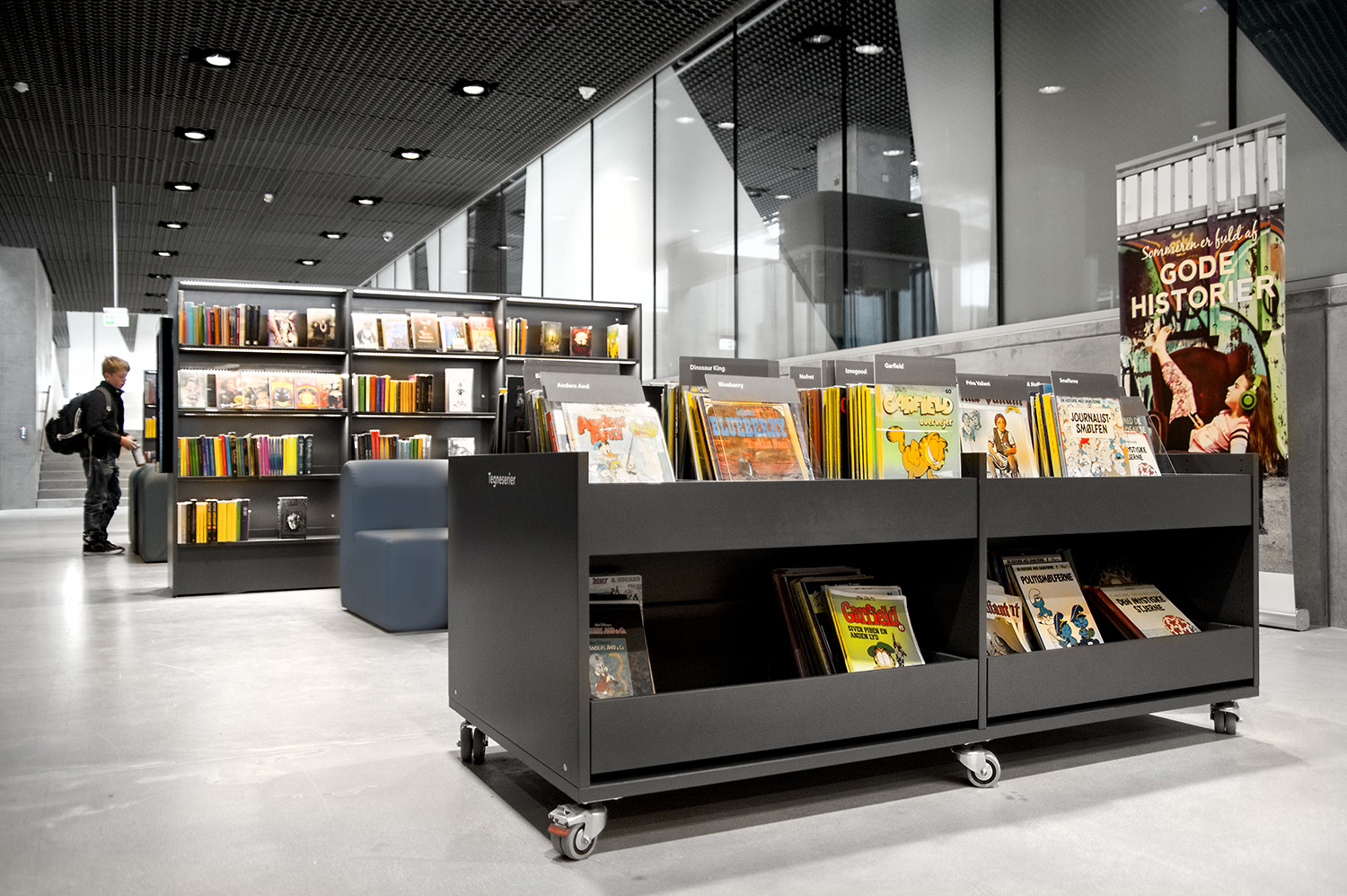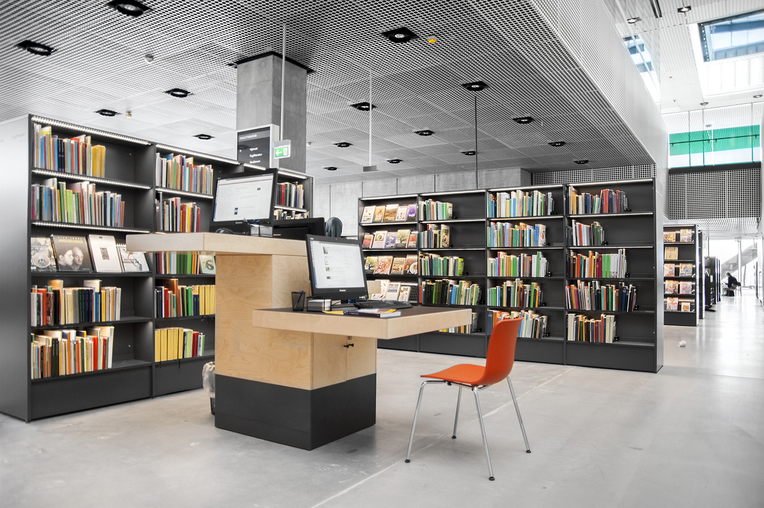 Vårt systerbolag i Danmark, Lammhults Biblioteksdesign A/S, svarar för merparten av såväl standard- som kundanpassad biblioteksinredning till biblioteket. Byggnadens arkitektur är utformad som en öppen, demokratisk stadsmiljö under tak – ett landskap som när man färdas igenom det erbjuder både hänförande utsikt och utrymme.