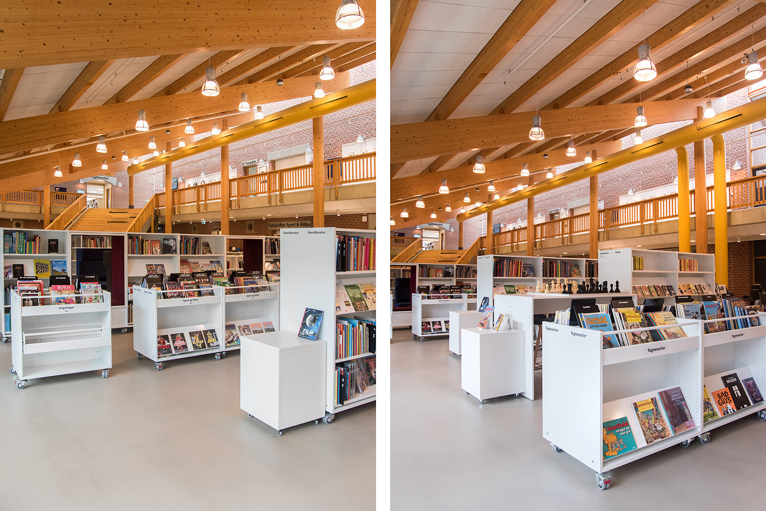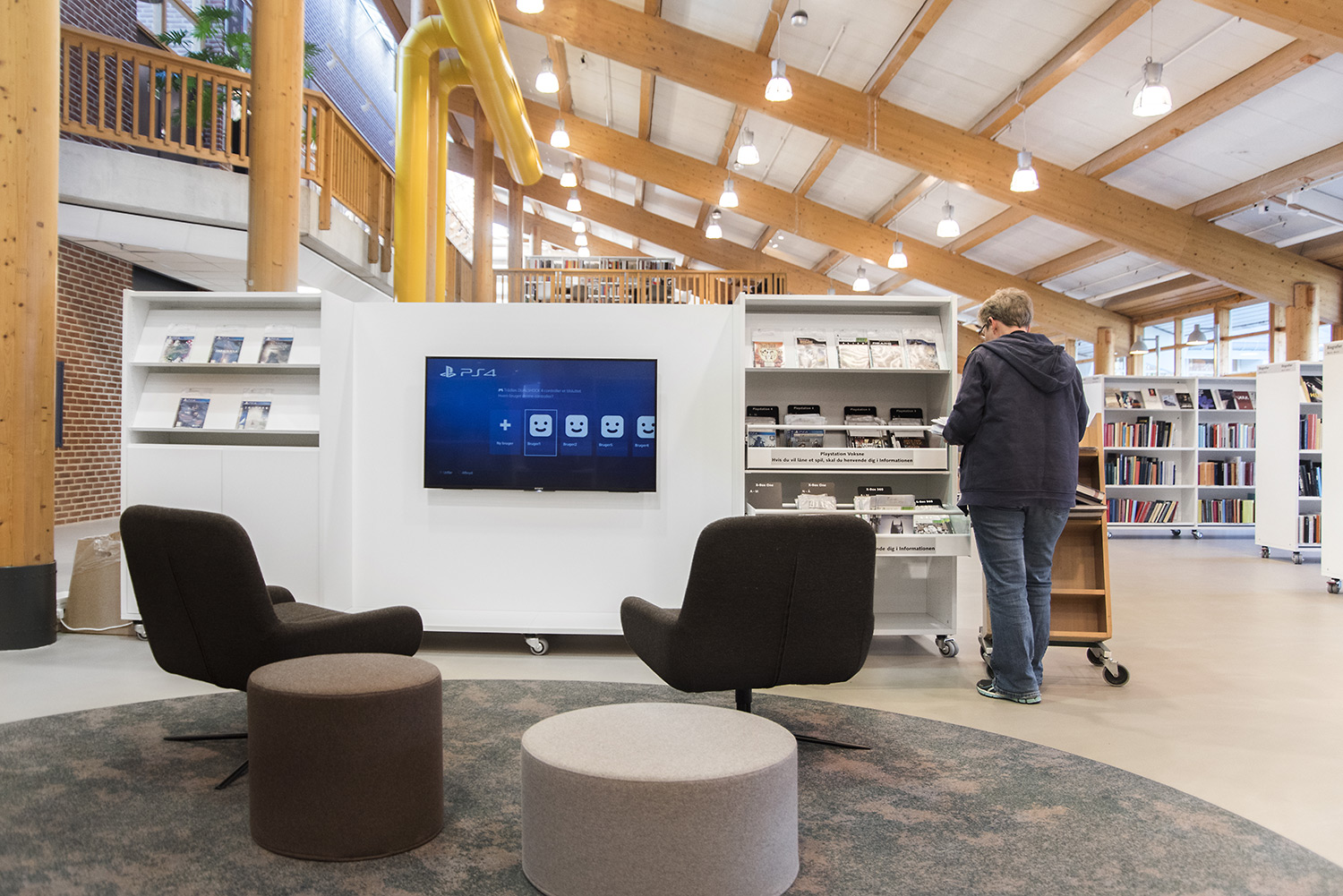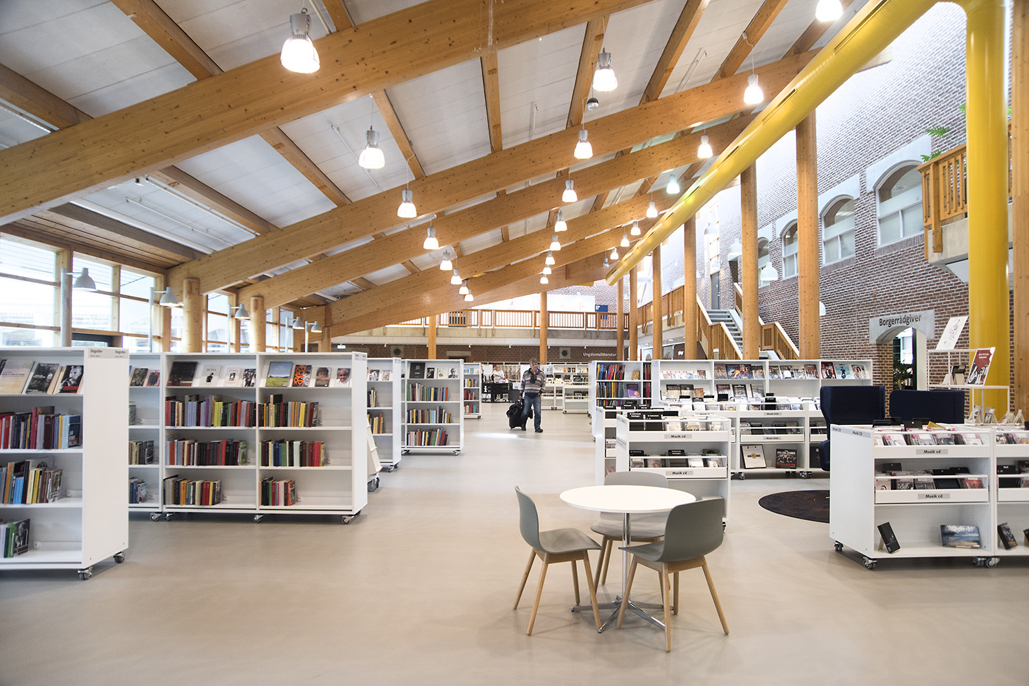 Esbjergs huvudbibliotek öppnades för första gången för 32 år sedan och har nu genomgått en del av en omfattande renovering för att möta dagens krav på ett modernt bibliotek. Vid utgången av 2018 är målet att biblioteket ska upplevas betydligt mer nutida, inbjudande och levande; ett hus att mötas i på kors och tvärs oberoende vilka media du söker, i vilken avdelning du befinner dig i och vilka event du besöker.