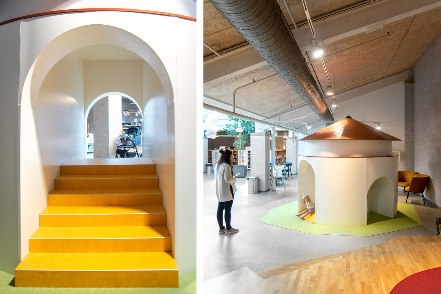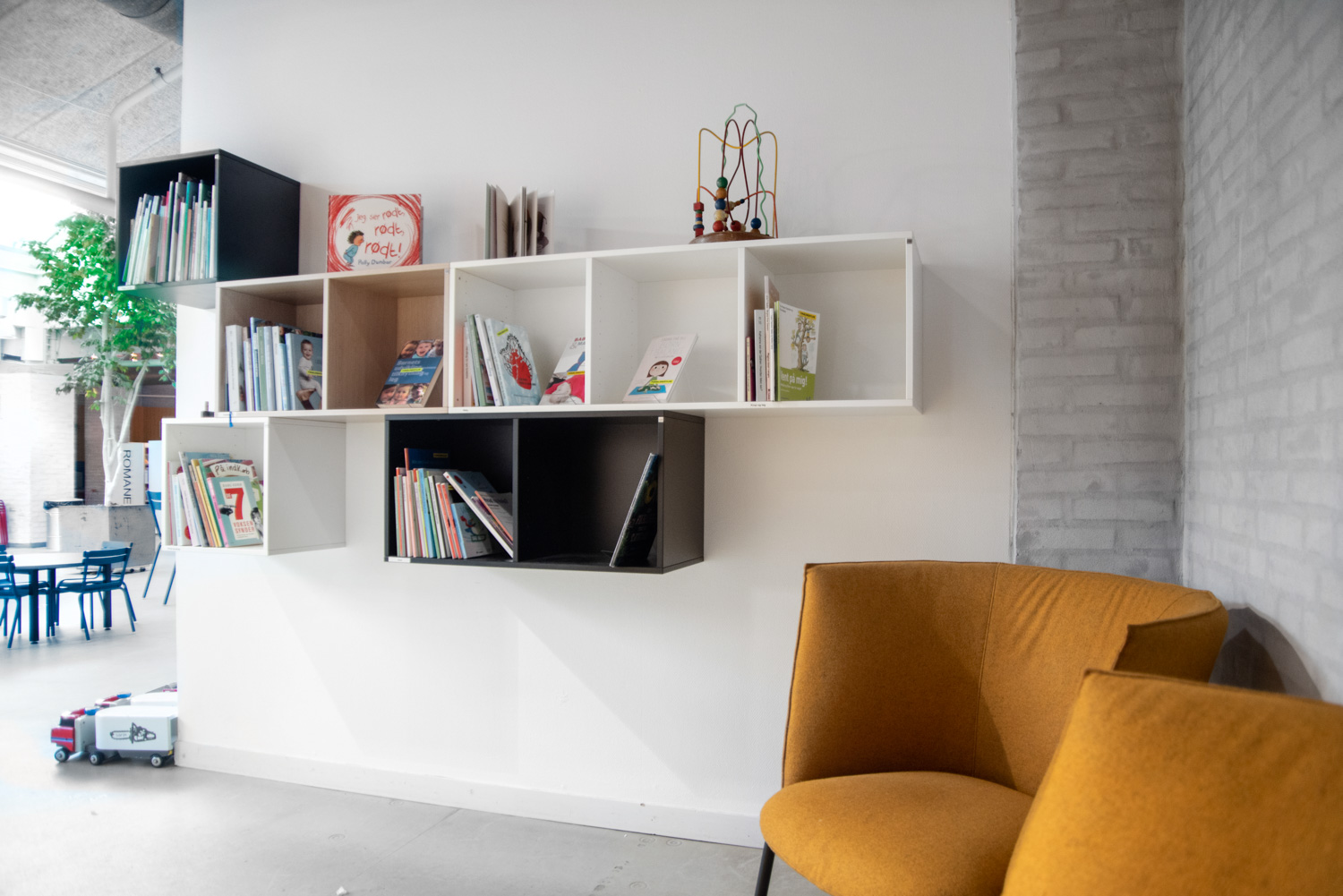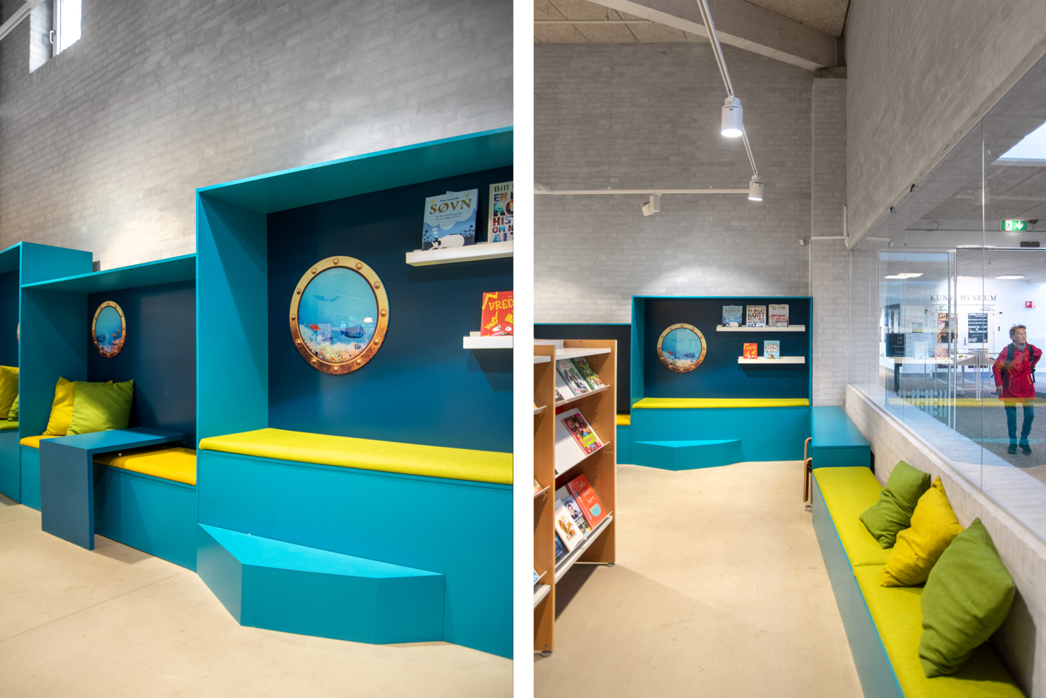 För de mindre barnen har fokus varit att skapa ett lekområde med plats för föräldrarna. Här finns bland annat ett torn där kan barnen klättra och rutscha – som också är en miniatyr av stadens landmärke "Krudttårnet". De turkosa läsgrottorna har fått hyttventiler som ger känslan av att befinna sig under vatten. Det har skapats plats för föräldrar eller mor- och farföräldrar att sitta bredvid och observera barnen på olika mys- och loungemöbler, och biblioteket har även fått helt nya fikabord och en garderob.