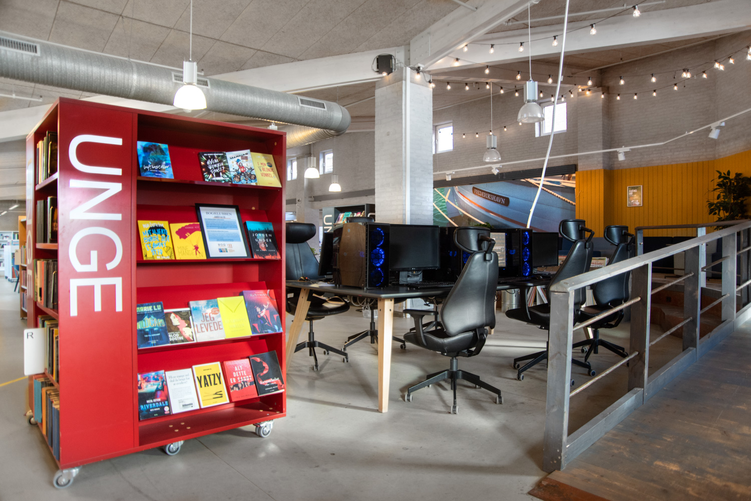 Arbetet med att skapa en unik och spännande barn- och ungdomsavdelning på Frederikshavns bibliotek började 2016. Målet var ett häftigt "hängområde" för de unga och ett lekfullt barnområde för de minsta.