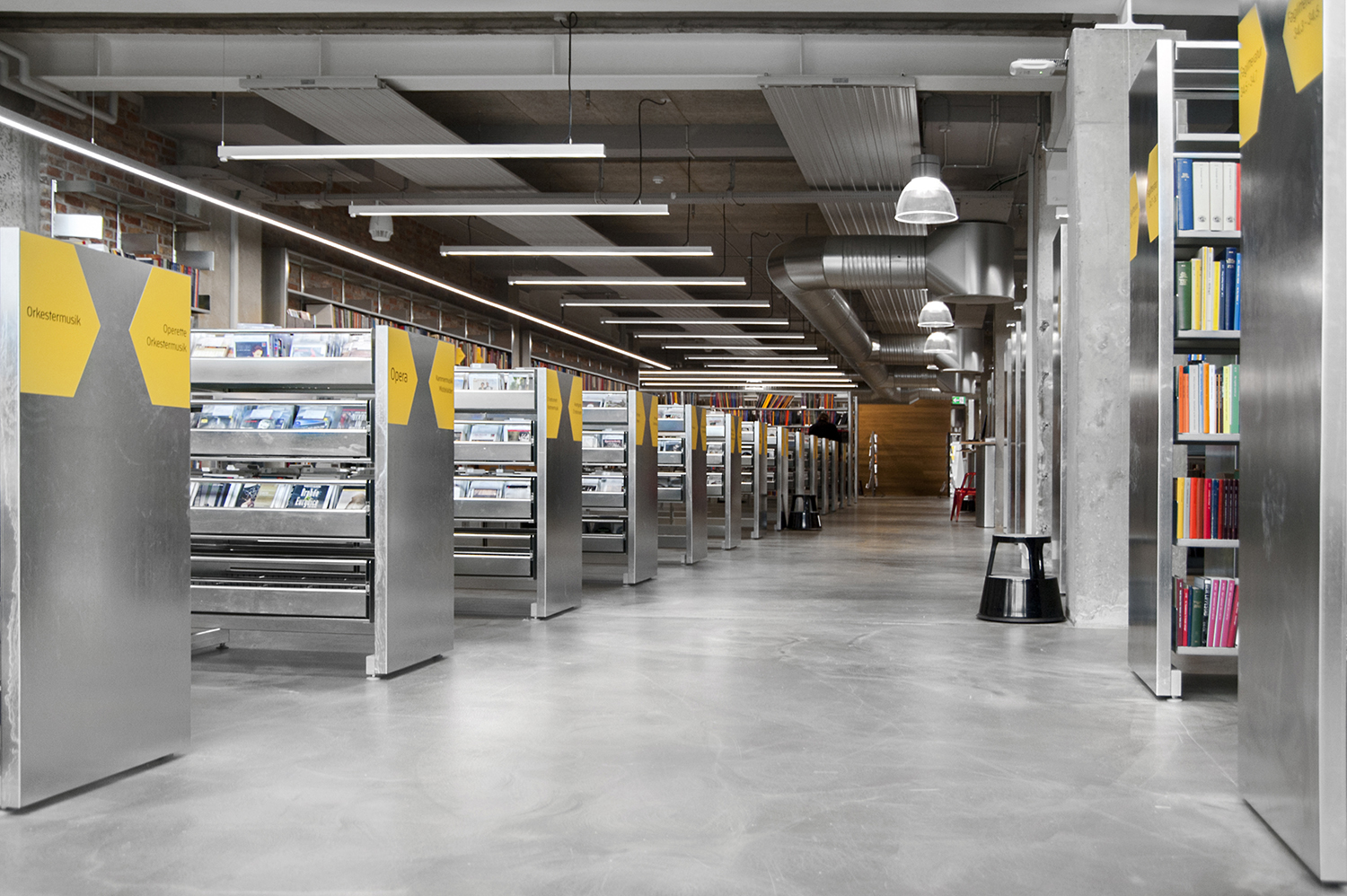 På så kort tid som två år – ett slags rekord – och med en i sammanhanget modest budget på 80 miljoner danska kronor har de inblandade aktörerna förvandlat ett grått och trist varuhus till ett nyskapande bibliotek. Man har hämtat inspiration från moderna miljöer med råa väggar i röd tegelsten, naken betong och glas.