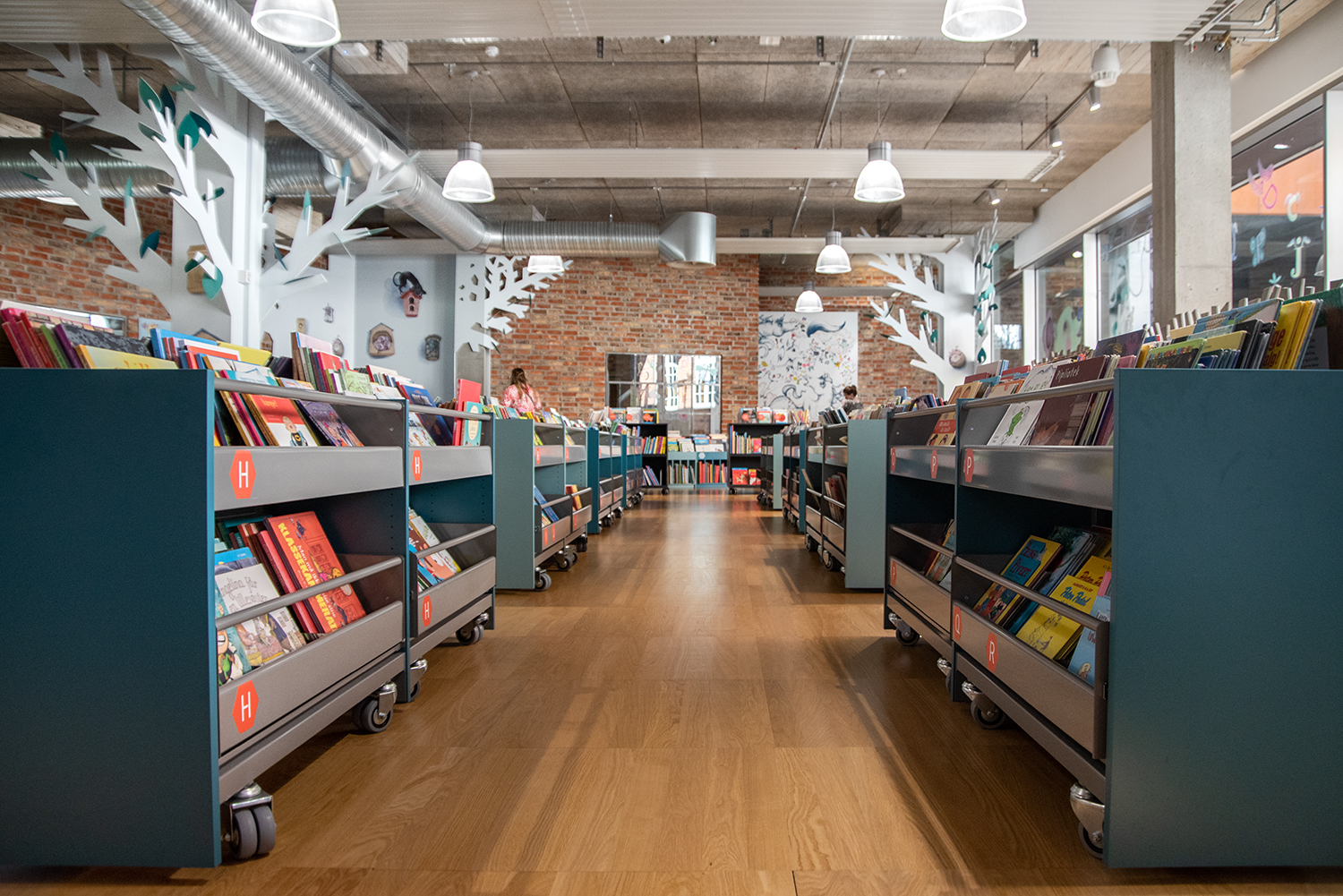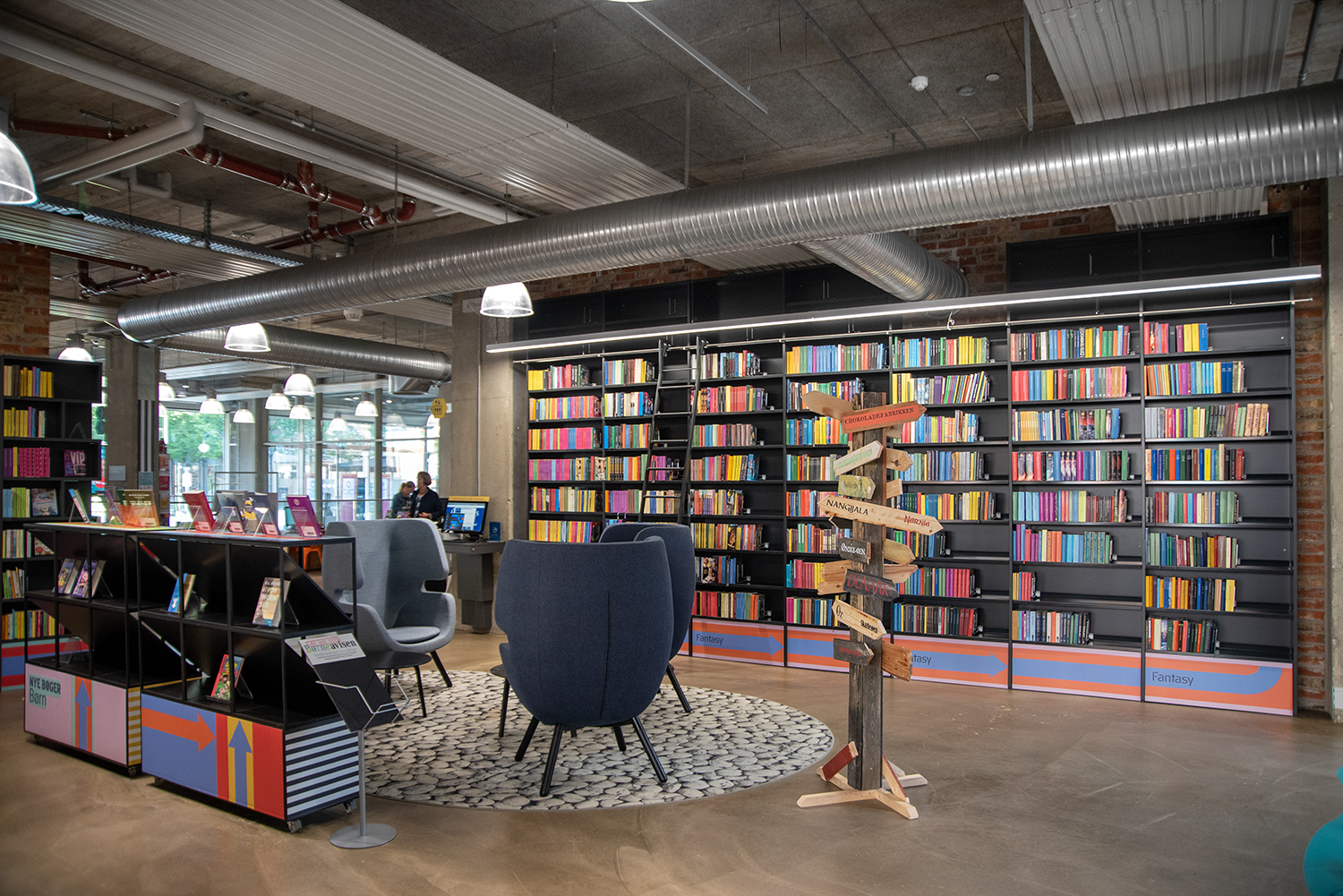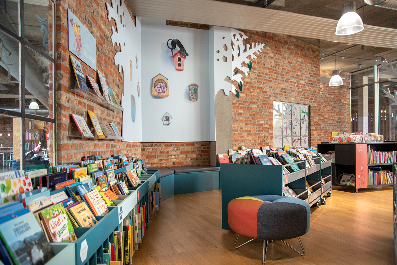 Under 2021 förnyades barnavdelningen med nya exponeringslådor i härliga pastellfärger. De ger ett mjukt intryck som står i flott kontrast till den befintliga råa New York-stilen.