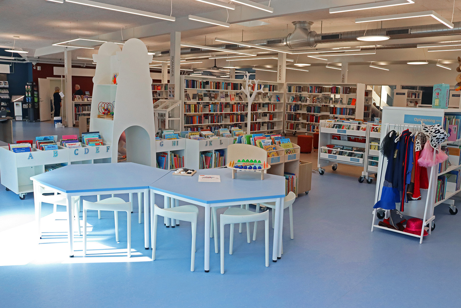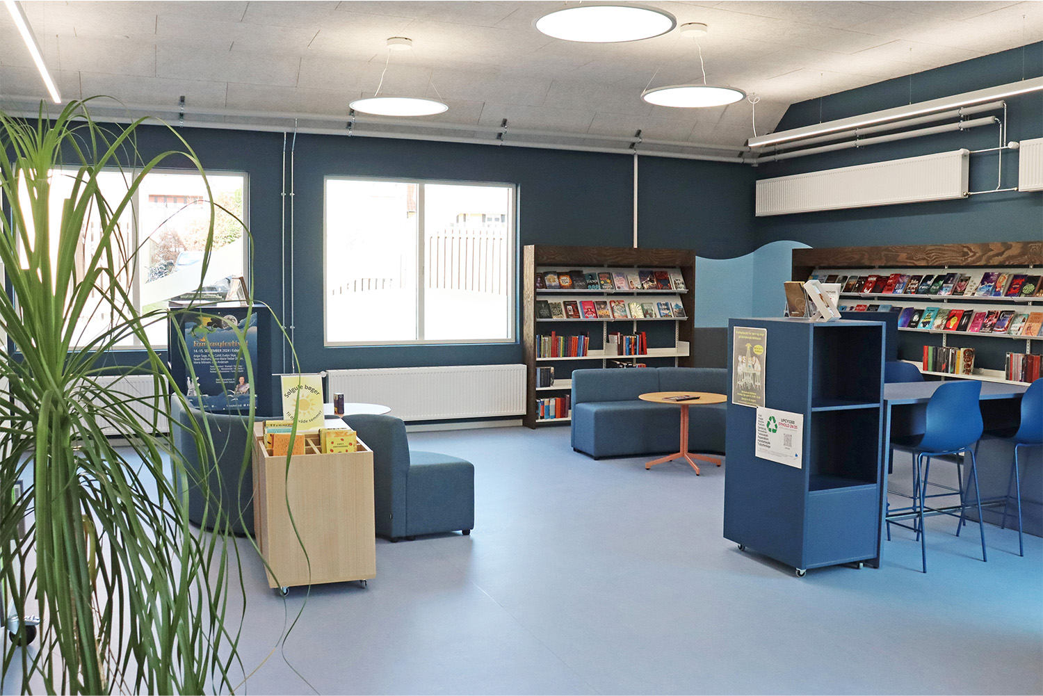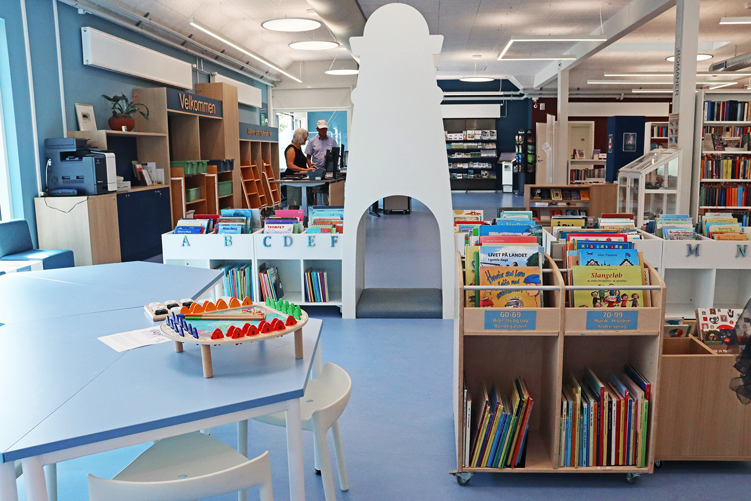 Den skräddarsydda designen är inspirerad av Kertemindes maritima arv, med det sjunkna vikingaskeppet Ladby i centrum för temat. Den blå och vita färgpaletten skapar en lugn atmosfär som är välkomnande för besökare i alla åldrar. Biblioteket är indelat i olika zoner som erbjuder allt från lugna läsplatser till aktiva kreativa utrymmen och ett helt nytt barnbibliotek, vilket gör det till en plats där alla kan hitta utrymme för lärande och inspiration.