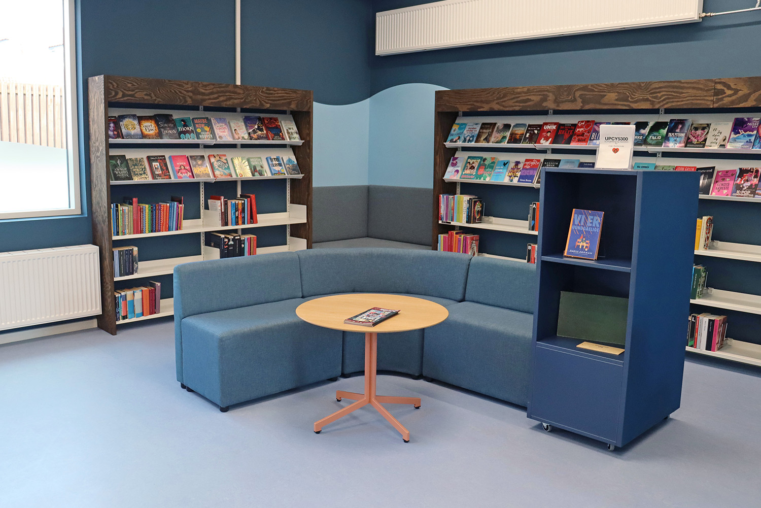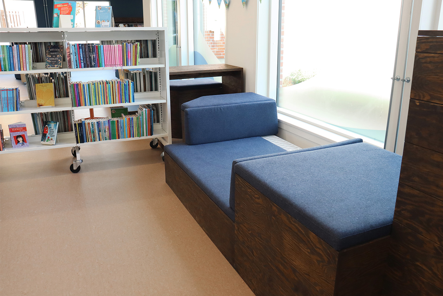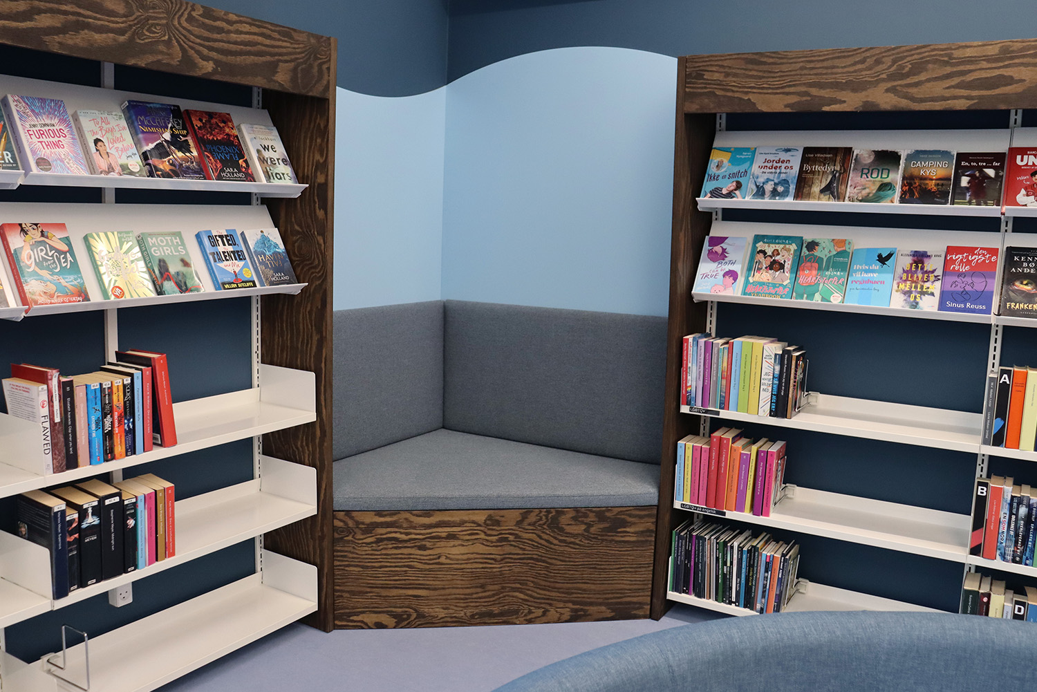 Den skräddarsydda designen är inspirerad av Kertemindes maritima arv, med det sjunkna vikingaskeppet Ladby i centrum för temat. Den blå och vita färgpaletten skapar en lugn atmosfär som är välkomnande för besökare i alla åldrar. Biblioteket är indelat i olika zoner som erbjuder allt från lugna läsplatser till aktiva kreativa utrymmen och ett helt nytt barnbibliotek, vilket gör det till en plats där alla kan hitta utrymme för lärande och inspiration.