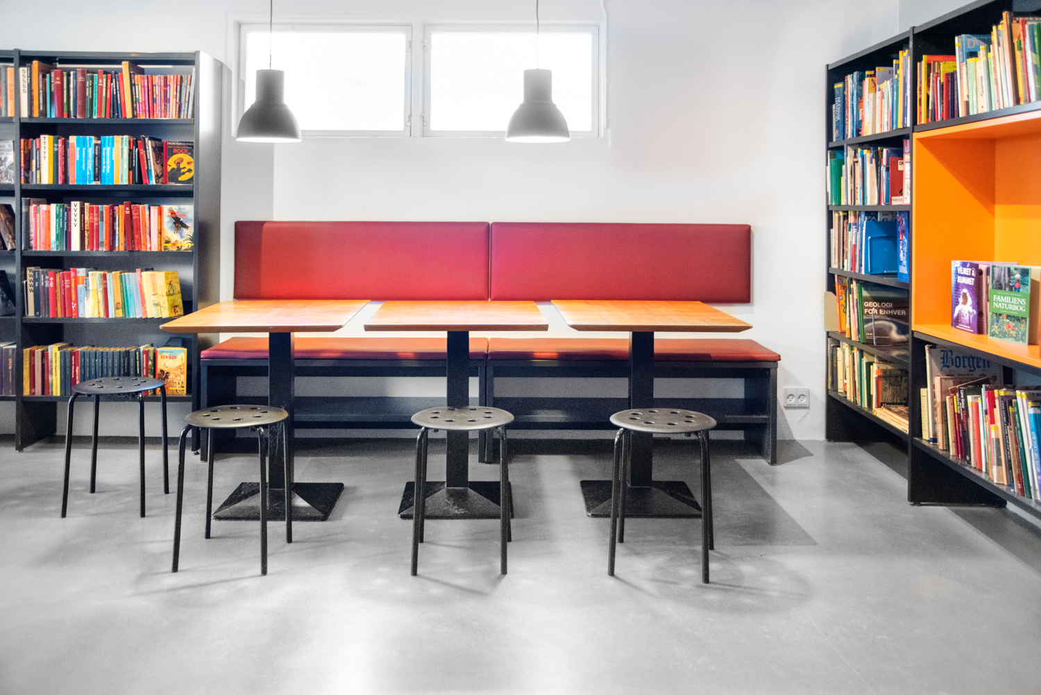I källaren på Sankt Knud Lavard Skole i Lyngby finns det lilla skolbiblioteket på knappt 60 kvadratmeter. Skolan har nästan 200 elever, och biblioteket spelar en central roll för att skapa en social mötesplats som de kan använda för olika aktiviteter.
