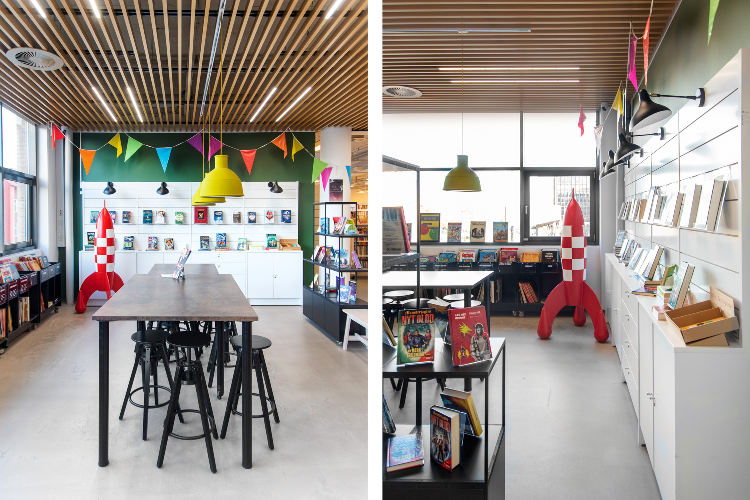 Odense bibliotek har genomgått en transformation som i hög grad gick ut på att samla många olika områden och önskemål till en helhet där den äldre biblioteksinredningen skulle återanvändas och rymma en stor mängd material samtidigt som den skulle ge större möjligheter till avkoppling, aktiviteter och utställningar.