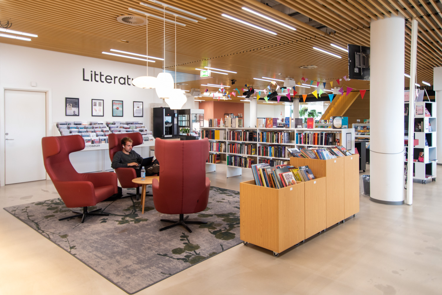”Odense-biblioteken har samarbetat med Lammhults Biblioteksdesign flera gånger under en längre tid. De har varit till jättestor hjälp och idépartner vid vår stora renovering på huvudbiblioteket 2017, då de ansvarade både för att samla in idéer från de relevanta personalgrupperna och därefter få dem att fungera tillsammans på planritningarna. De har även hjälpt oss anpassa inredningen efter de ursprungliga idéerna i takt med att budgeten tillåtit oss att förändra fler områden. Under covid-nedstängningen uppstod lite oväntat möjligheten att skapa en stor inomhusträdgård för läsning. Barn och föräldrar har verkligen tagit trädgården till sig och det är ett nöje att se dem använda den. Den är fortfarande jättefin.”