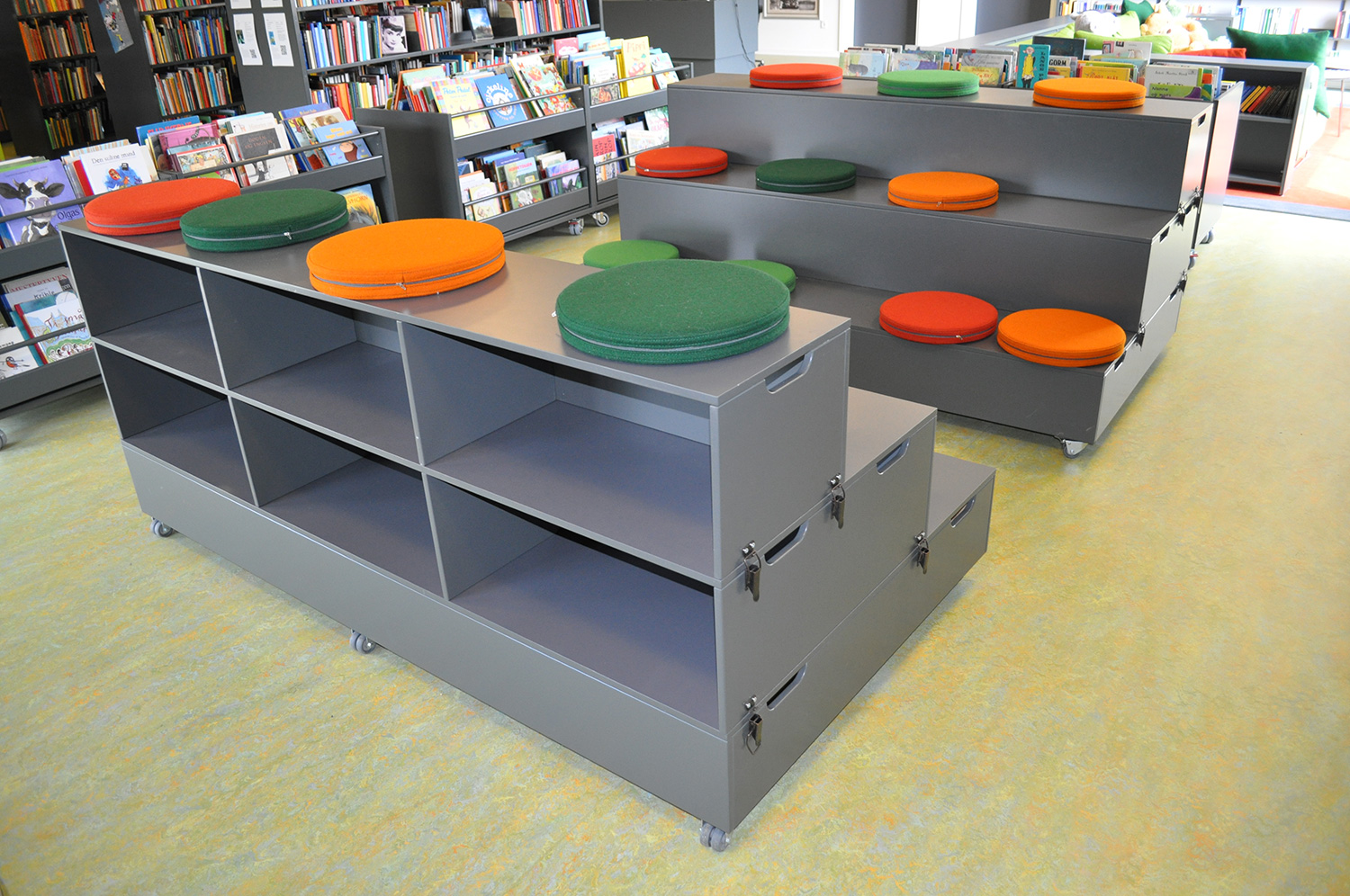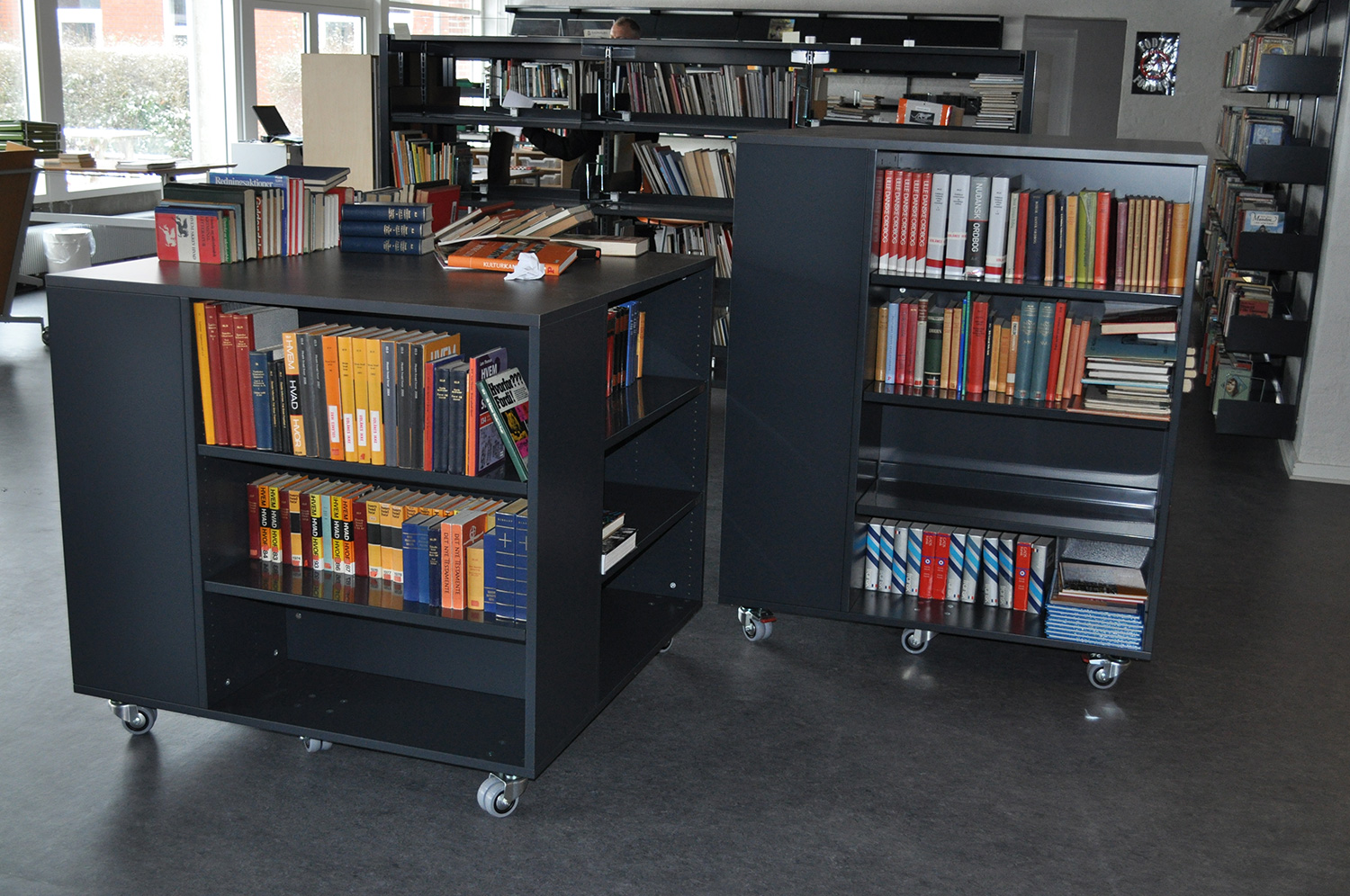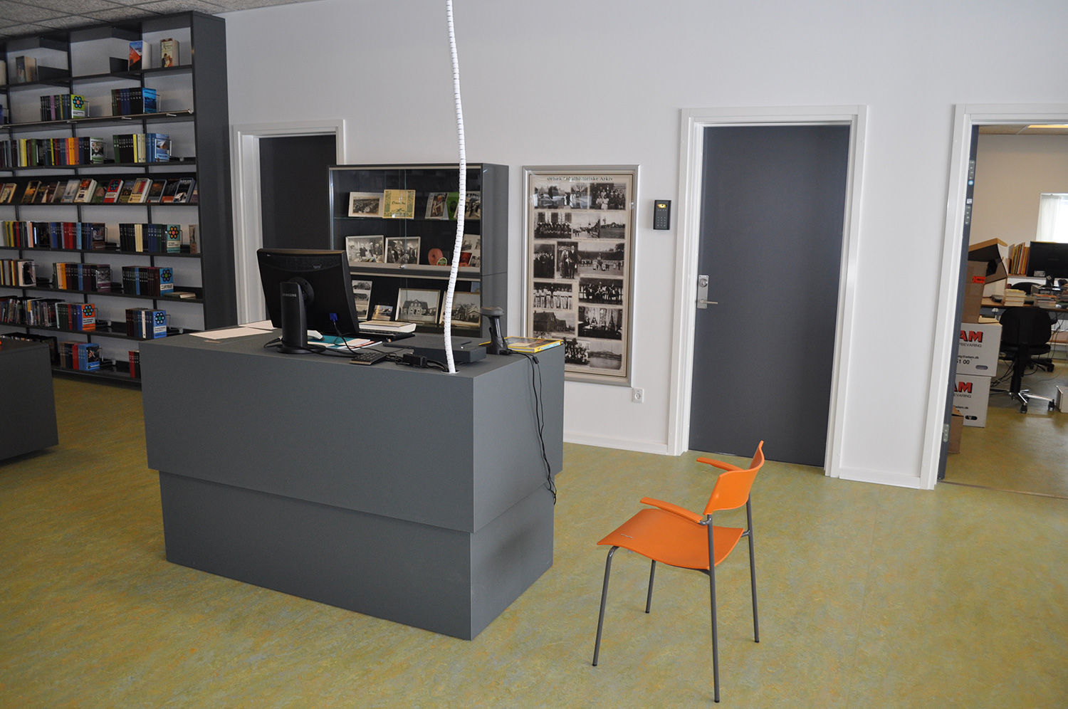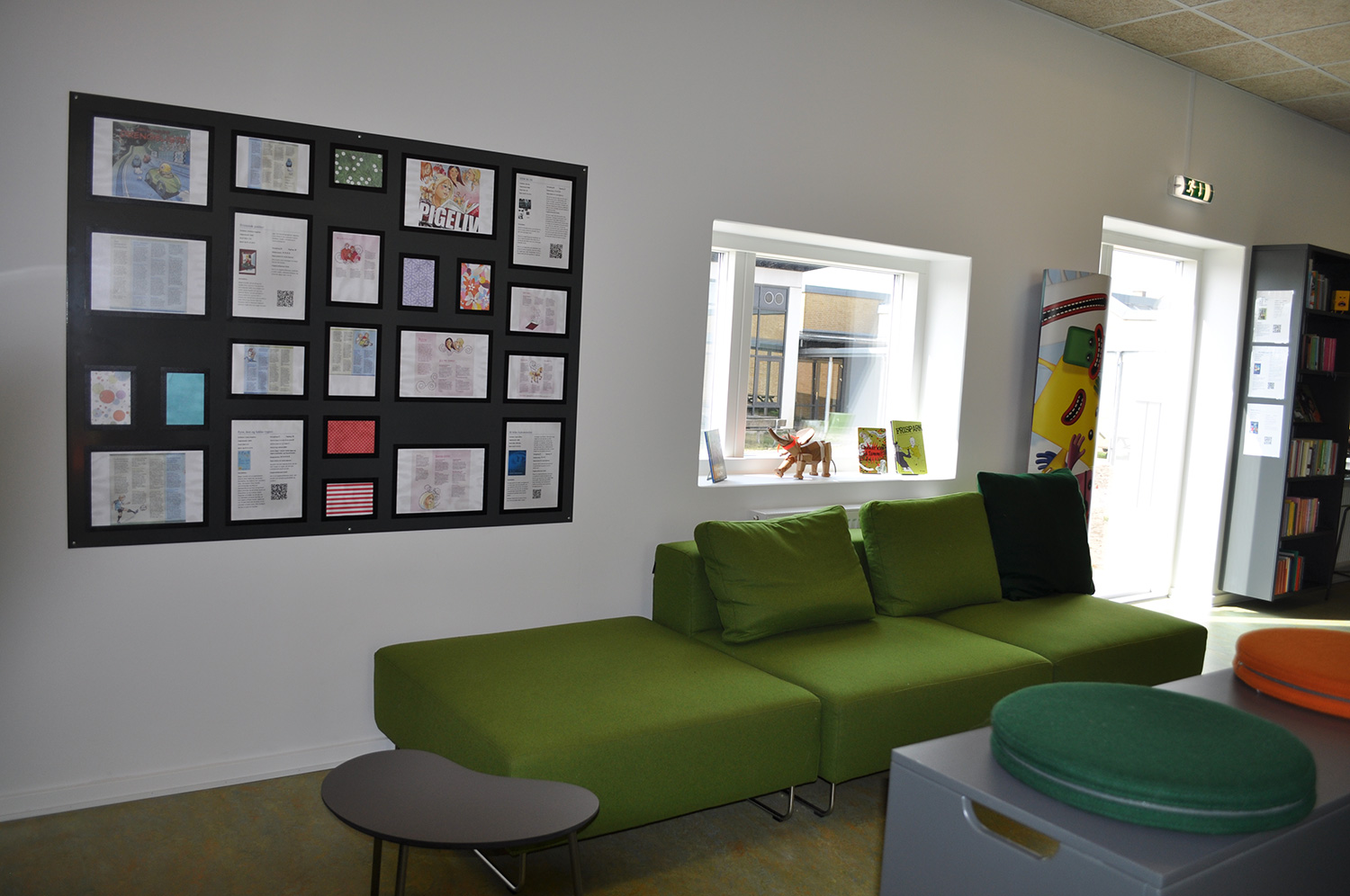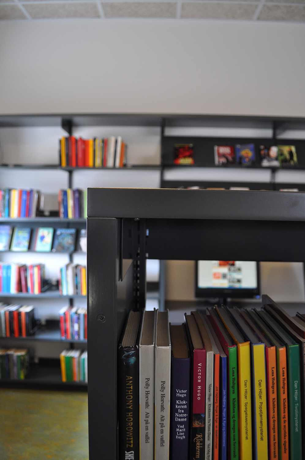 Det har en personlig stil och en hemtrevlig atmosfär med specialtillverkade hyllor, integrerade datorbord och många andra skräddarsydda lösningar. Till exempel färgrika väggar mellan hyllorna som skapar roliga avskärmade ytor för besökarna.