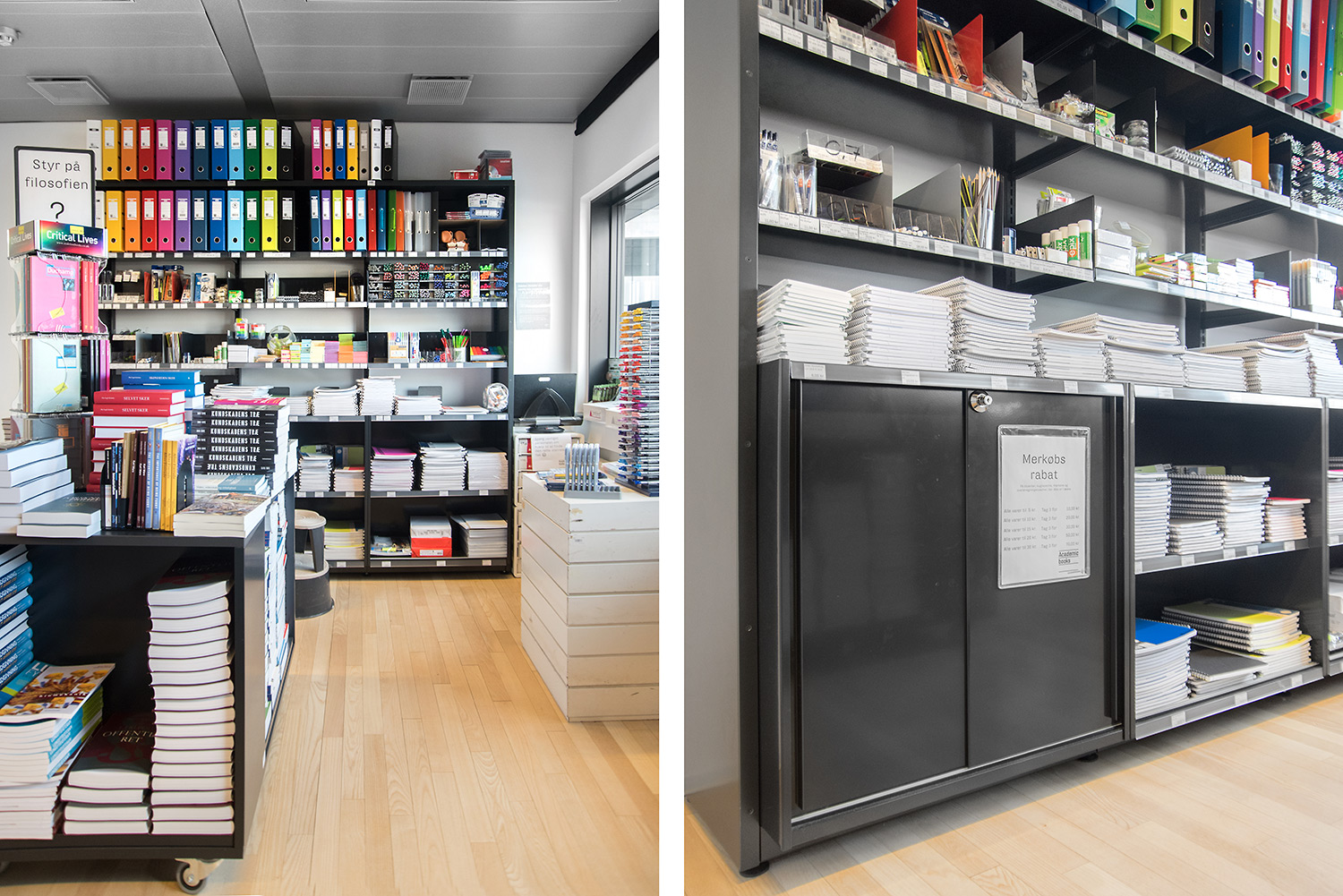 Produkter som används på RUC bokhandeln, Roskilde, Danmark
