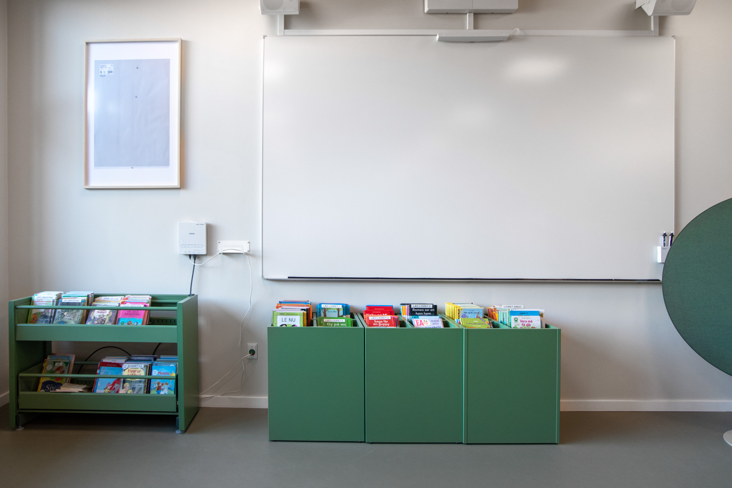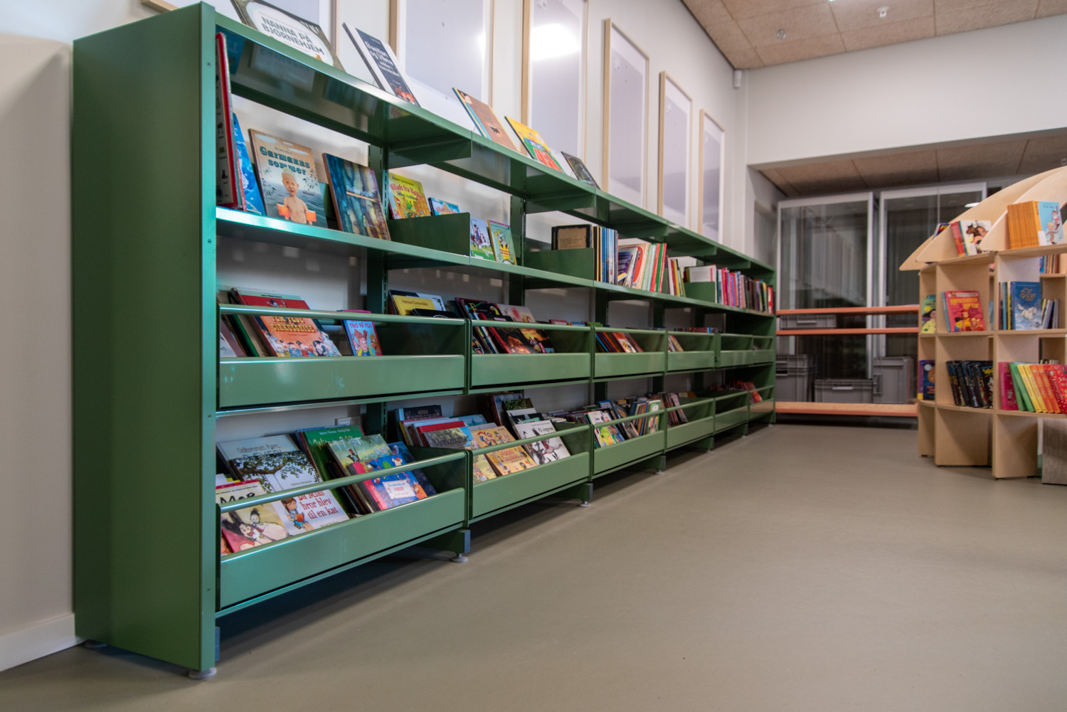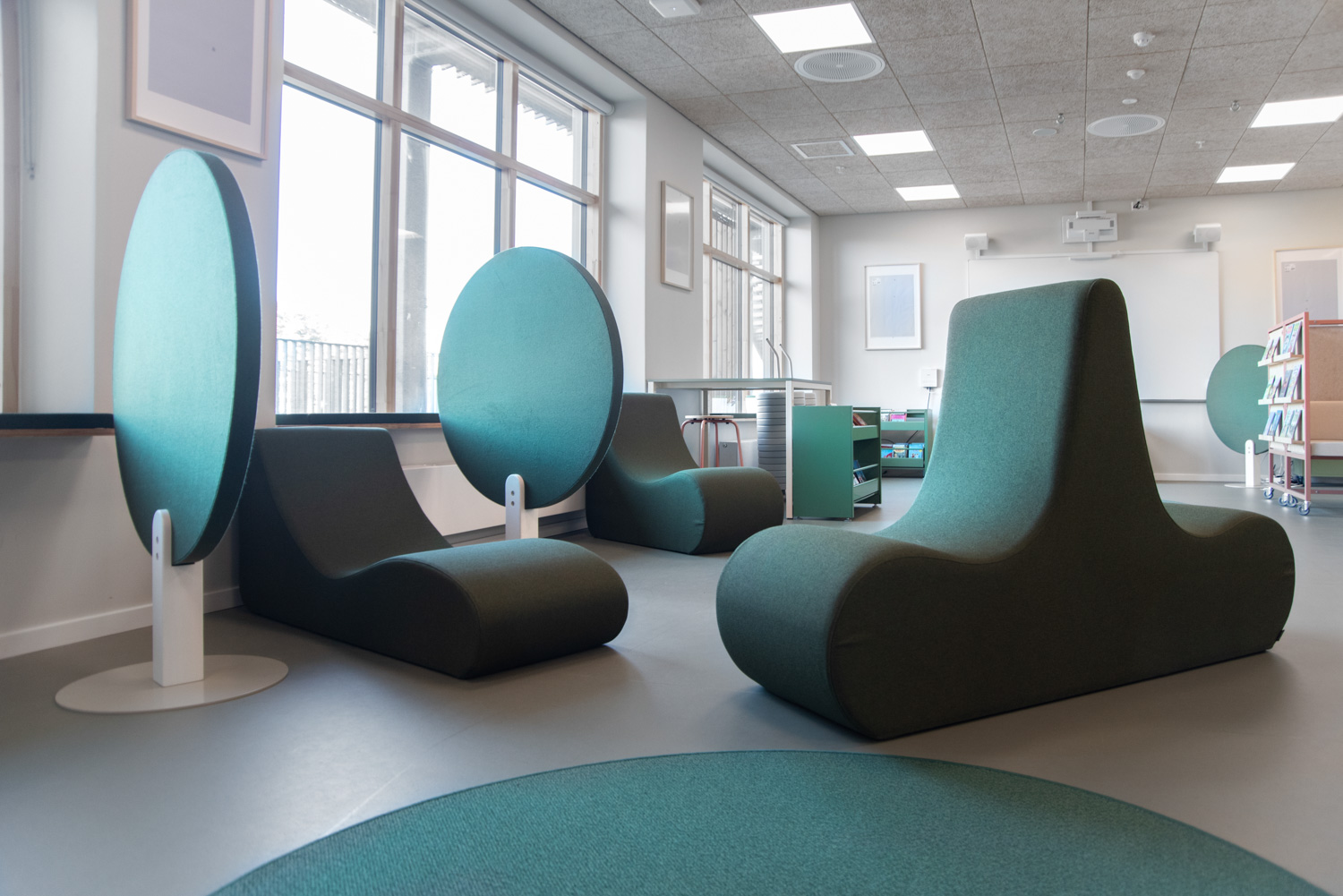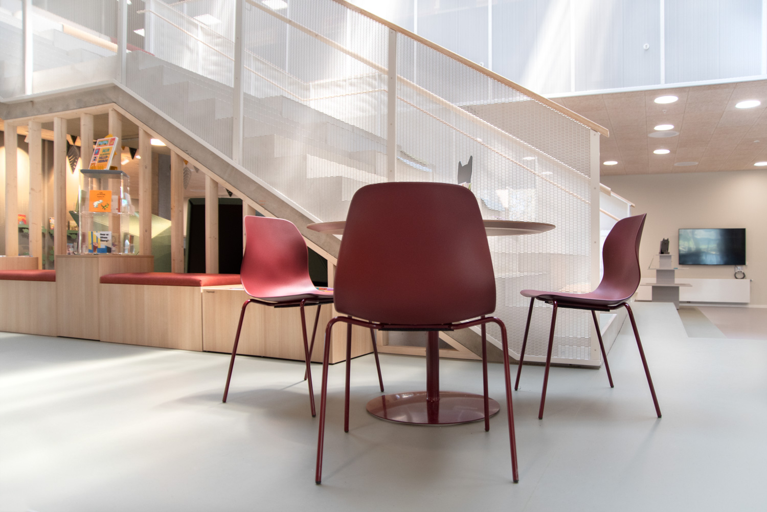 Området utmärker sig med sina många dekorativa element som skapar ett lekande, biofilt uttryck samtidigt som det naturligt faller in i helheten eftersom färgerna valts med respekt för kulturhusets varma färgskala av röda och blågröna färger.