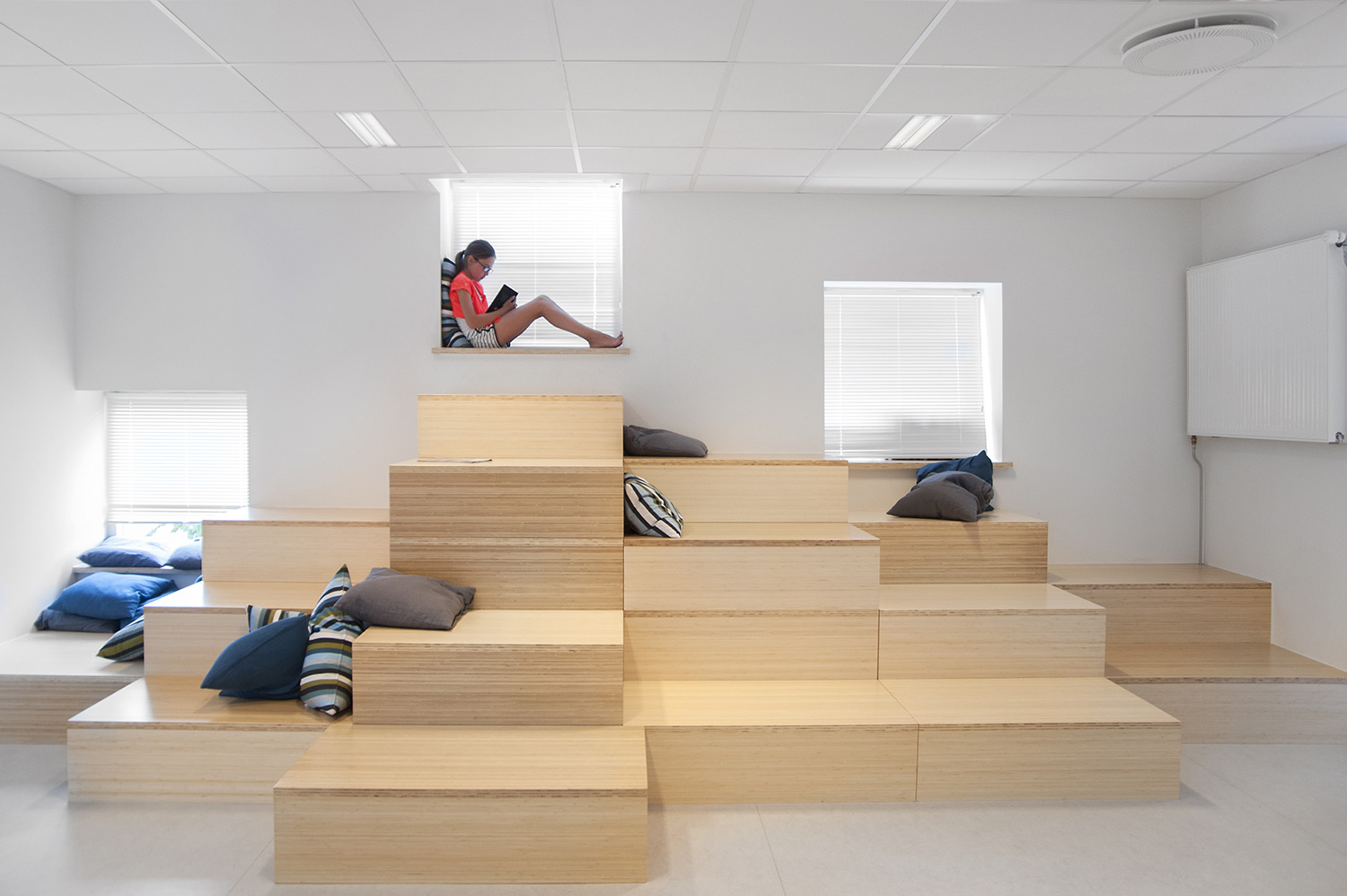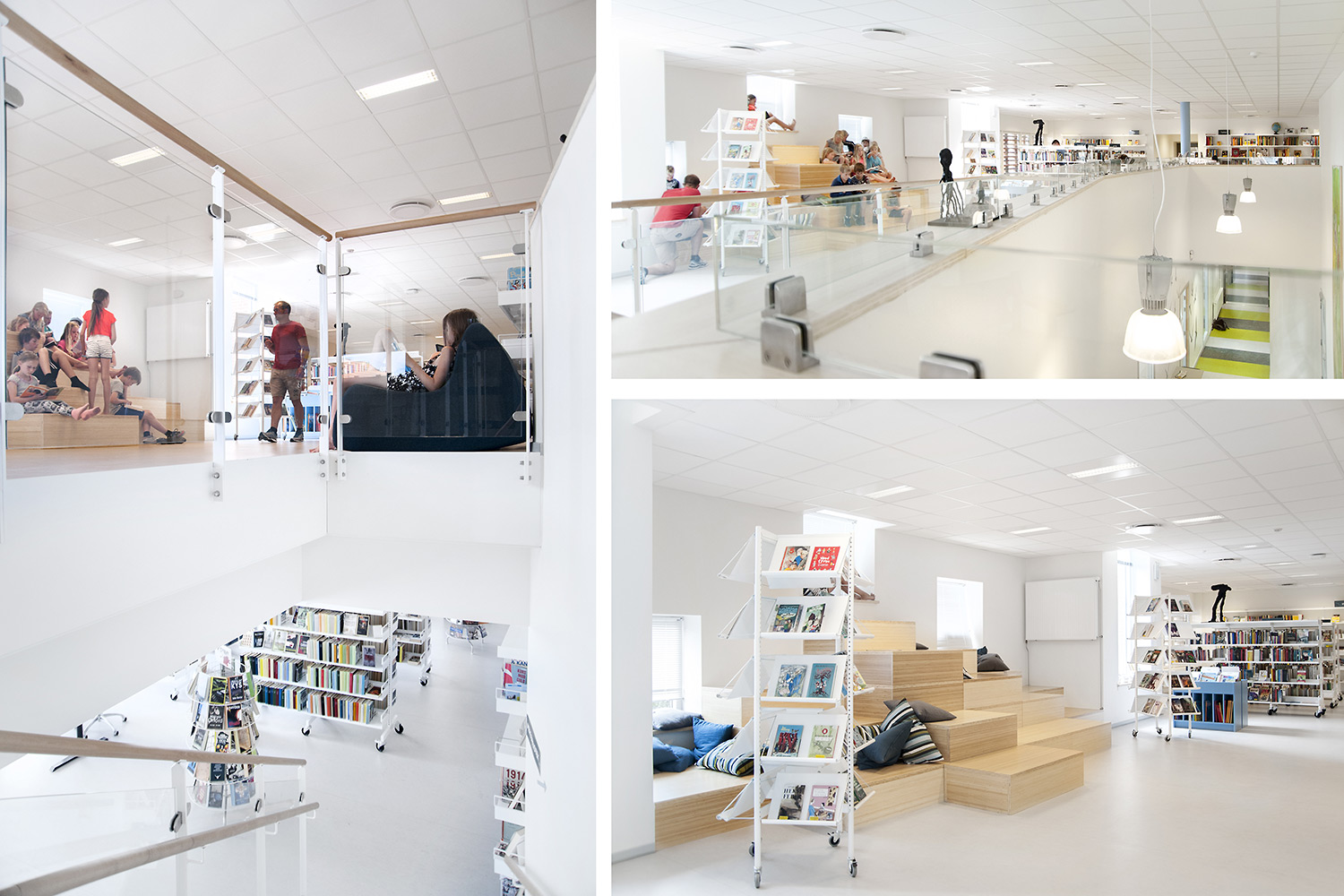 Biblioteksinredningen erbjuder goda möjligheter för både studenter och övrig ortsbefolkning att använda lokalerna till studieplats likväl som det agerar som ortens vardagsrum. Som besökare får man lust att låna både av den traditionella exponeringen samt av olika temautställningar som ständigt förnyas.