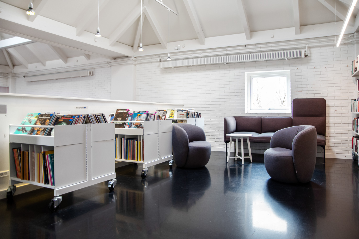 Nu har det tillkommit nya möbler, och det gamla biblioteket har fått nytt liv. Bland annat har väggar och utvalda möbler fått varma, mjuka färger som passar till ekborden och -hyllorna som placerats på olika håll i biblioteket. Man har skapat nya utställningsområden och trivsamma uppehållszoner på både ungdoms- och vuxenavdelningen, vilket gör det behagligare för besökarna att vara på biblioteket samt lättare att få överblick.