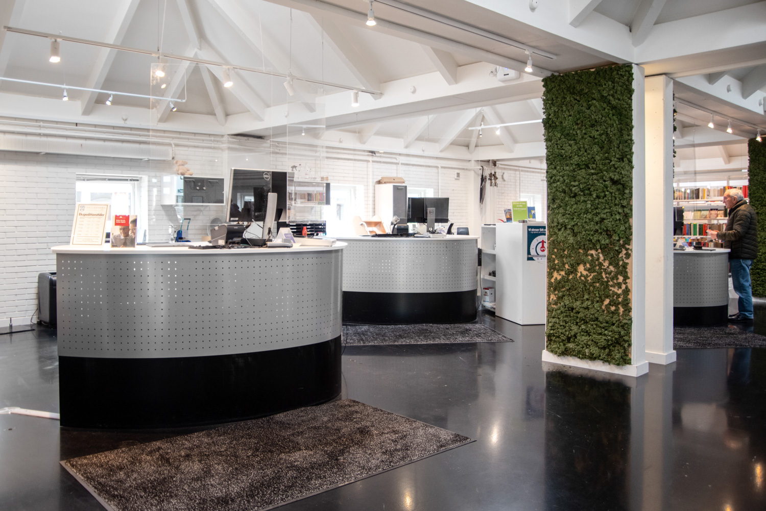 Nya sökstationer och gröna växter fulländar utseendet och bidrar till att skapa en trivsam atmosfär för både besökare och anställda.