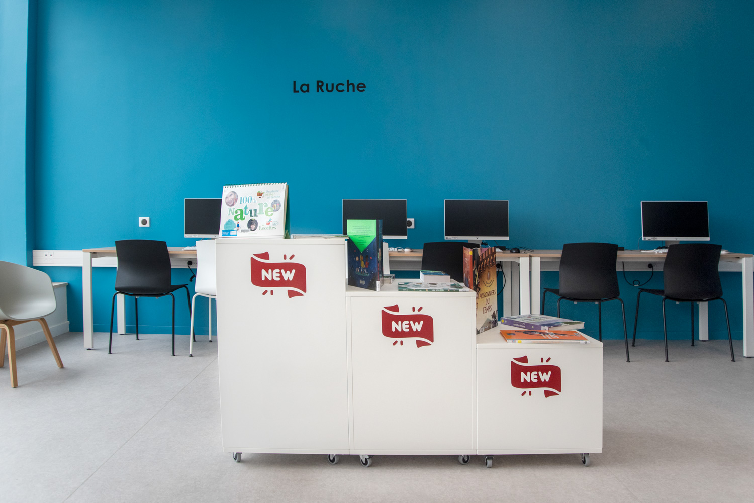 Produkter som används på Angerville bibliotek, Frankrike