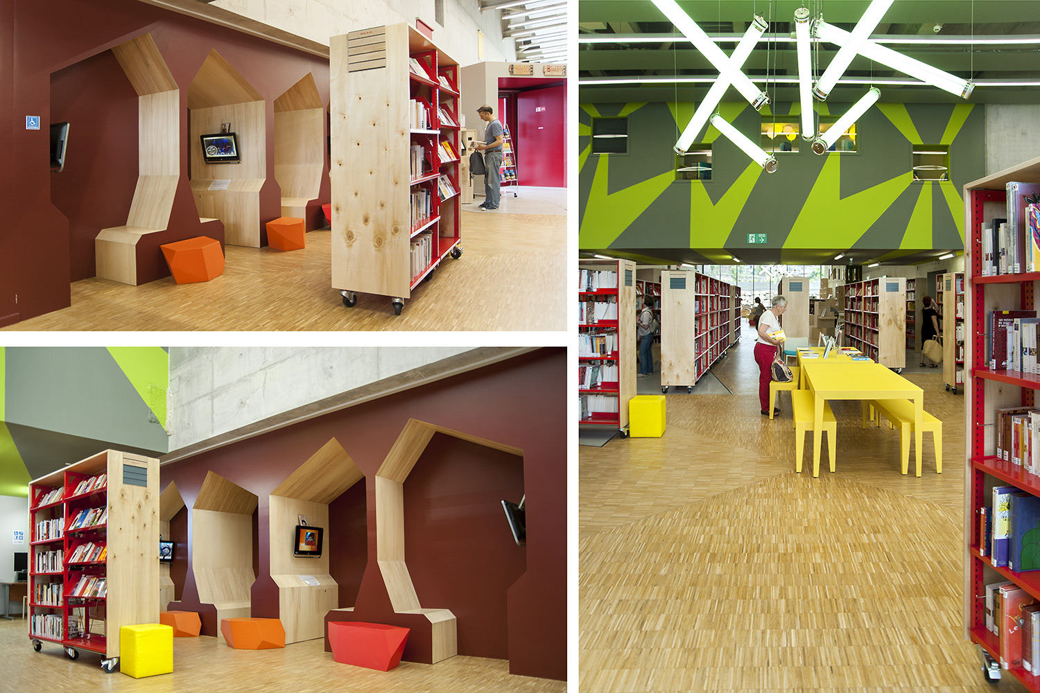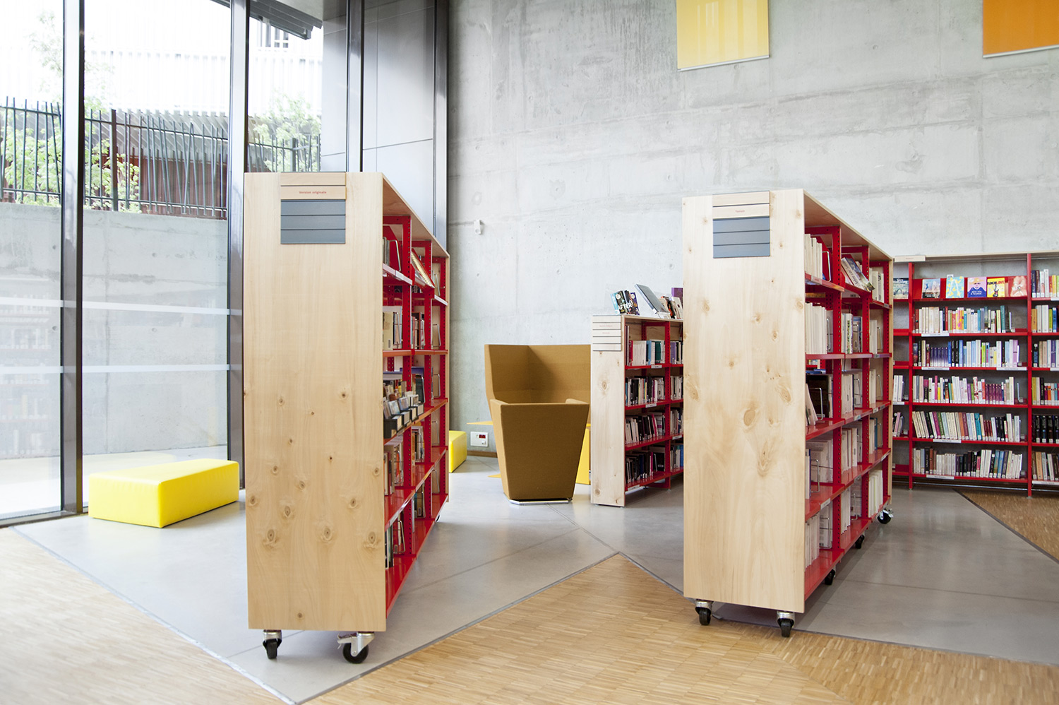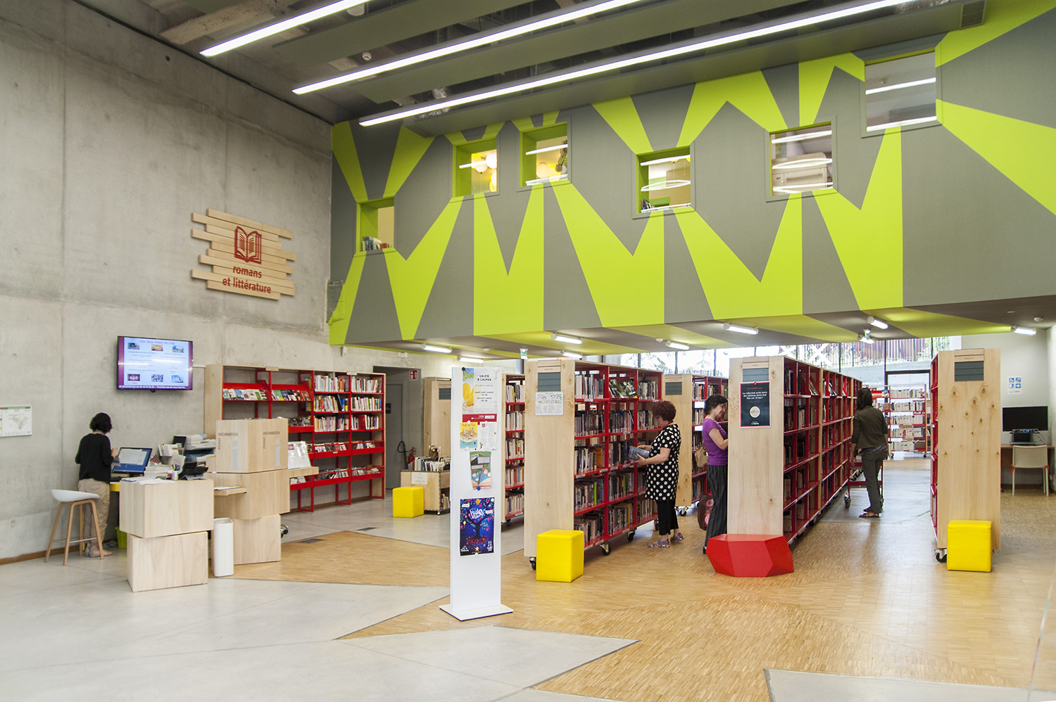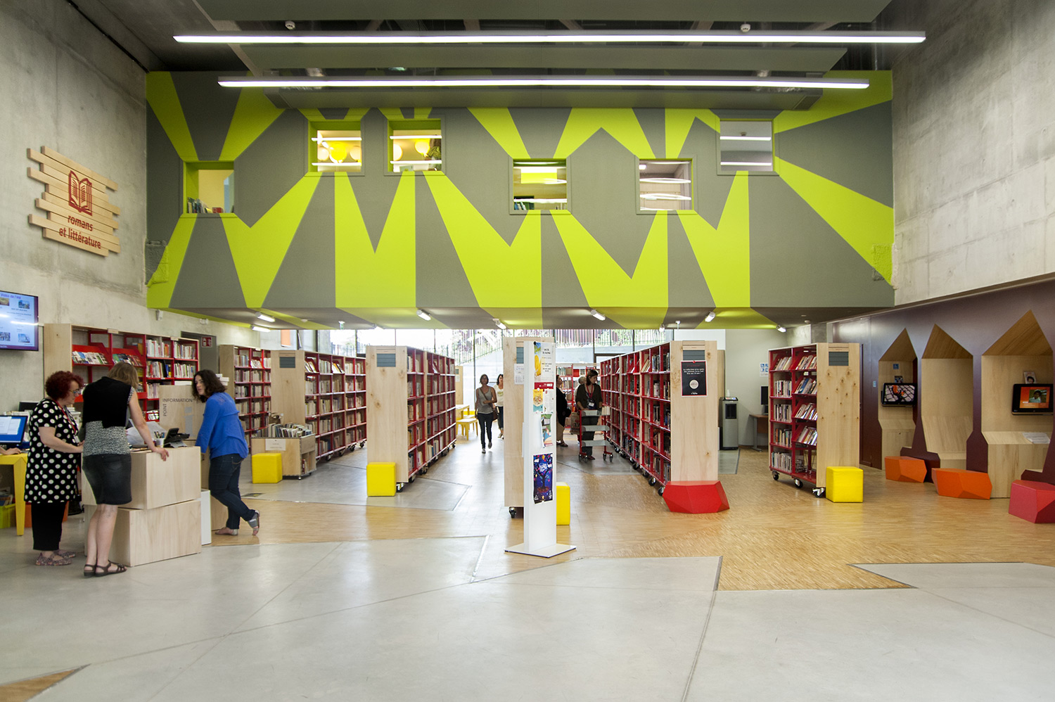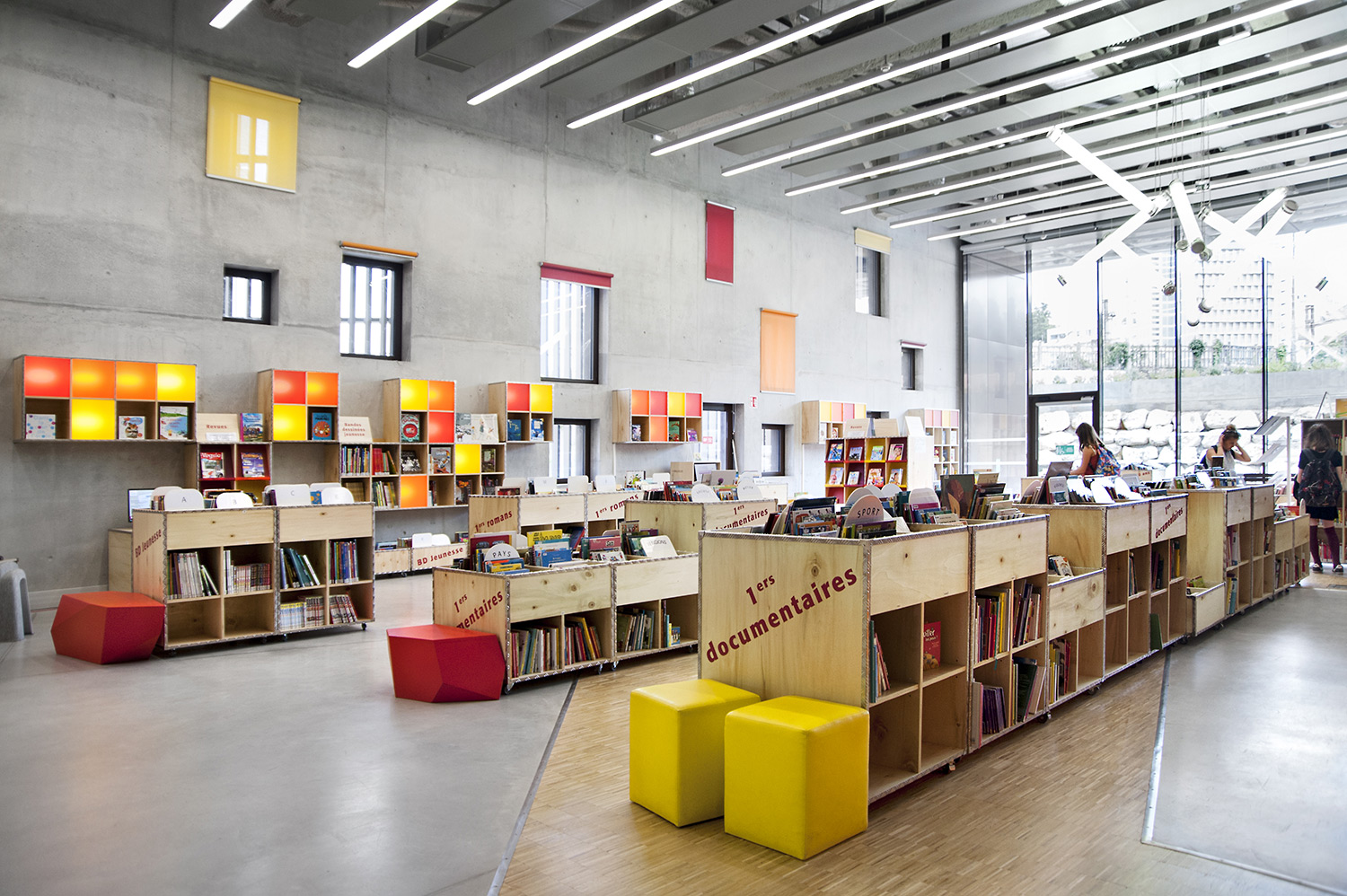 ”Skapande” är ett utrymme dedikerat till seriealbum, film, musik och konst. ”Förståelse” täcker kunskapsområden med plats för det nedtecknade kulturarvet och då även specifikt Chareneregionens historia. Här finns både offentliga och privata utrymmen för läsning och studier. Avdelningen ”Fantasi” sammanför barn- och litteratur samt ger tillgång till både gården och till hörsalen.