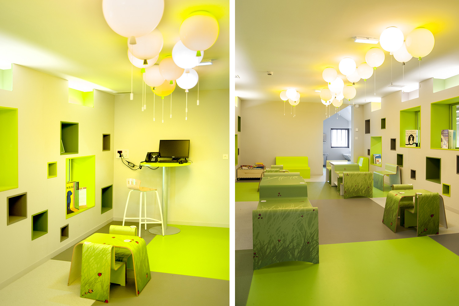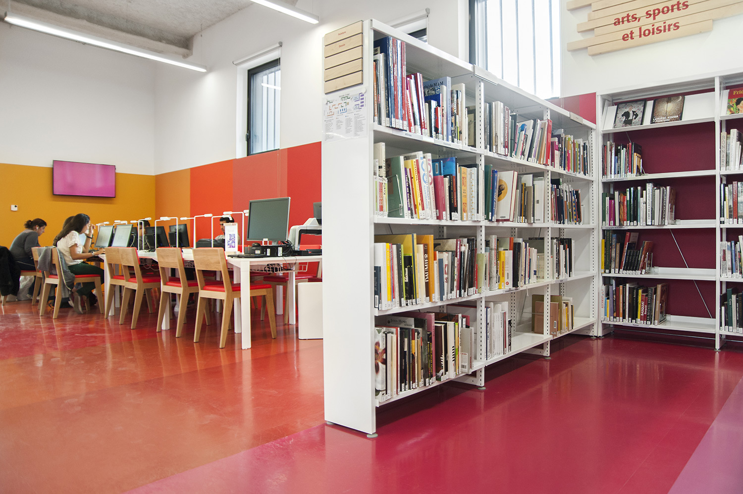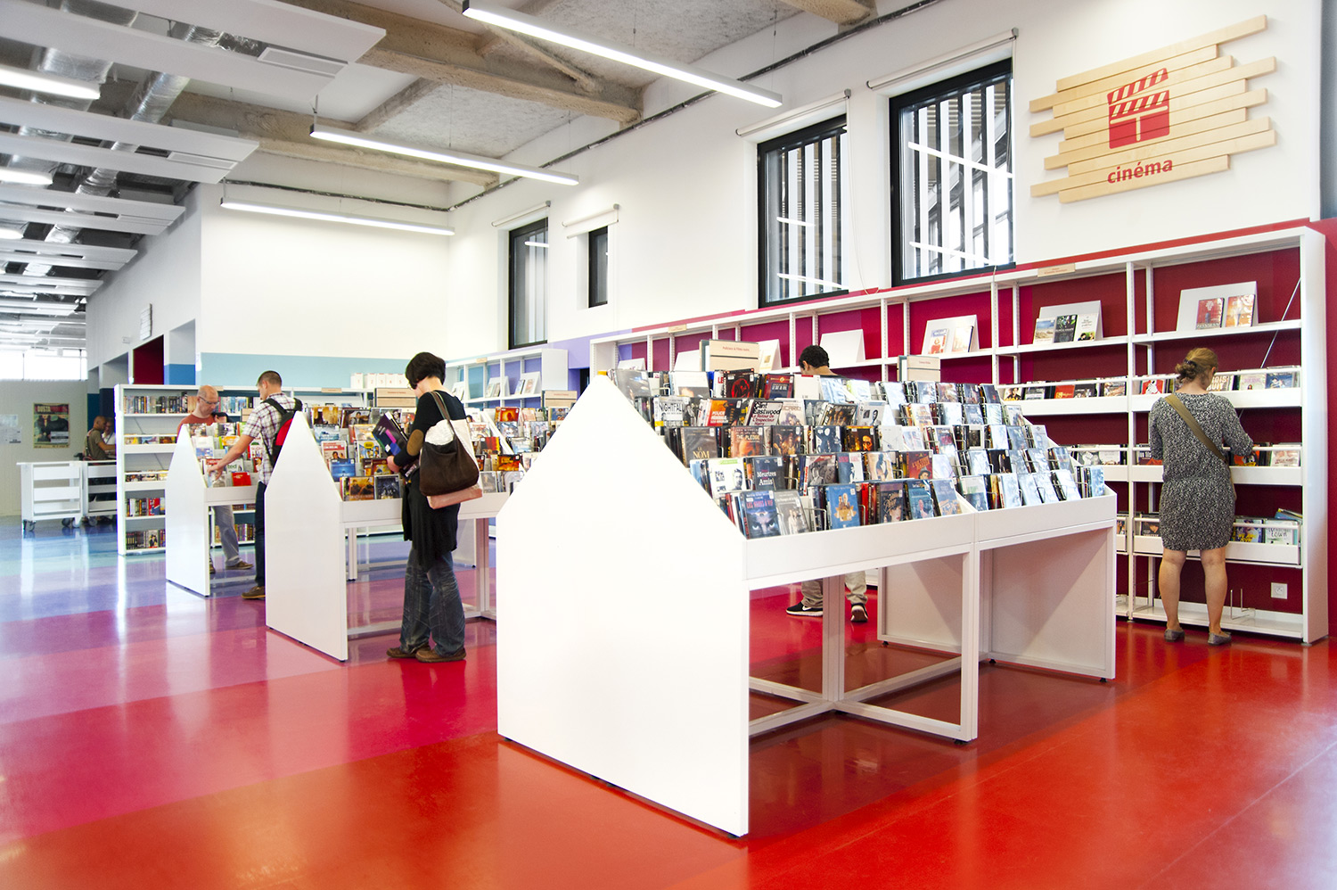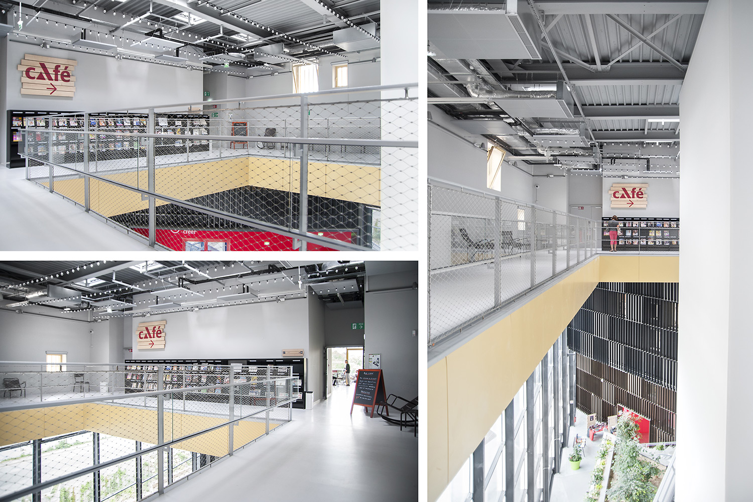”Skapande” är ett utrymme dedikerat till seriealbum, film, musik och konst. ”Förståelse” täcker kunskapsområden med plats för det nedtecknade kulturarvet och då även specifikt Chareneregionens historia. Här finns både offentliga och privata utrymmen för läsning och studier. Avdelningen ”Fantasi” sammanför barn- och litteratur samt ger tillgång till både gården och till hörsalen.