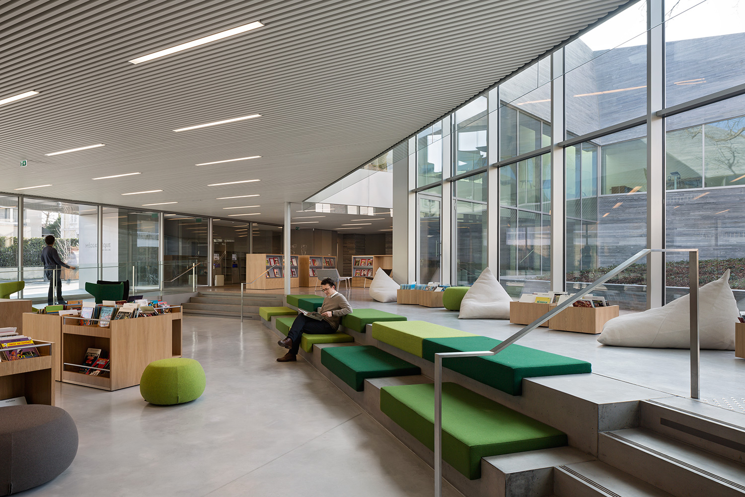 Bourg-la-Reine biblioteket, som tilldelats "Interior Prize 2015" av tidningen Livres Hebdo, är ett utmärkt exempel på vad ett gott samarbete mellan arkitekt och bibliotek kan resultera i. Det visar att vare sig estetik eller funktion behöver ha företräde i inredningslösningarna utan kan mycket väl samspela på lika villkor.