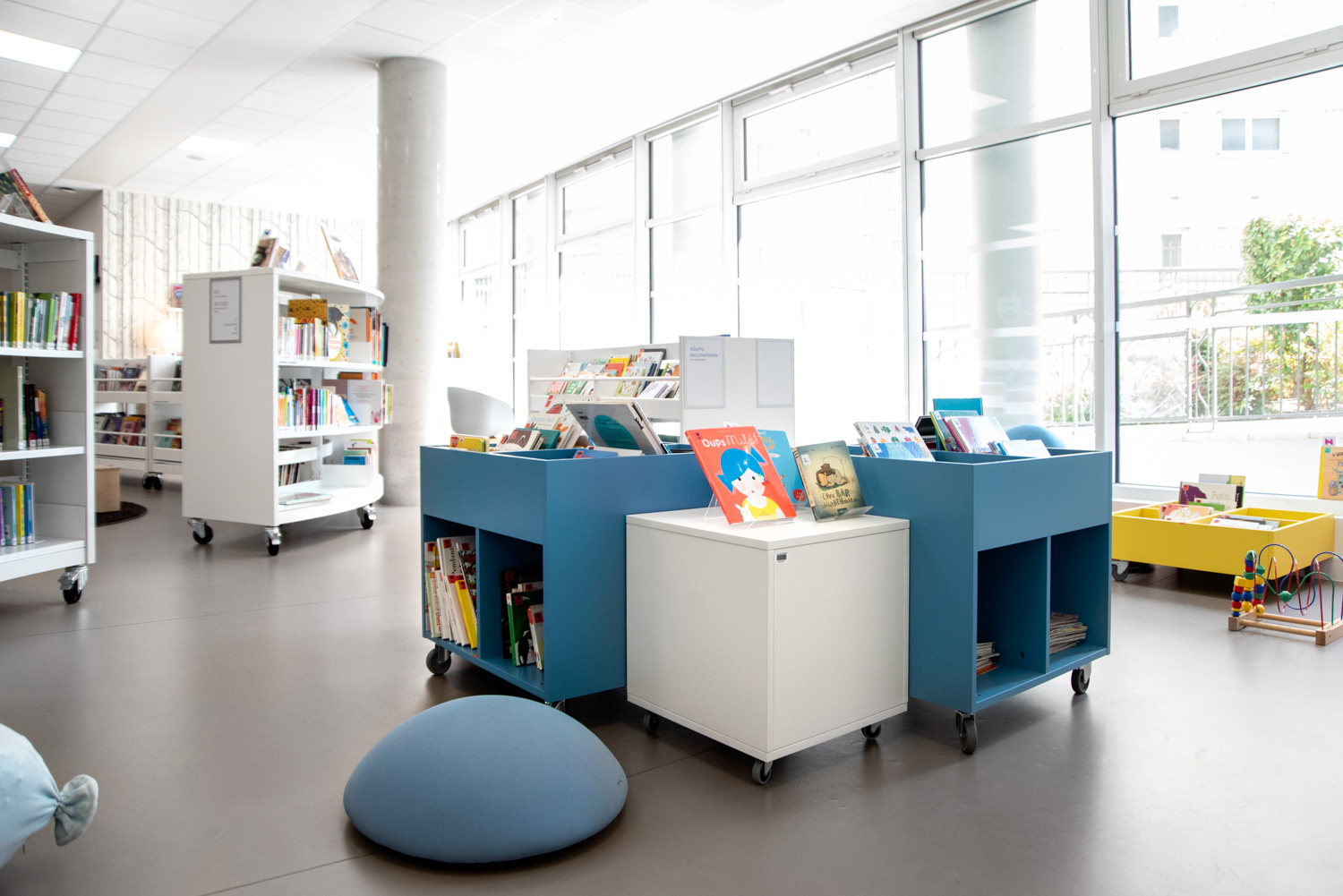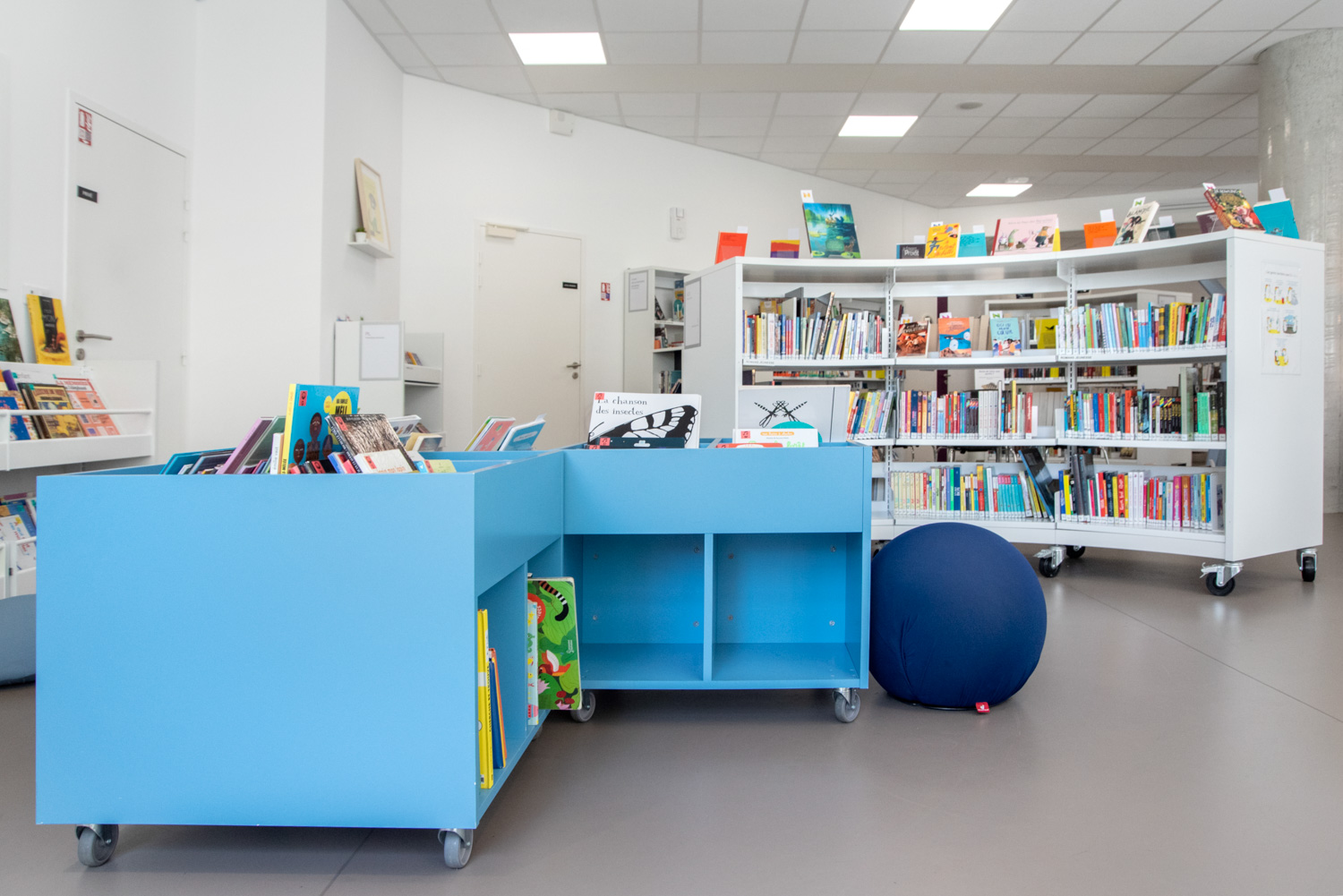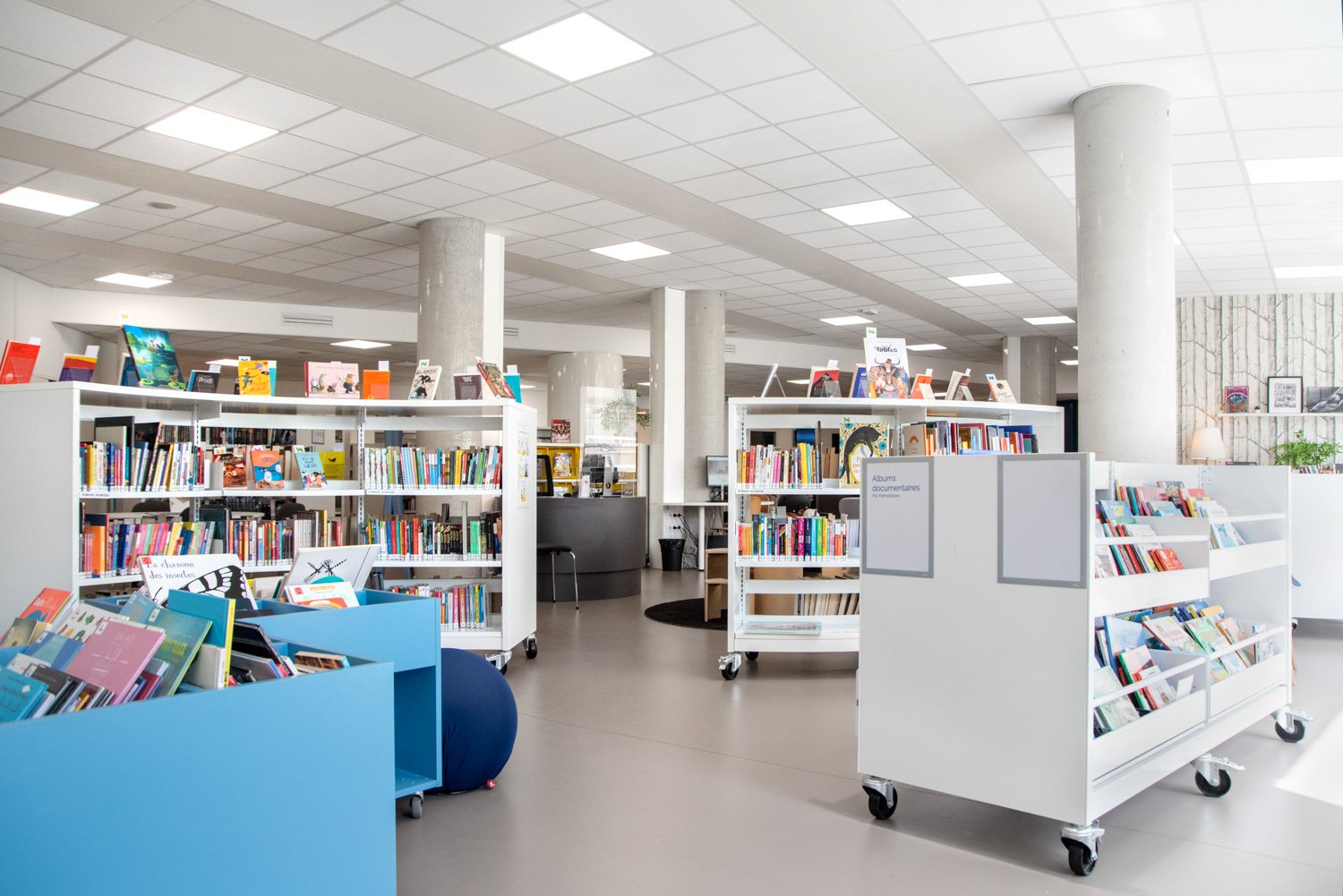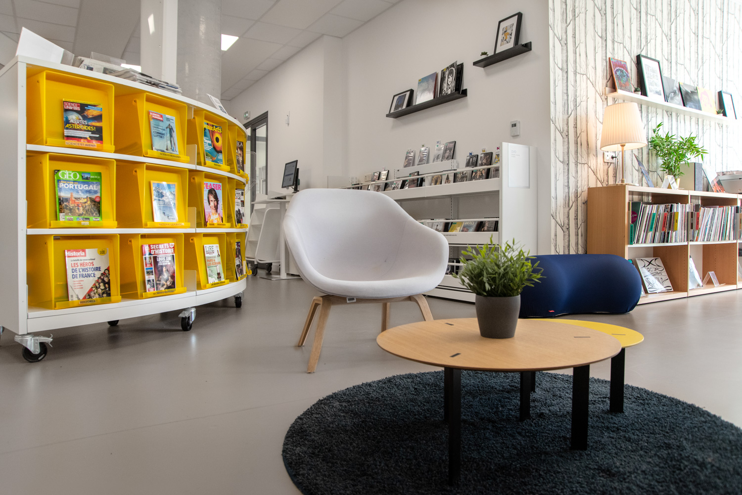 I samarbete med BC Intérieur har biblioteket i La Poterie en glad och flexibel biblioteksdesign som på samma gång är visuellt sammanhängande och tydligt differentierad! Det framgångsrika samarbetet har skapat ett kulturellt rum som bjuder in invånarna att komma in och tillbringa tid på biblioteket genom att lyssna på en skiva i stora fåtöljer, läsa en bra historia eller rolig tecknad serie på bekväma sittpuffar eller arbeta tillsammans i små grupper.