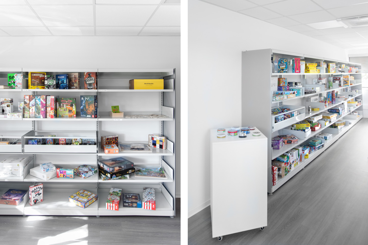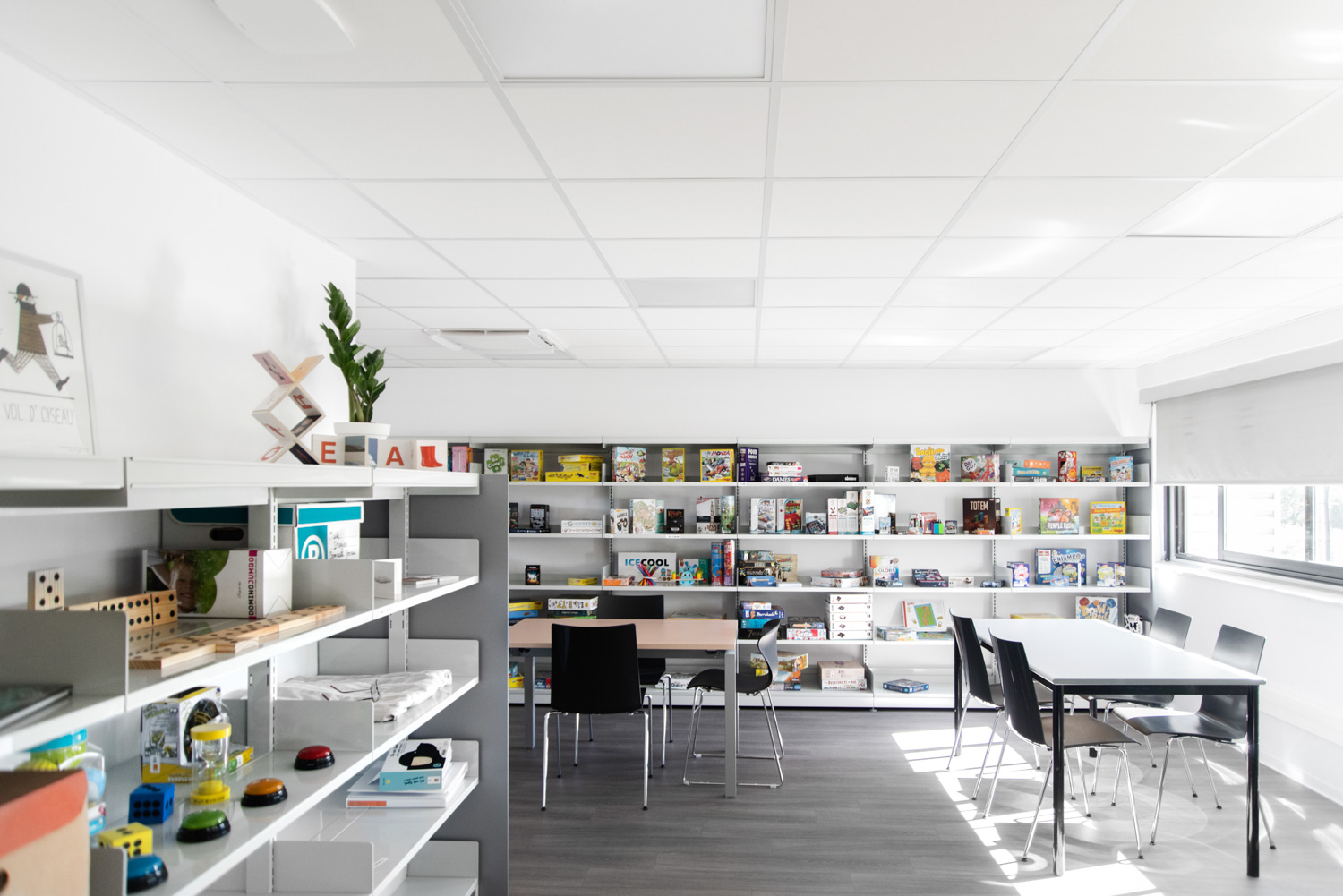 Ett brädspelsområde har byggts upp utifrån en gammal oanvänd lägenhet som hörde till huvudbyggnaden. Detta bidrar till att öka utbudet av resurser, material och utbildningar som biblioteket erbjuder.