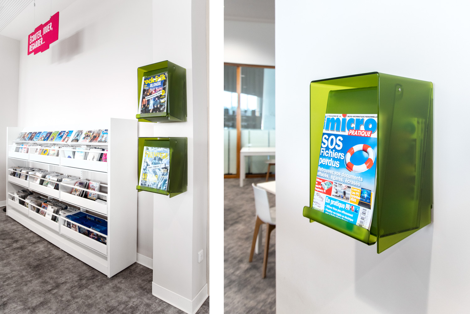 Produkter som används på Vendin-le-Vieil bibliotek, Frankrike