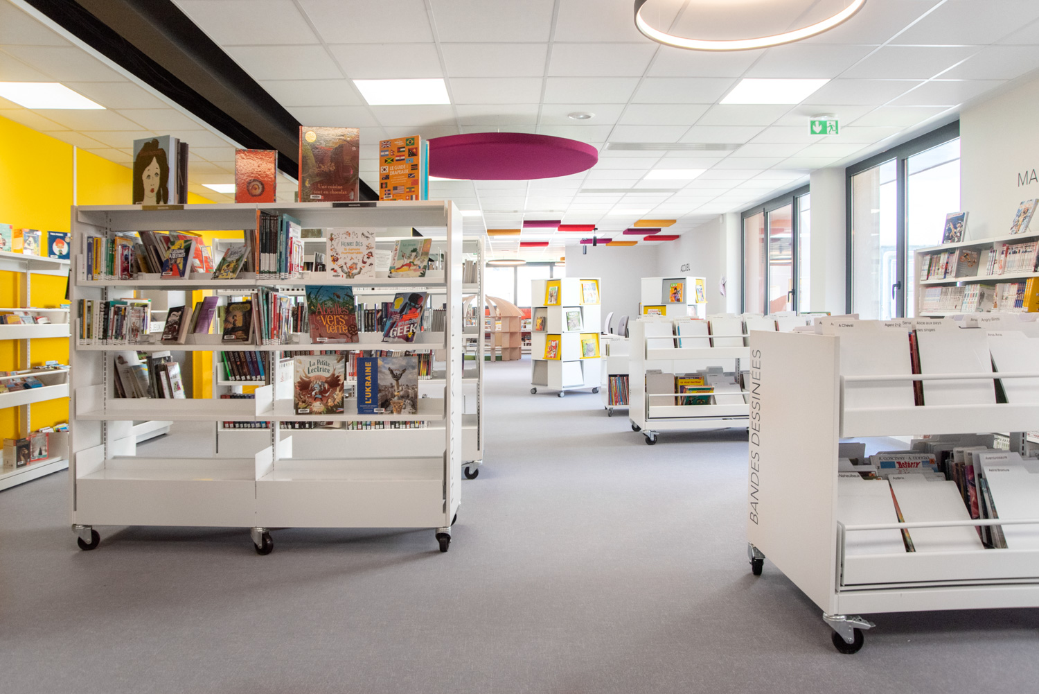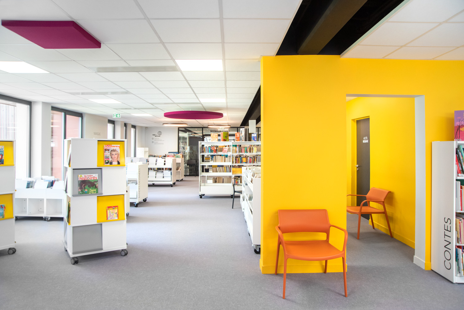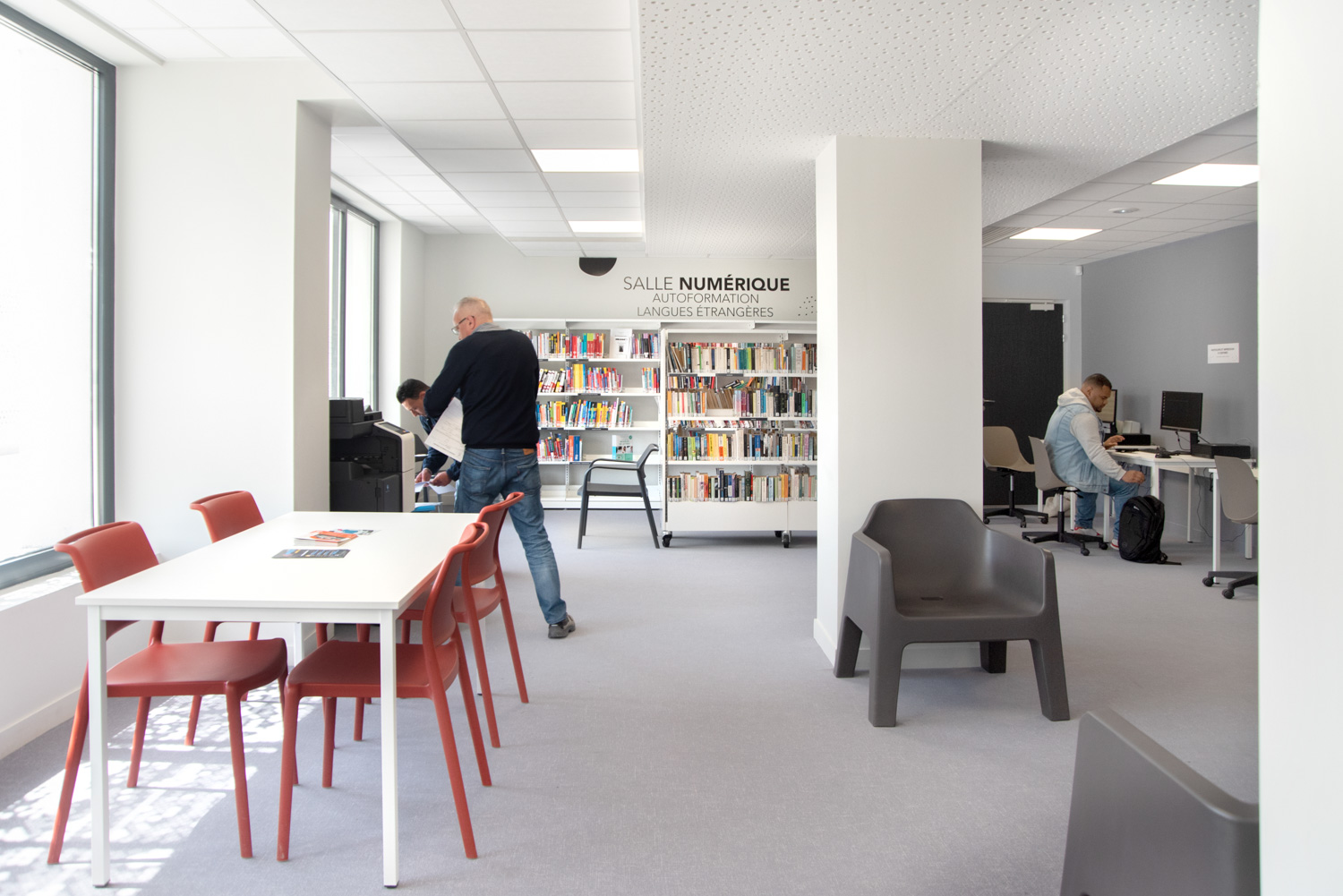 Det 1700 m² stora mediateket Paul Eluard i Vierzon har totalrenoverats och byggts ut.