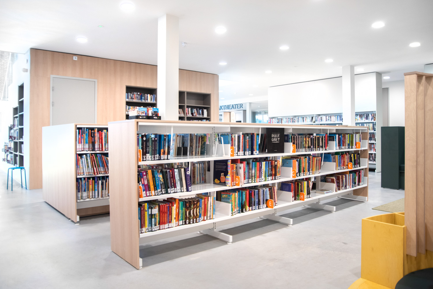 Inredningen – som designats och utförts av Puur Sang och Schulz Benelux – bidrar till att underlätta de många aktiviteter som äger rum på biblioteket. Det är bland annat kurser, datorcafé, föredrag och olika aktiviteter för barn.