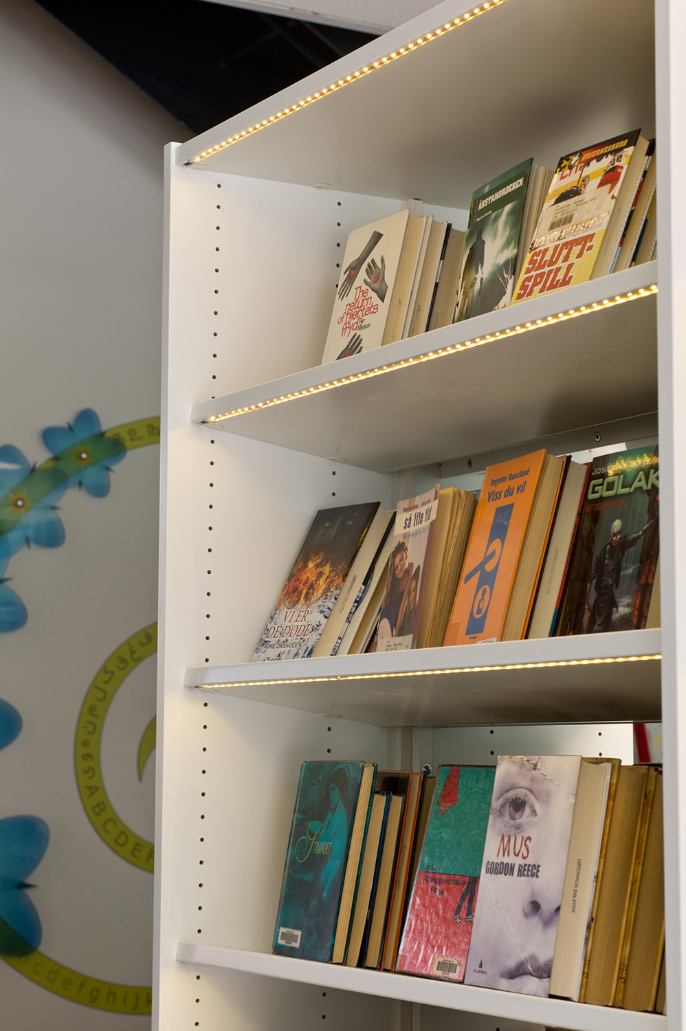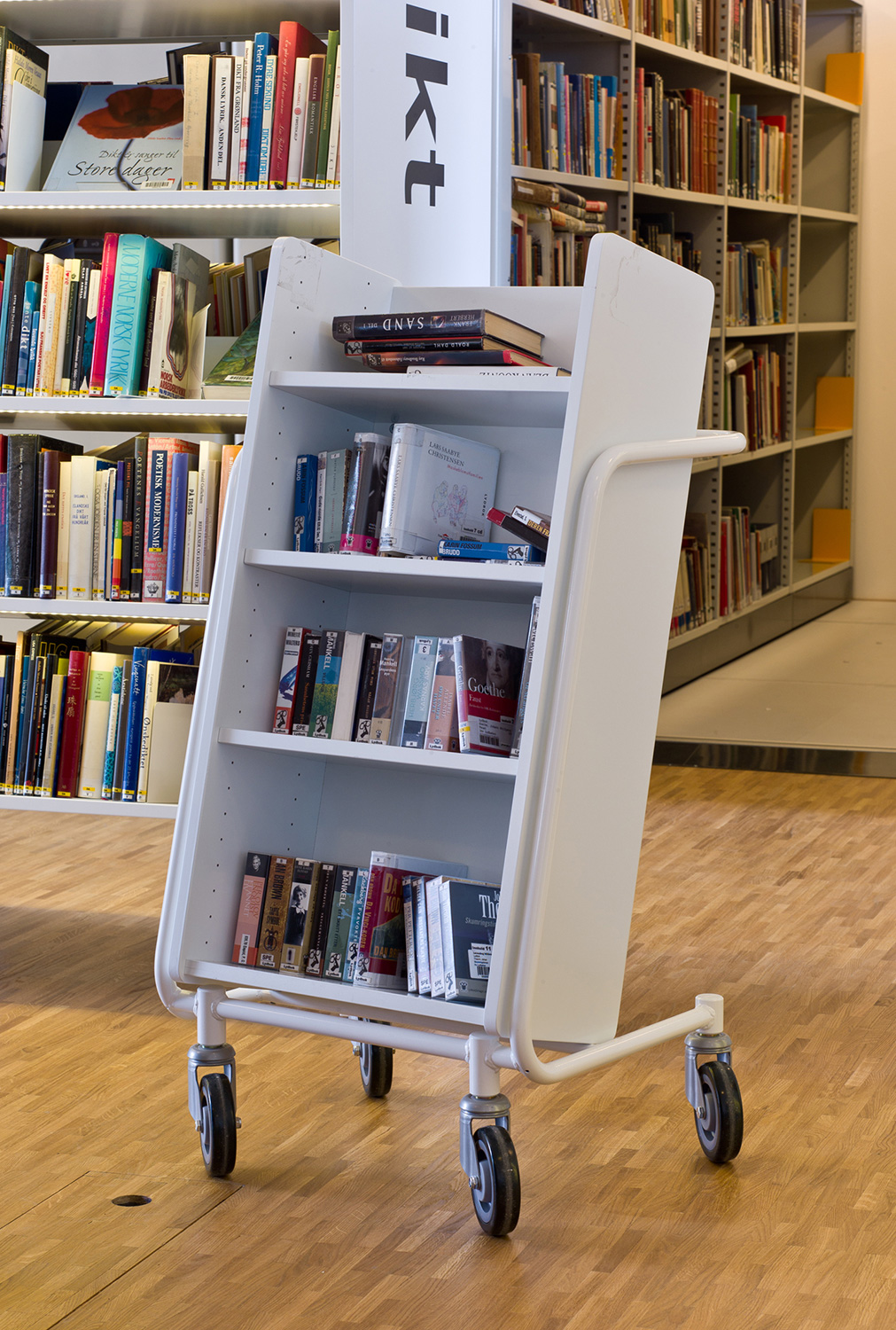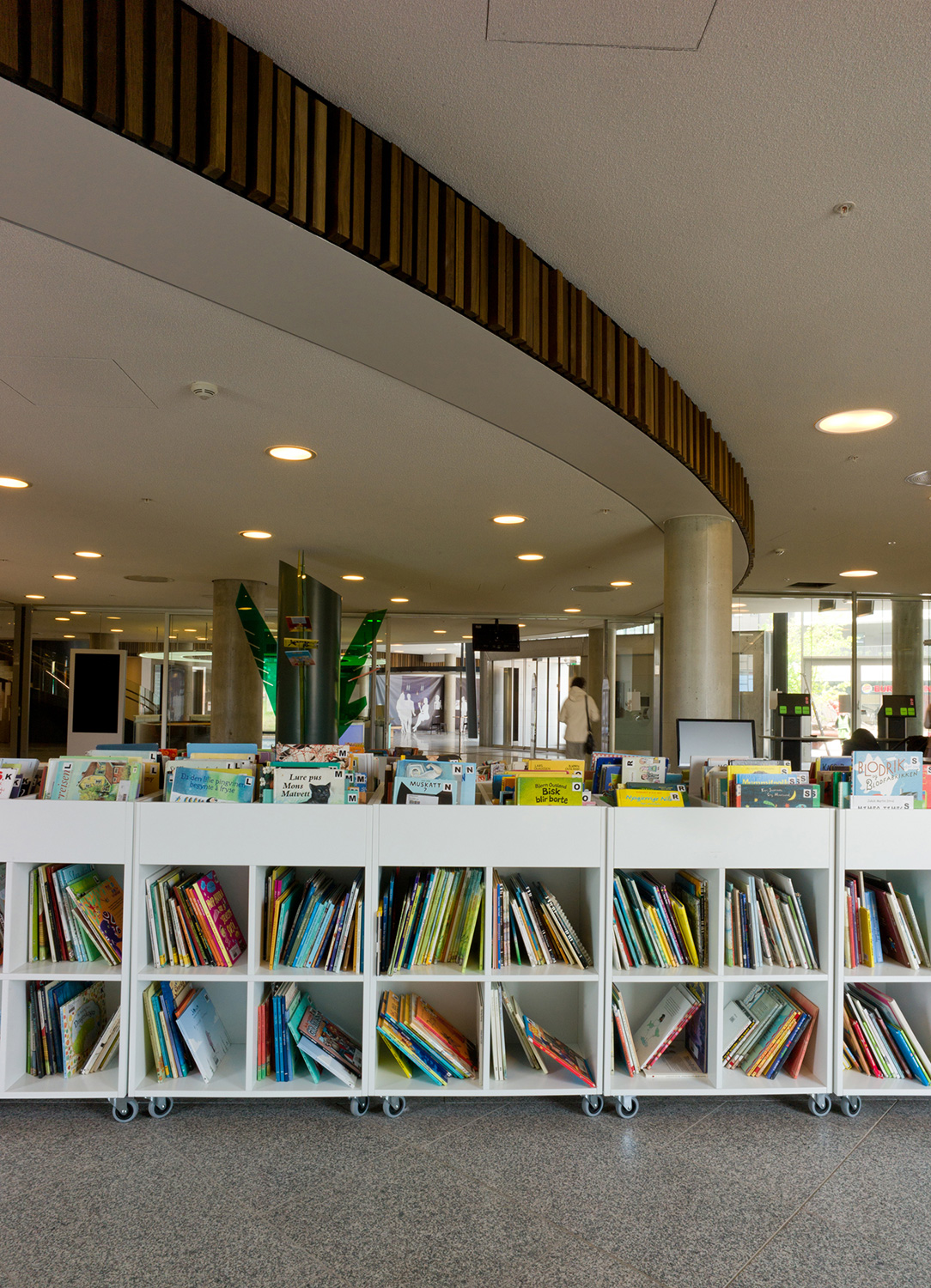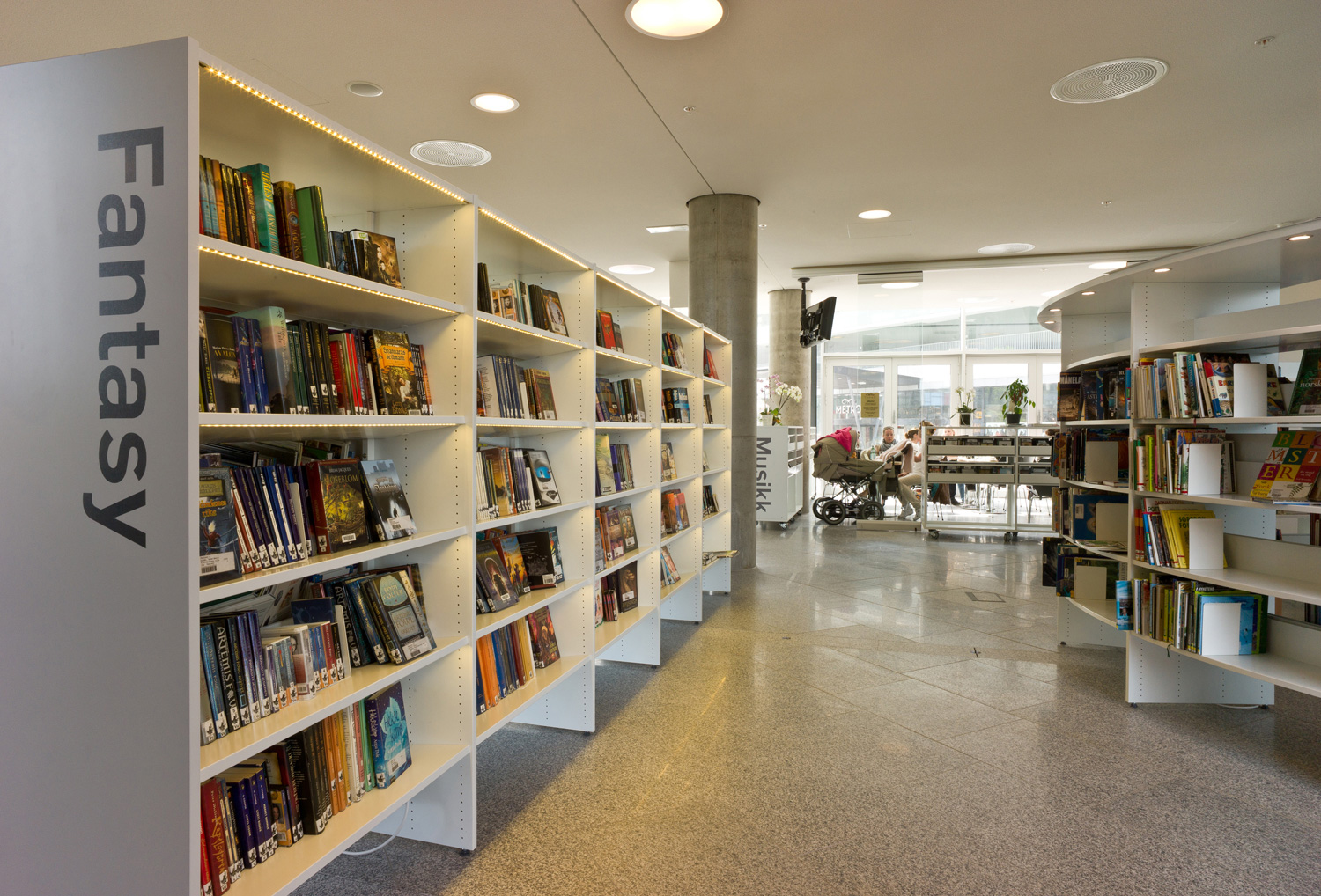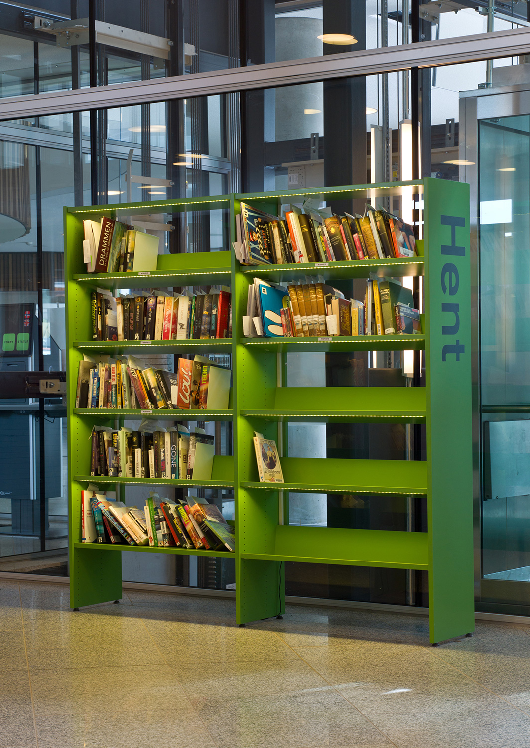 Arkitekterna utmanades nämligen av bibliotekschefen Berit Bjørkild att designa hennes drömhylla. Missionen var att designa ett hyllsystem med hyllplan som kunde ”sälja” böckerna, inspirerad av kommerciella bokhandlare. Specialdesignade hyllor, belysning och unika inredningslösningar skulle vara med att frontexponera böcker på det mest optimala sättet. De specialdesignade hyllorna lutar anigen bakåt, så man kan frontexponera böckerna utan att de ramlar av.