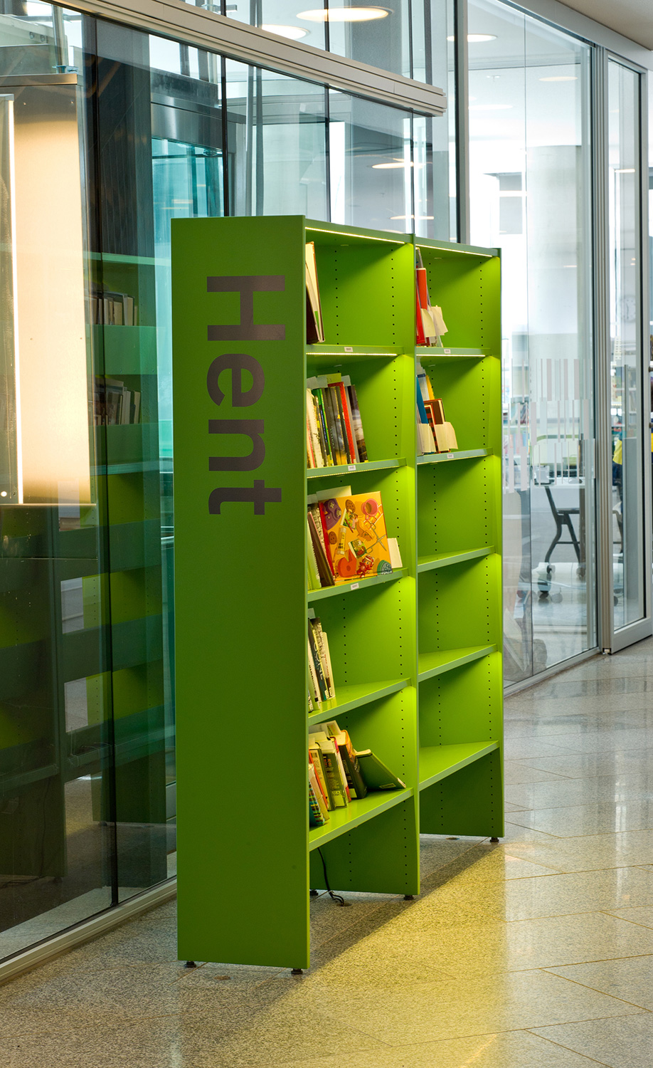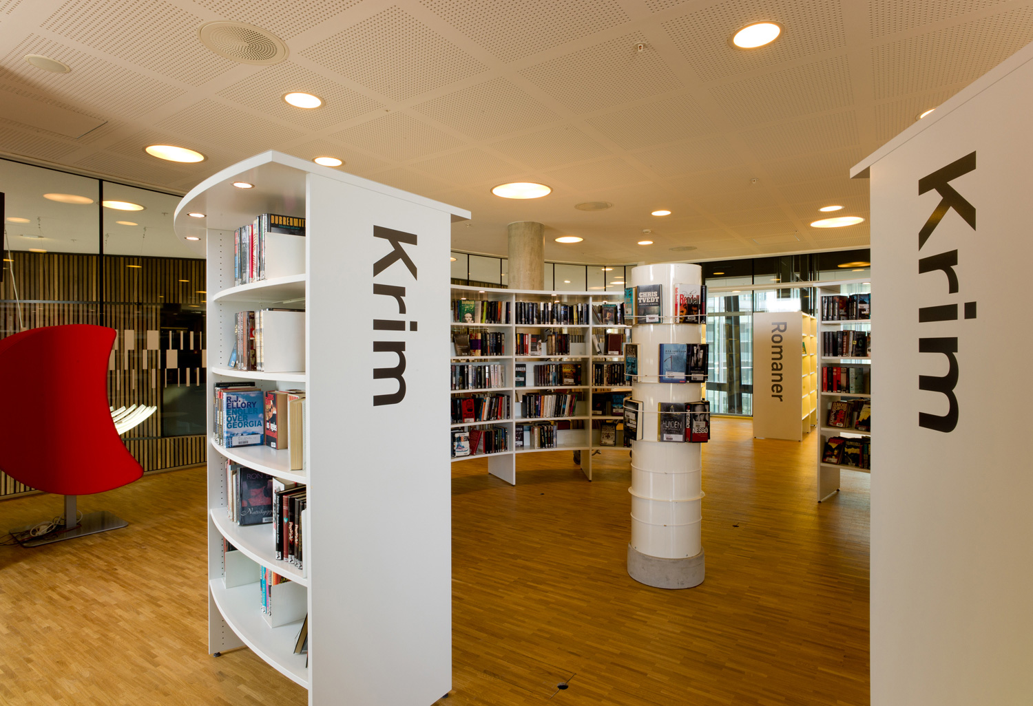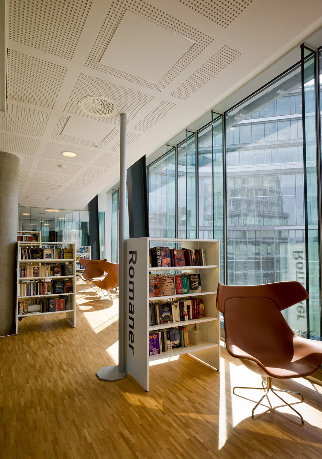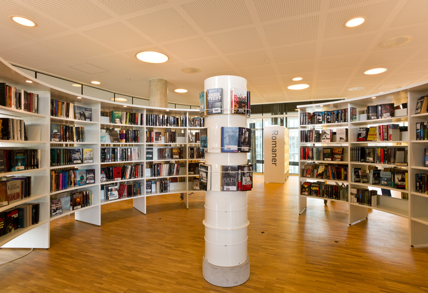 Arkitekterna utmanades nämligen av bibliotekschefen Berit Bjørkild att designa hennes drömhylla. Missionen var att designa ett hyllsystem med hyllplan som kunde ”sälja” böckerna, inspirerad av kommerciella bokhandlare. Specialdesignade hyllor, belysning och unika inredningslösningar skulle vara med att frontexponera böcker på det mest optimala sättet. De specialdesignade hyllorna lutar anigen bakåt, så man kan frontexponera böckerna utan att de ramlar av.